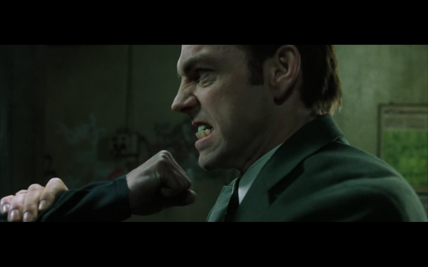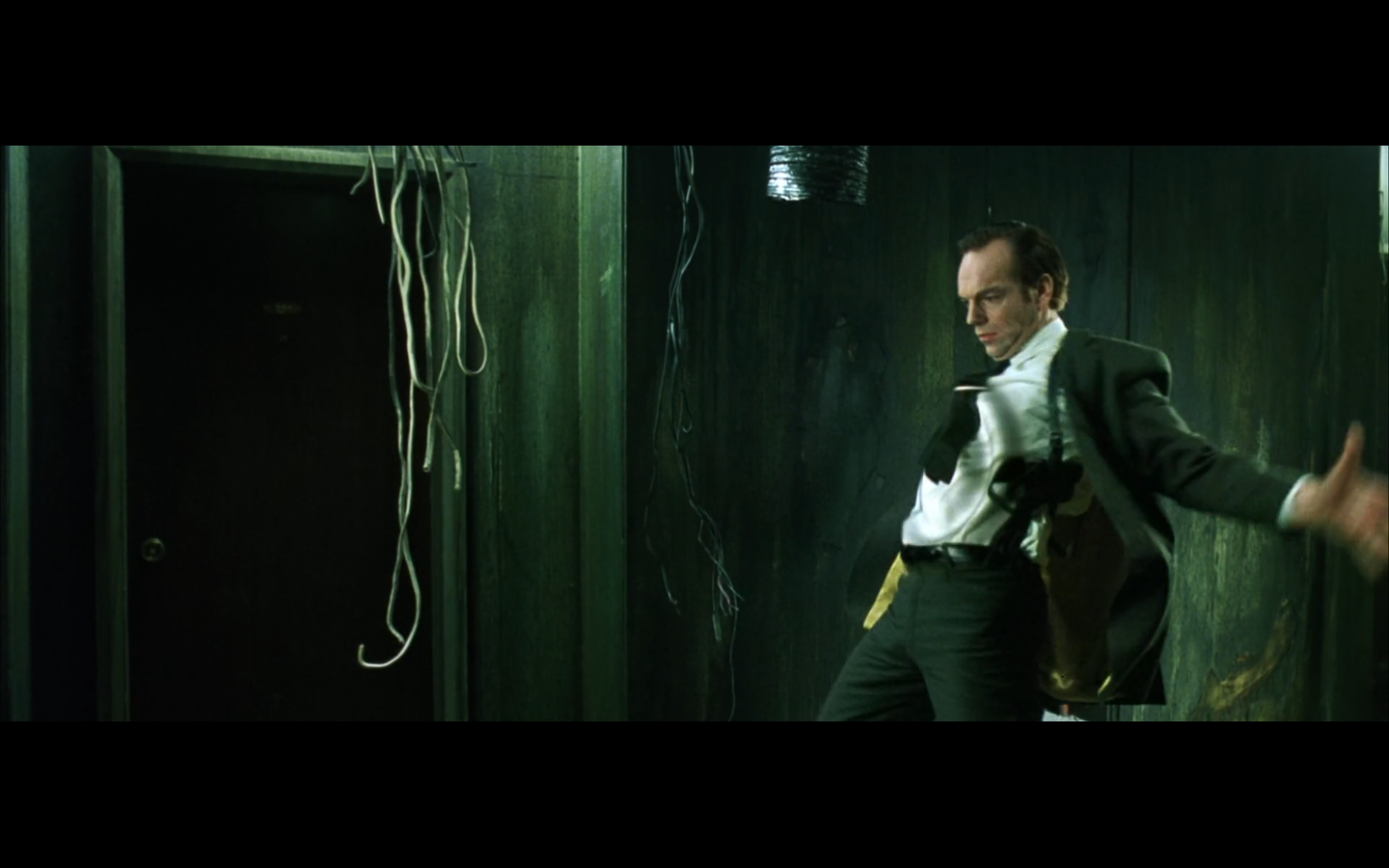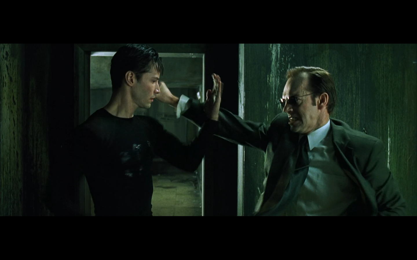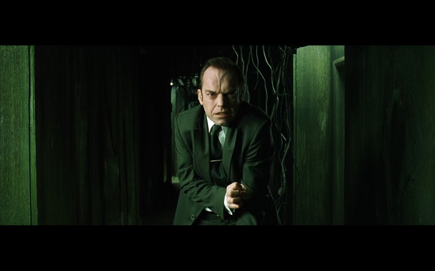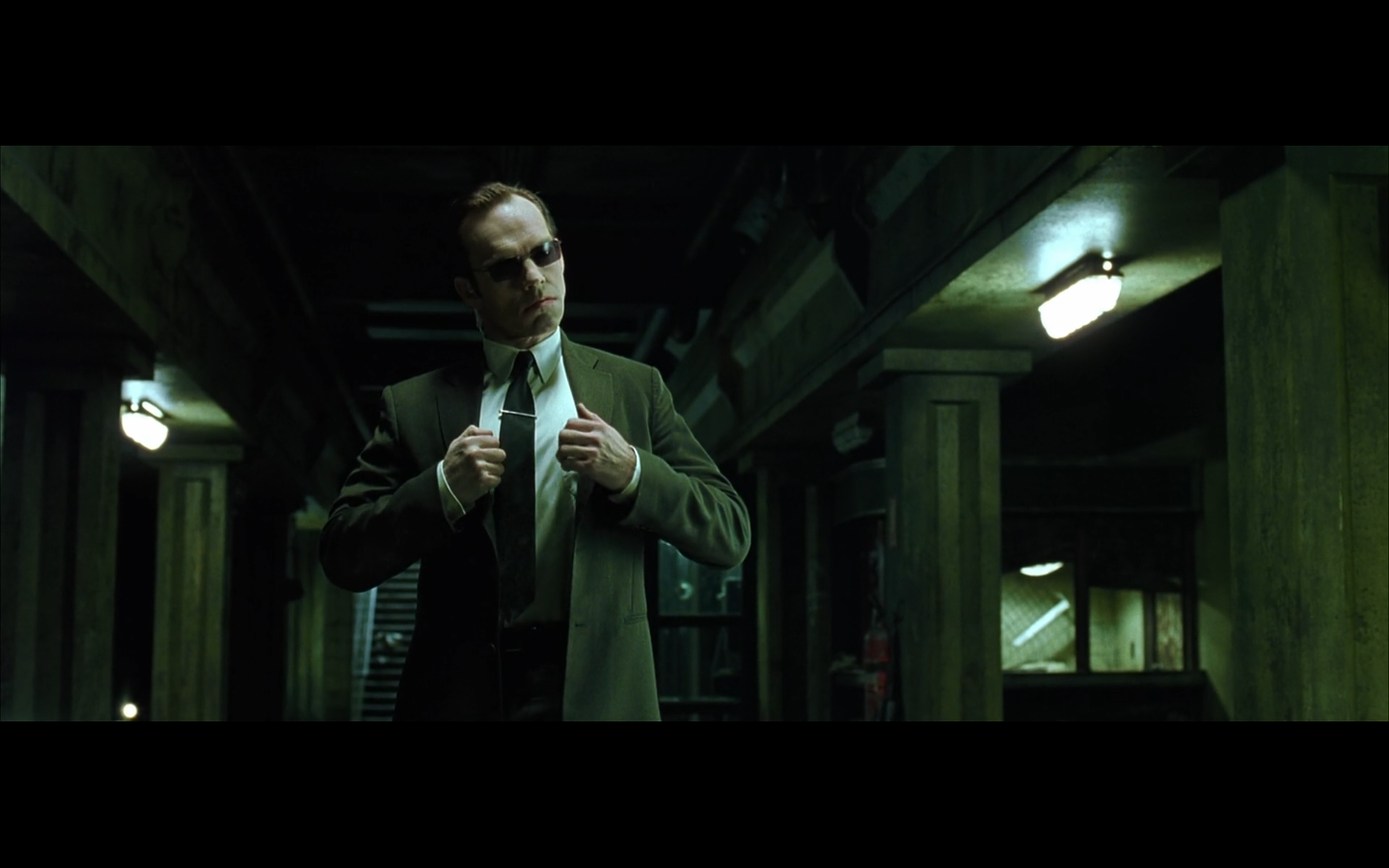 Interesting how Agent Smith has the same suit lining that Keanu had earlier in the movie, in his office.