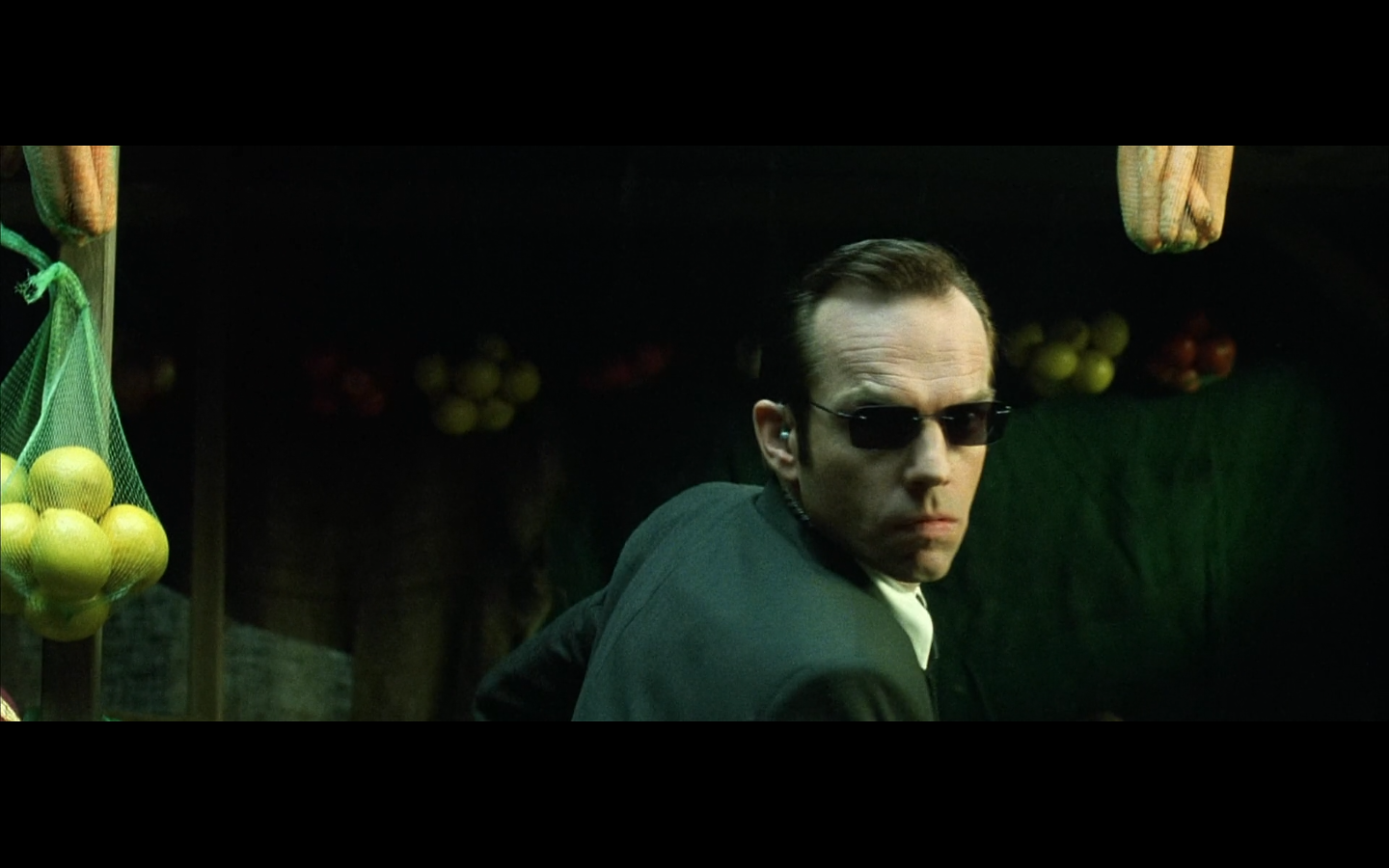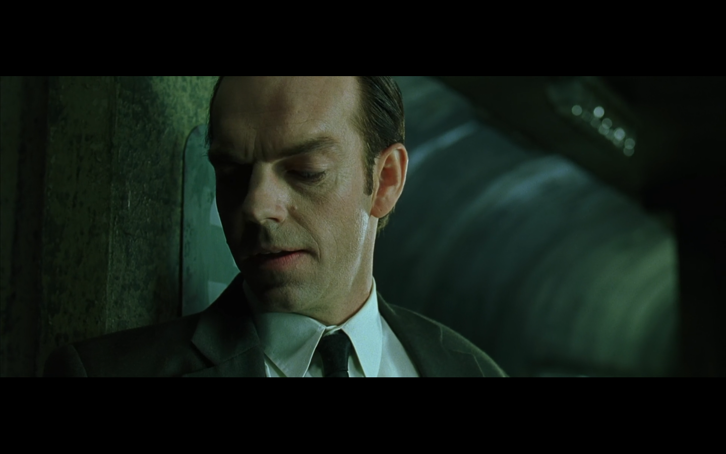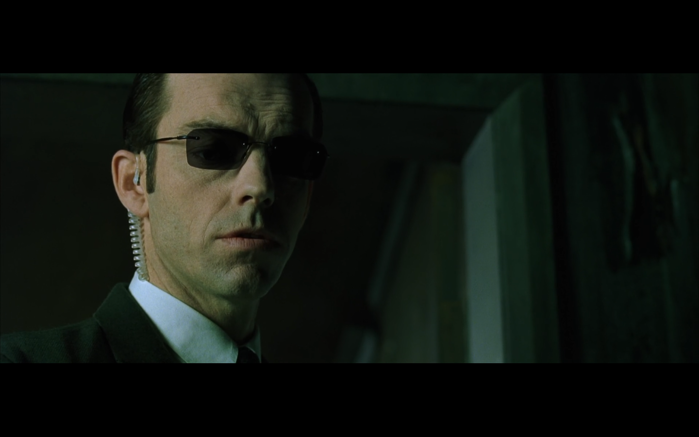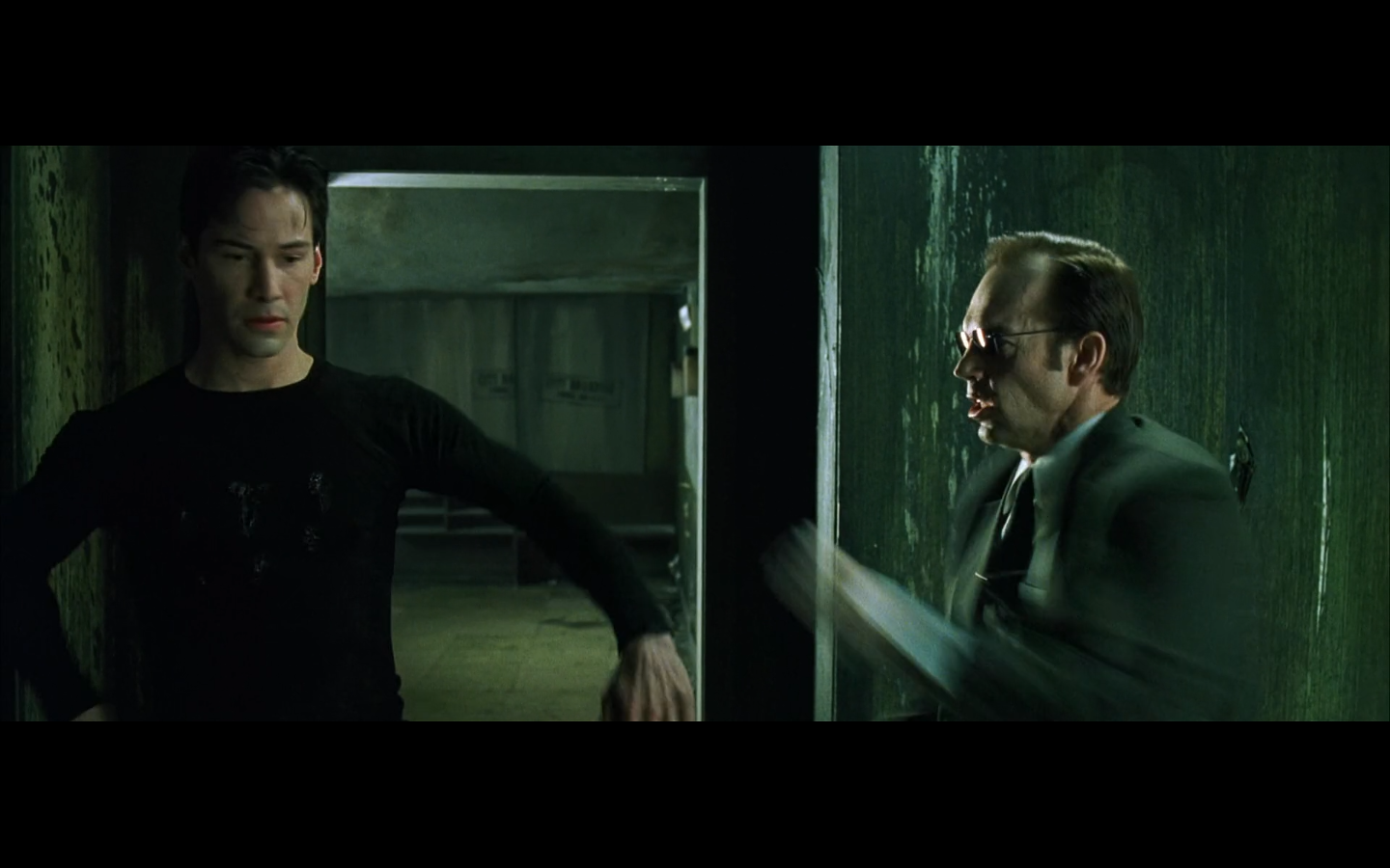 Interesting how Agent Smith has the same suit lining that Keanu had earlier in the movie, in his office.