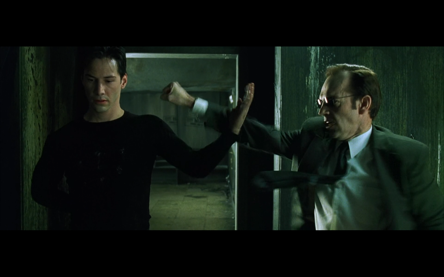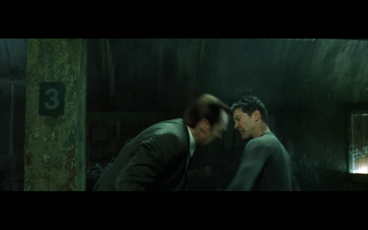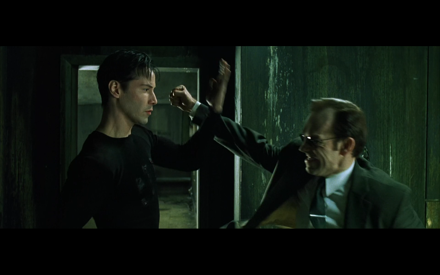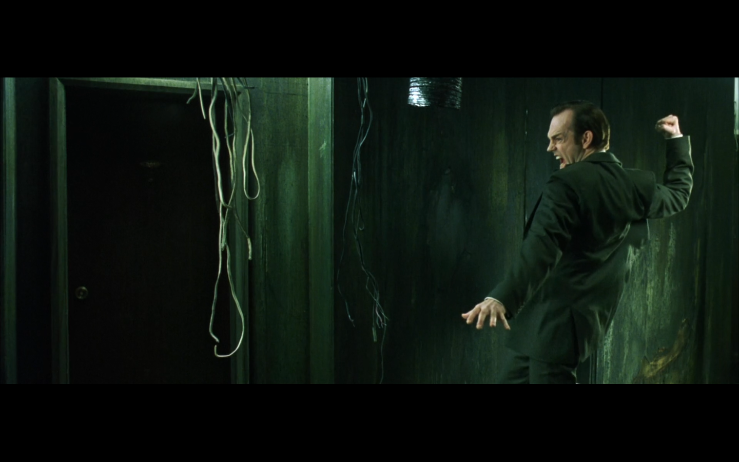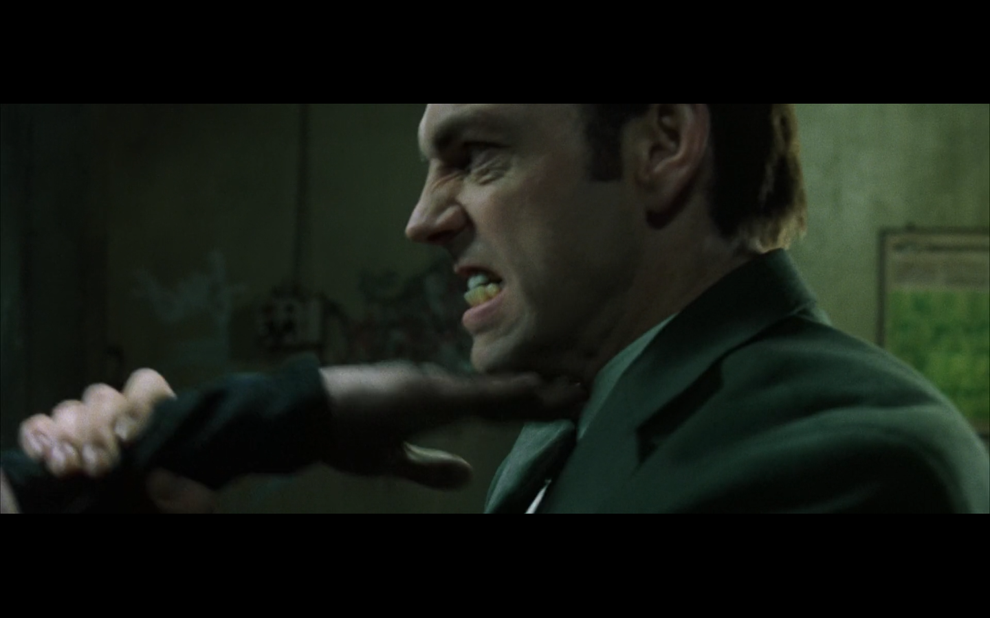 Interesting how Agent Smith has the same suit lining that Keanu had earlier in the movie, in his office.