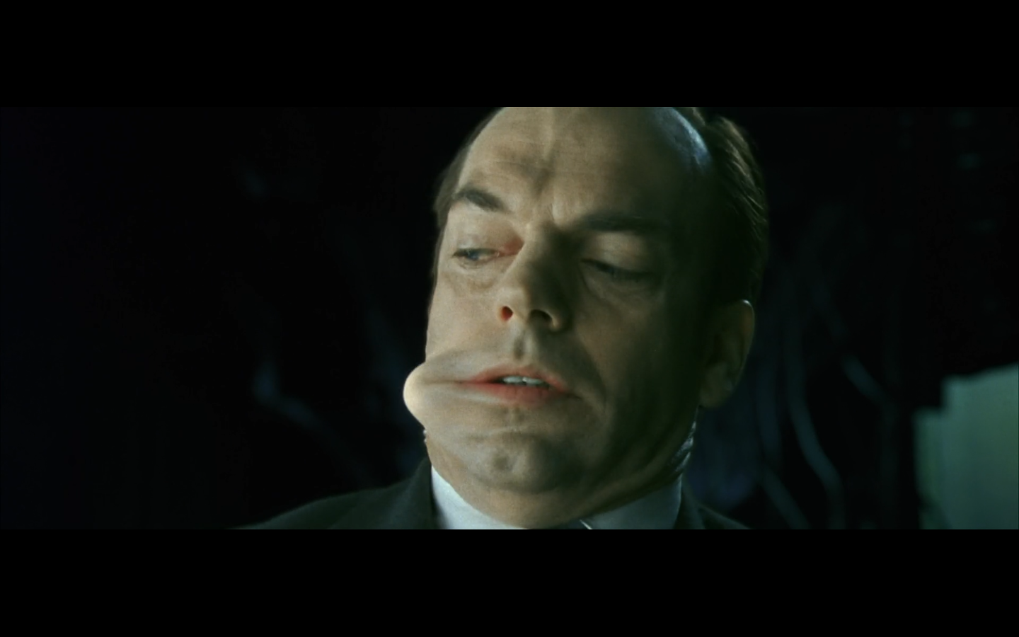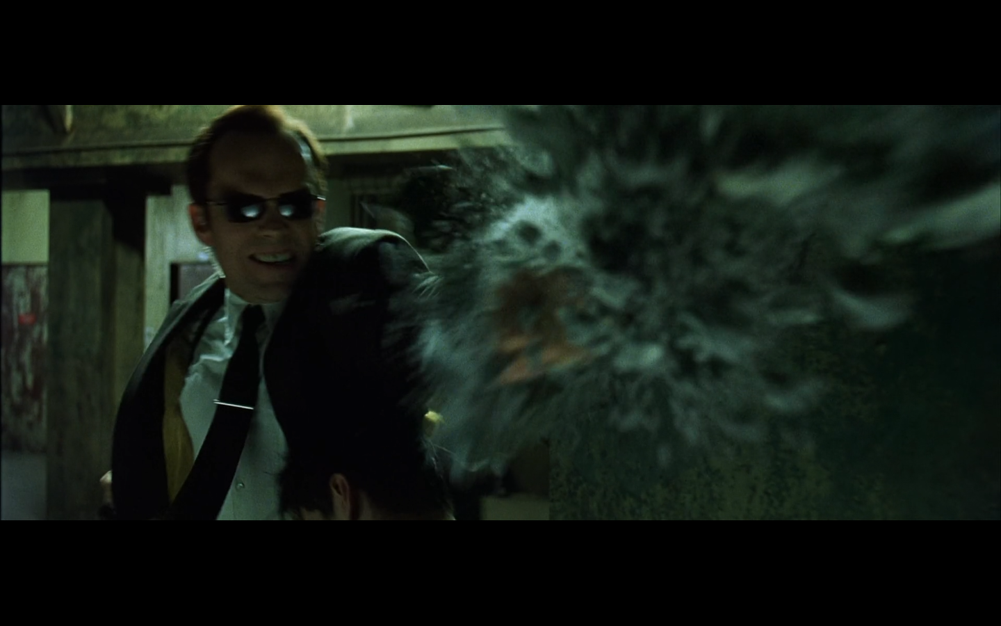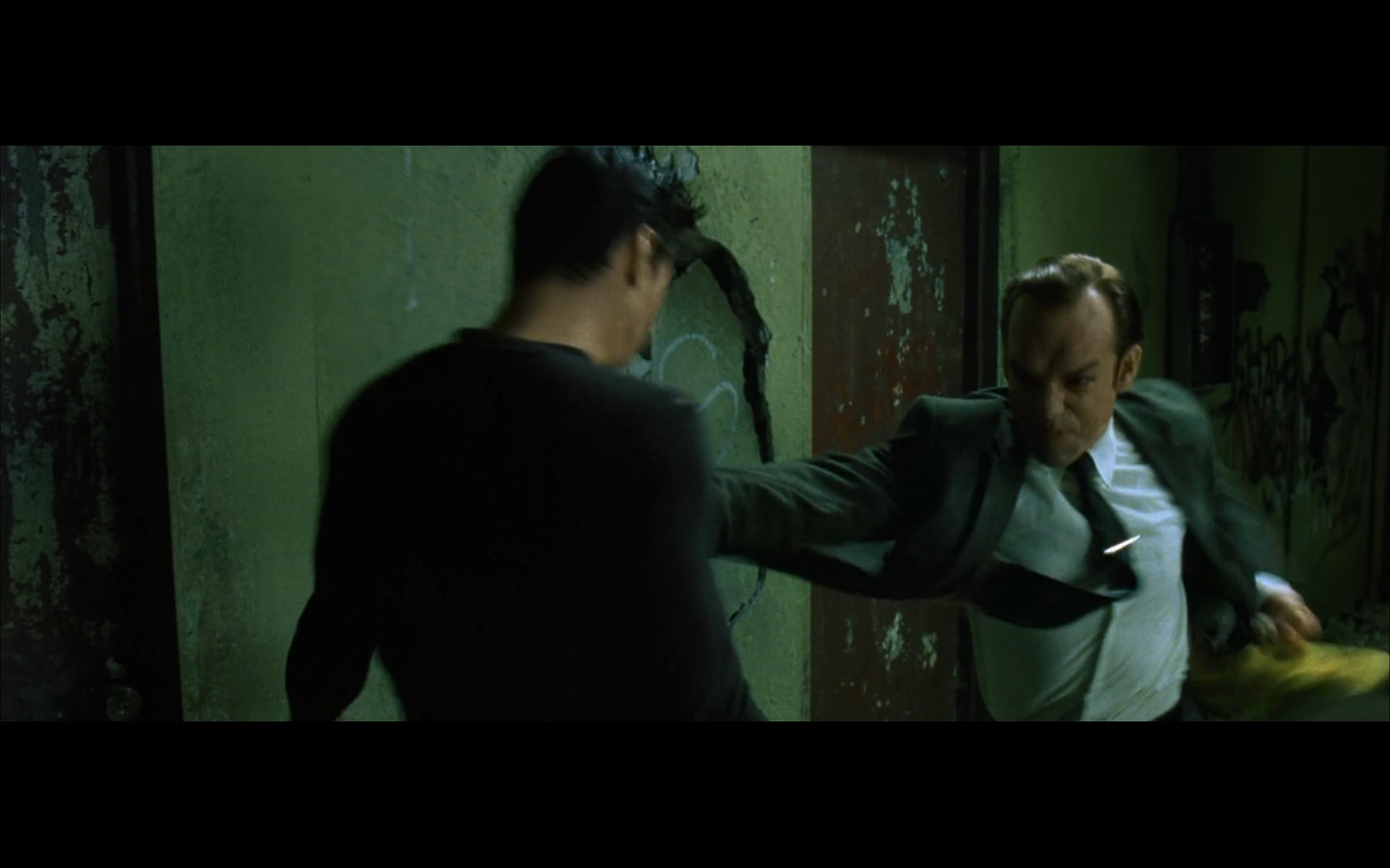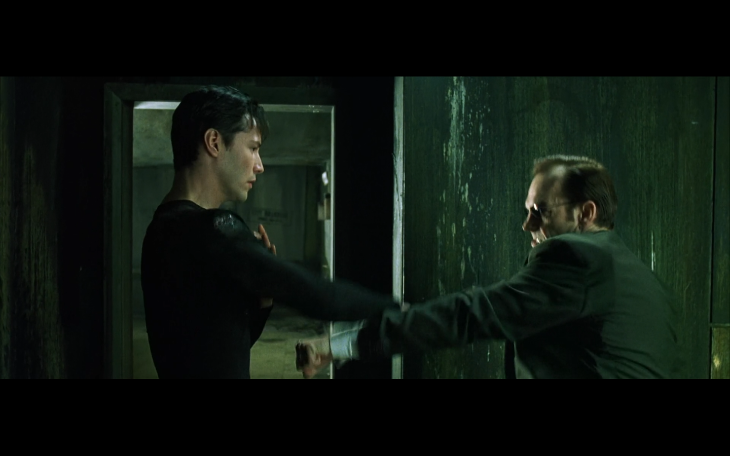 Interesting how Agent Smith has the same suit lining that Keanu had earlier in the movie, in his office.