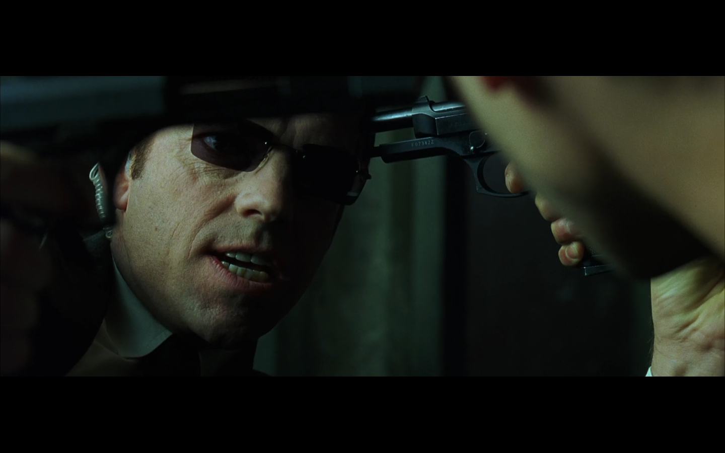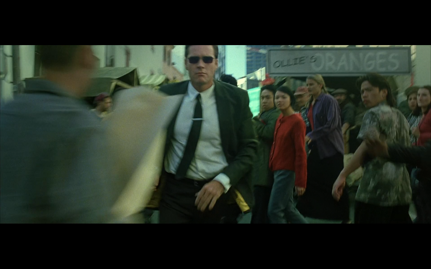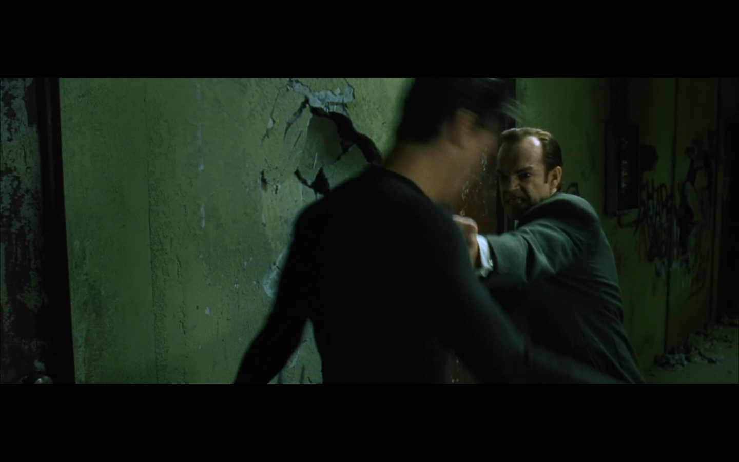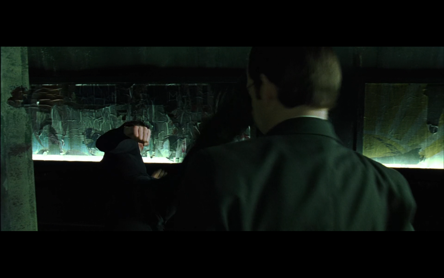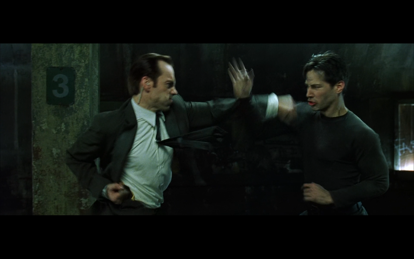 Interesting how Agent Smith has the same suit lining that Keanu had earlier in the movie, in his office.