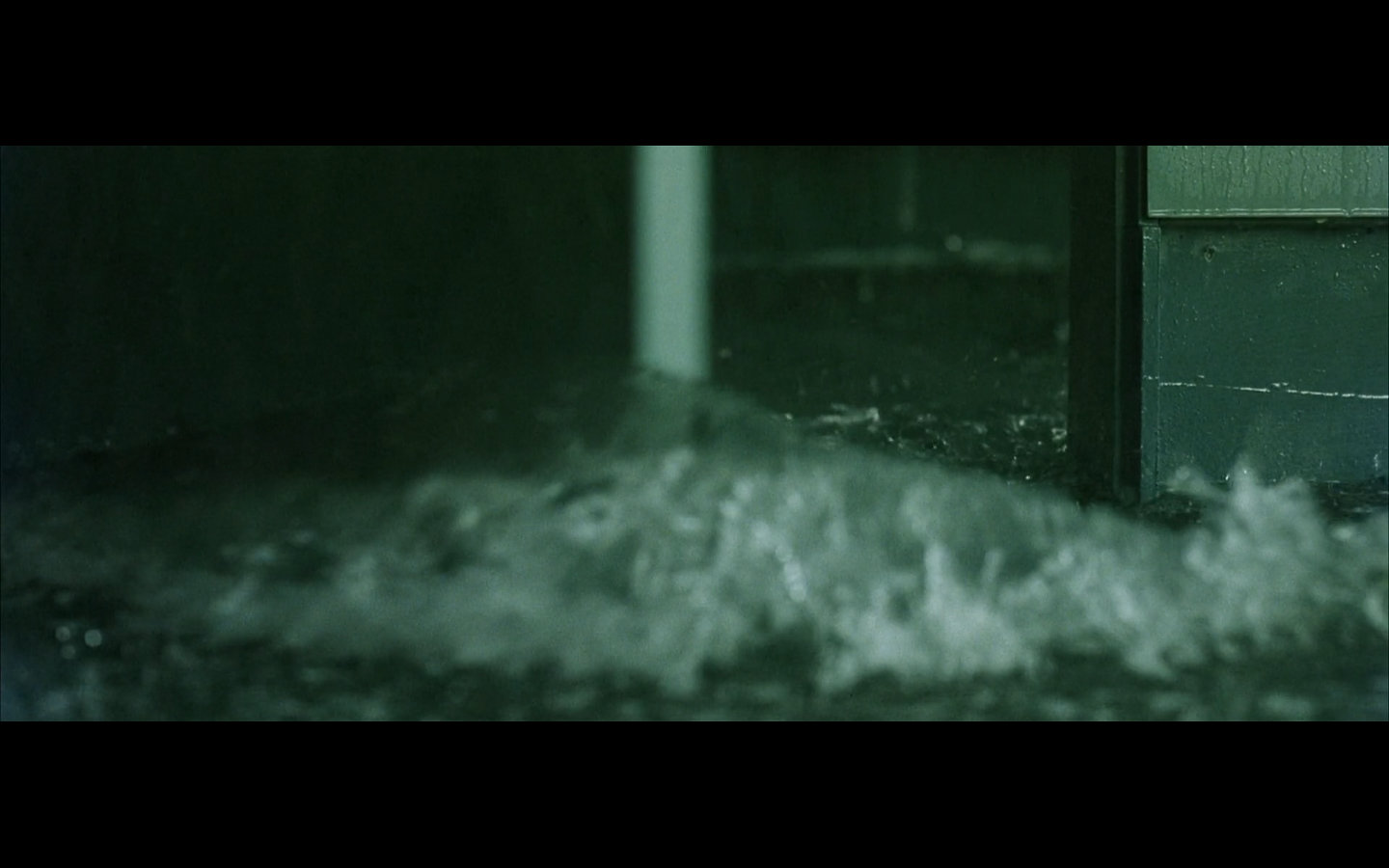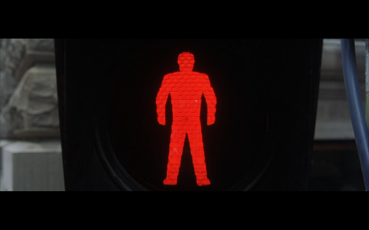 That is a shit ton of water. Reflections in the wet street have always been my thing (think Max von Sydow walking across the street in Three Days of the Condor), and reflections are a major part of this film’s visual theme. I don’t know if it’s intentional, or just the greenish tint washing out the color, but these reflections are shocking the screen with these flashes of red and blue. Colors mean things.