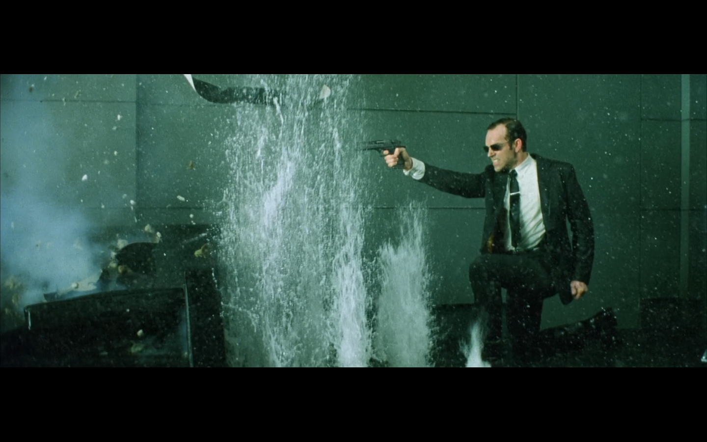 I’m putting this here, because it’s impossible for one of the shots from Reloaded, which pay off this one, to not be featured. So this has to get relegated to the intro. But this does get me going on the idea that a lot of great and iconic moments in this franchise are built around intelligent shot choices that are used sparingly to create motifs. So when you see the TVs later on (if you remember), you think back to this moment. We’ll get more into that next week.