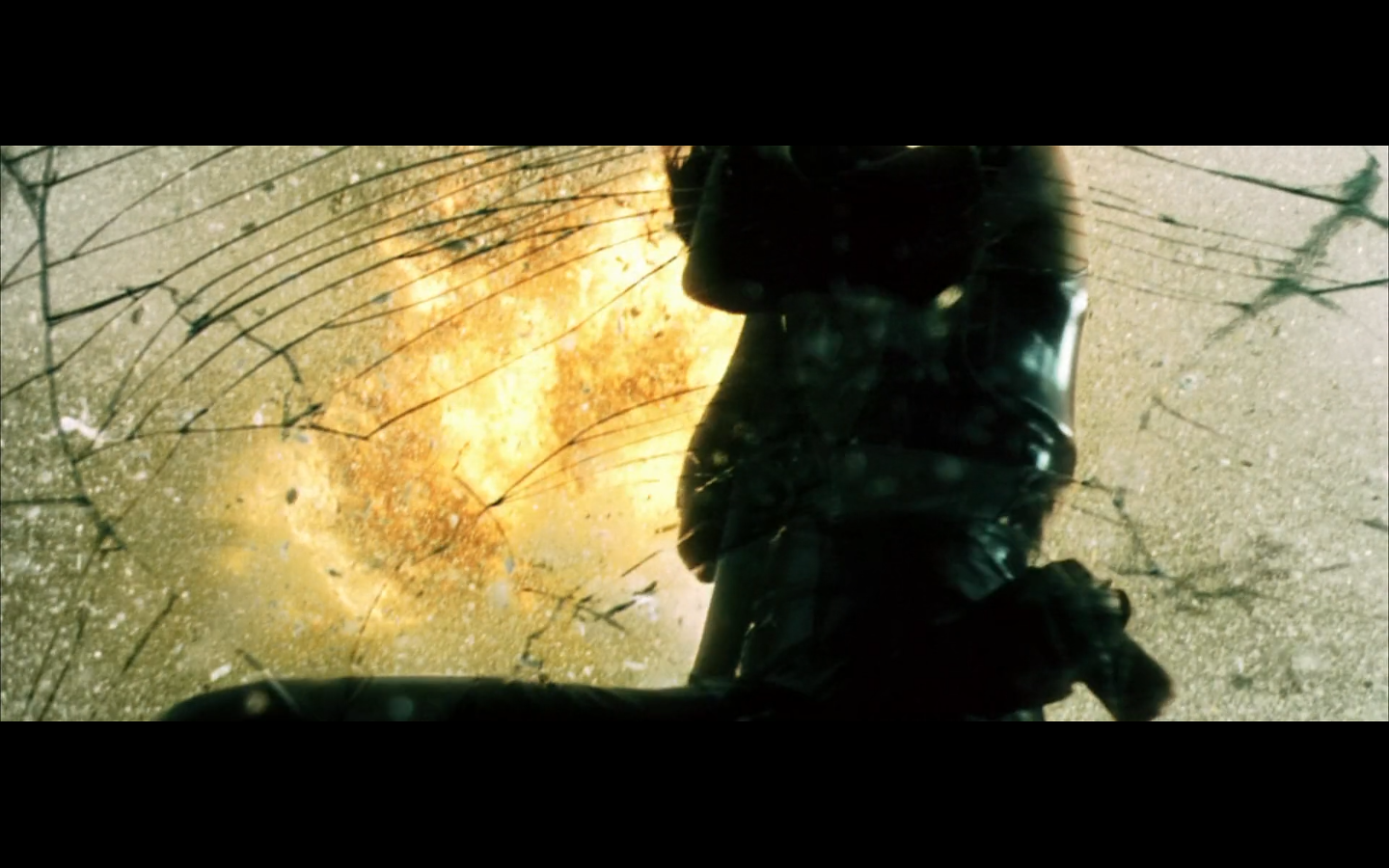 How do you get the explosion AND get her hitting the building? Shoot from inside. I think what appeals to me the most about this shot is that there’s glass between the camera and the action, and you’re not aware of it until she hits it. You become more aware of the shot’s placement and dimensions as a direct result of the unfolding action.