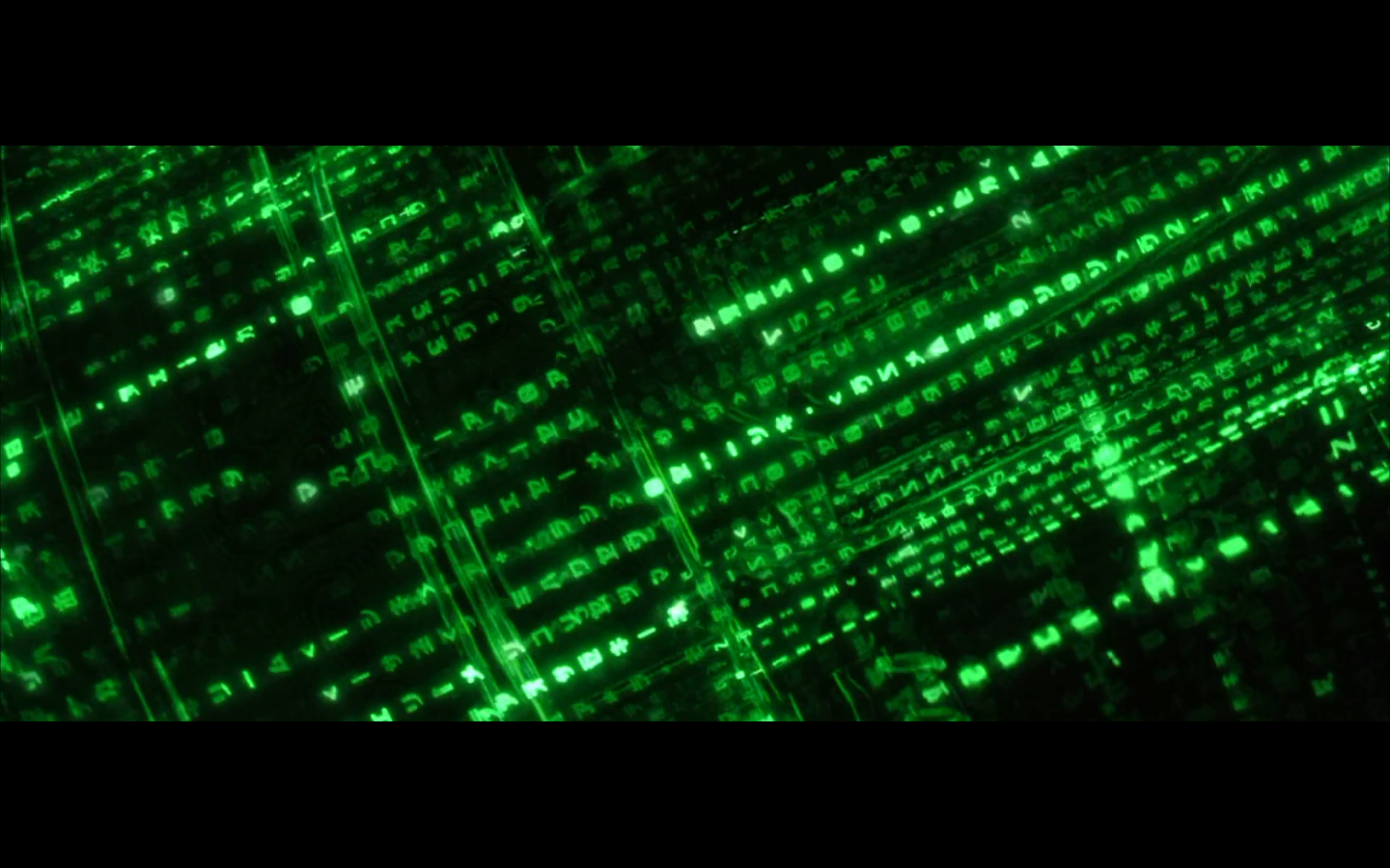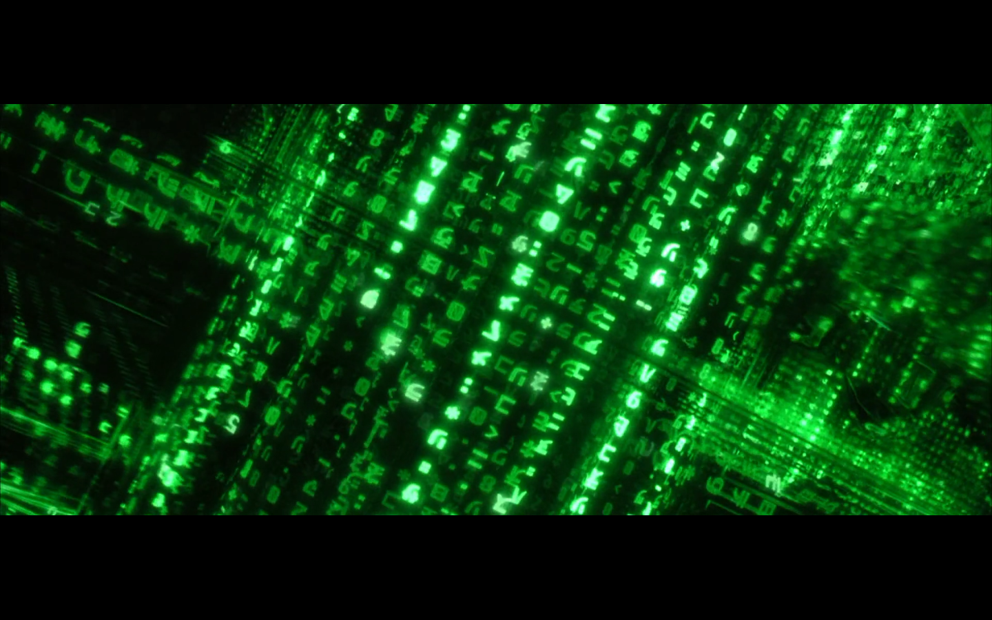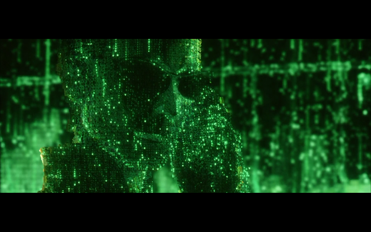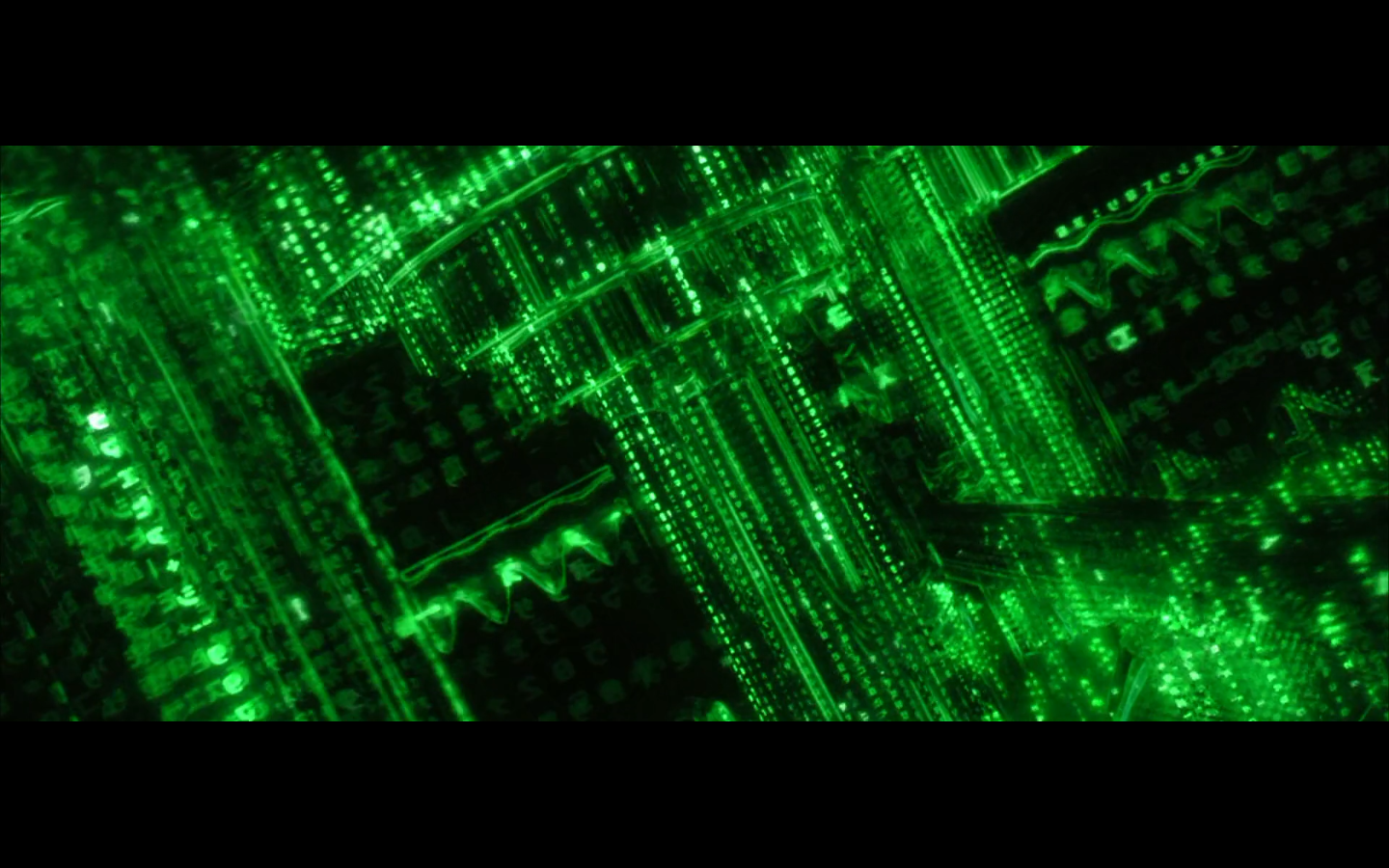 What’s with the green shit? Why are all the numbers and the code green? I thought machines would be into grayscale. I get that there were computer screens like this back in the day, but it’s a pretty retro aesthetic to be trying to emulate way in the future. Not only that, but if you consider just how much data is present and in constant flux within a system like the Matrix, it becomes absurd to even store or display it as symbols. Can you tell that this all took place before quantum computing was a thing?