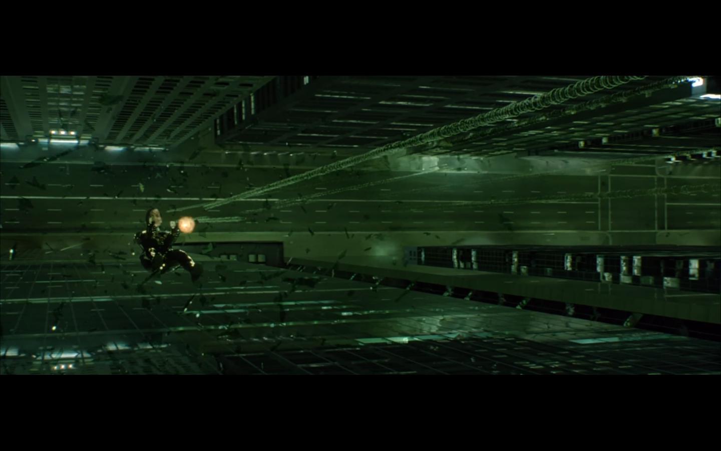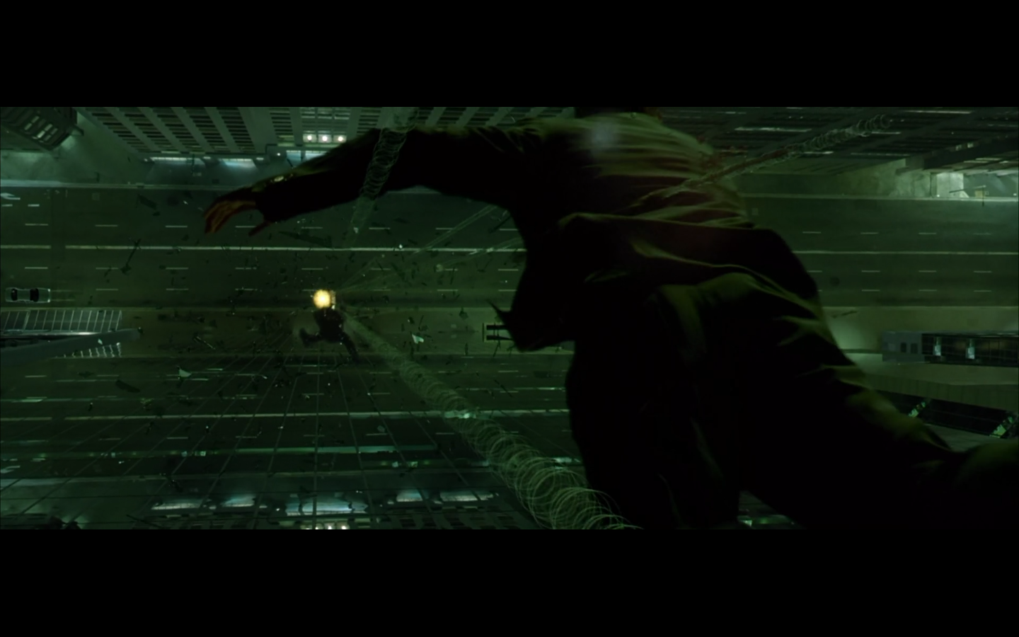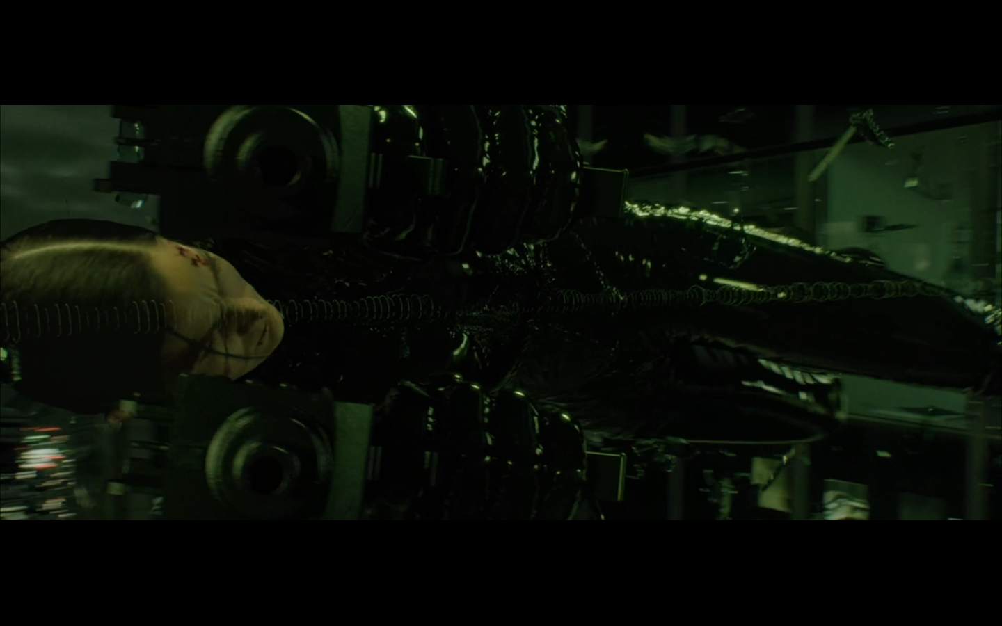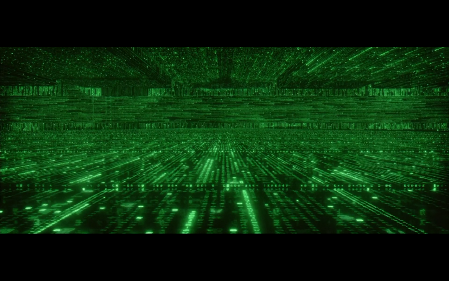 What’s with the green shit? Why are all the numbers and the code green? I thought machines would be into grayscale. I get that there were computer screens like this back in the day, but it’s a pretty retro aesthetic to be trying to emulate way in the future. Not only that, but if you consider just how much data is present and in constant flux within a system like the Matrix, it becomes absurd to even store or display it as symbols. Can you tell that this all took place before quantum computing was a thing?