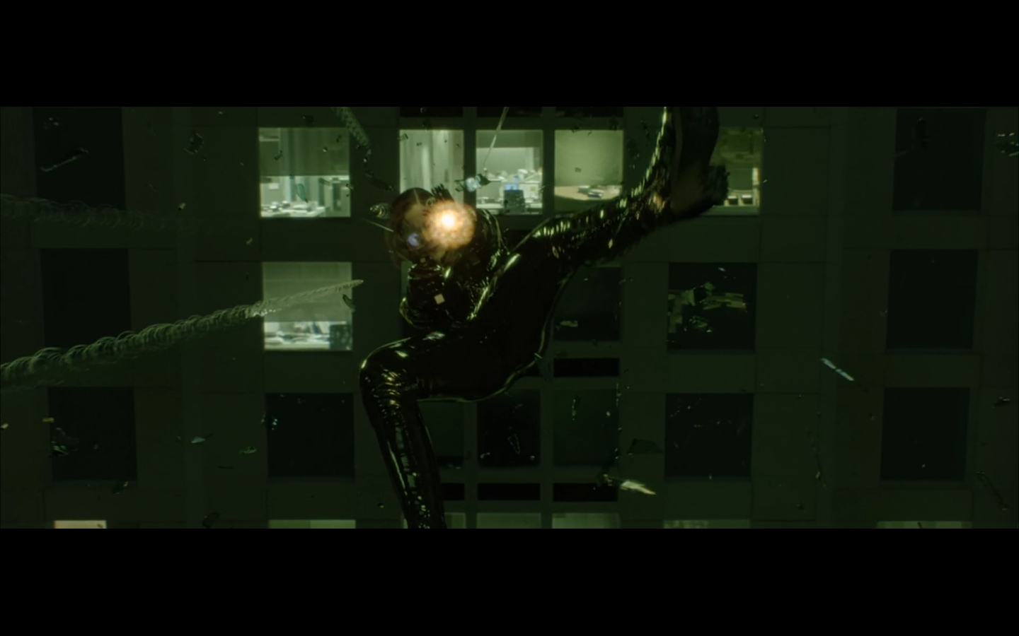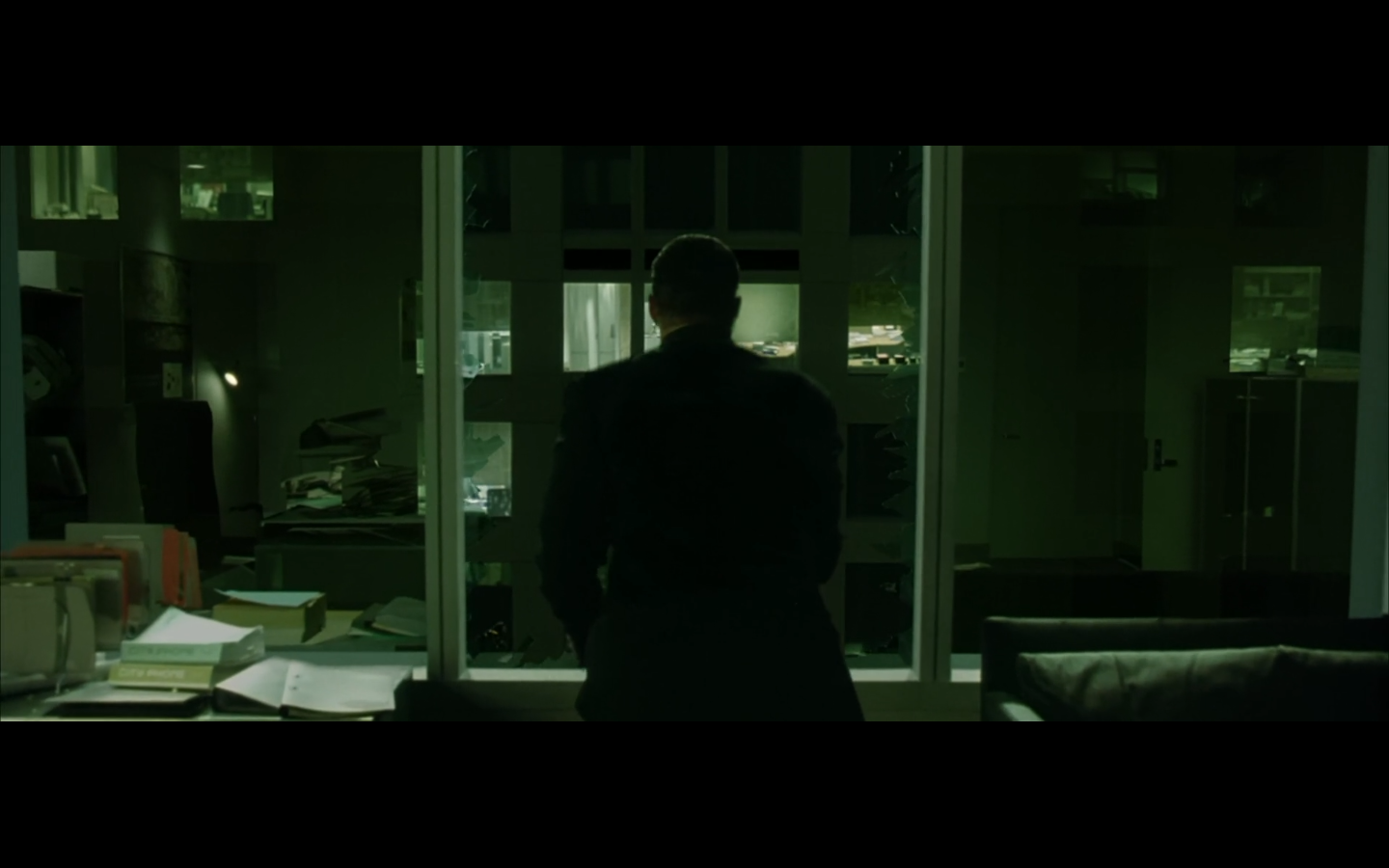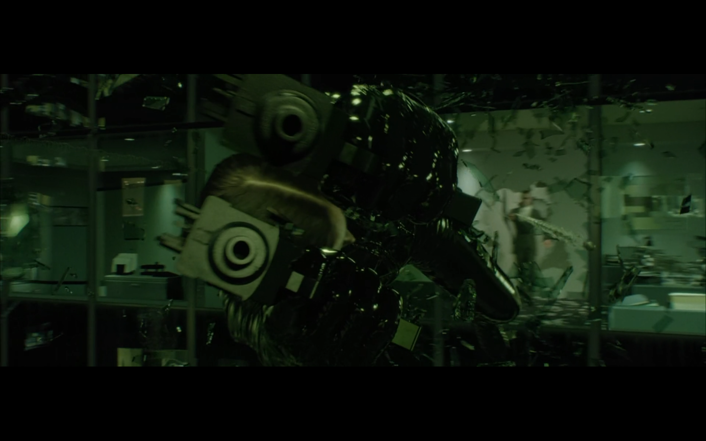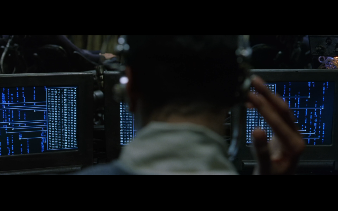 What’s with the green shit? Why are all the numbers and the code green? I thought machines would be into grayscale. I get that there were computer screens like this back in the day, but it’s a pretty retro aesthetic to be trying to emulate way in the future. Not only that, but if you consider just how much data is present and in constant flux within a system like the Matrix, it becomes absurd to even store or display it as symbols. Can you tell that this all took place before quantum computing was a thing?