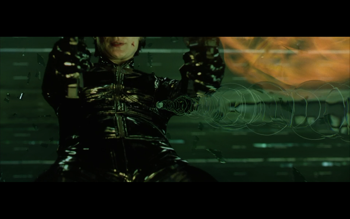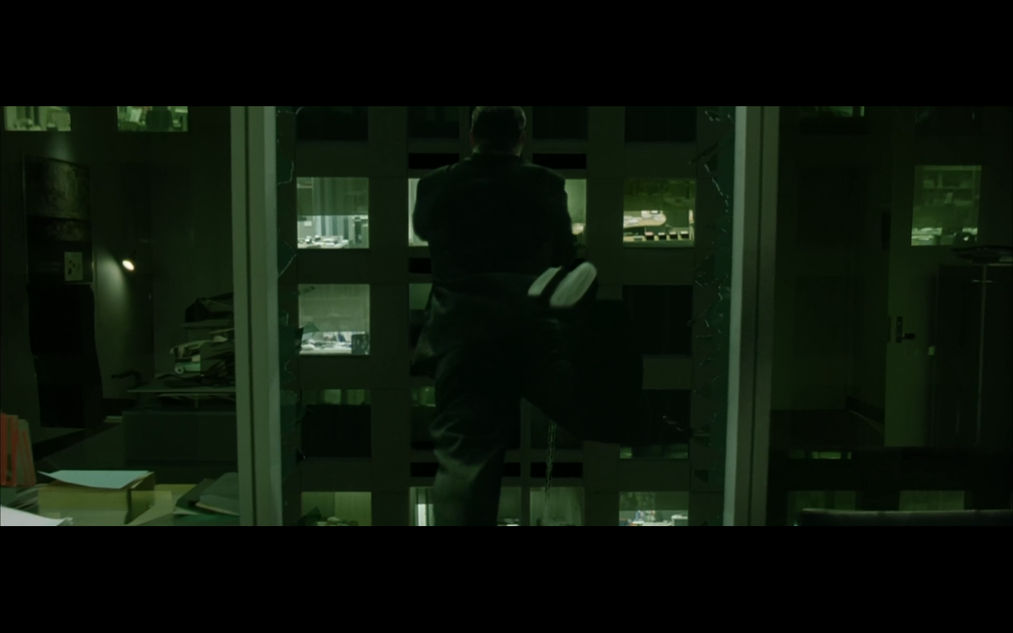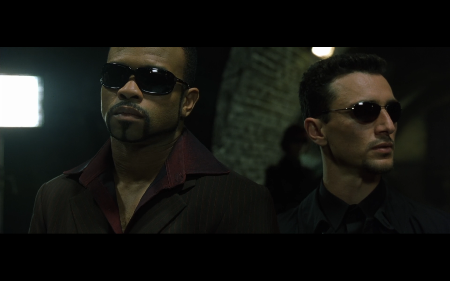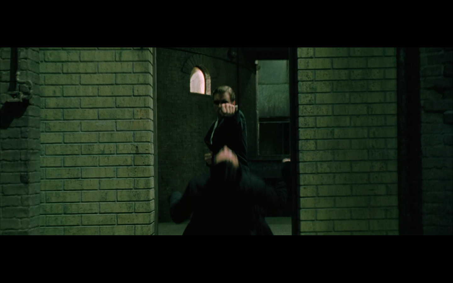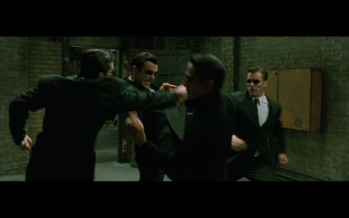 The typical “random civilian dude from the Matrix turns around in shock at some shit our protagonists do” shot.
