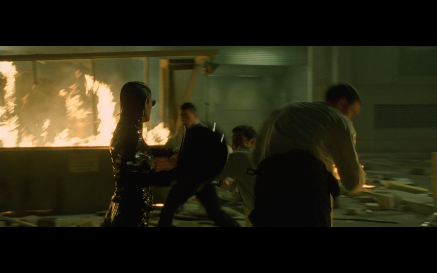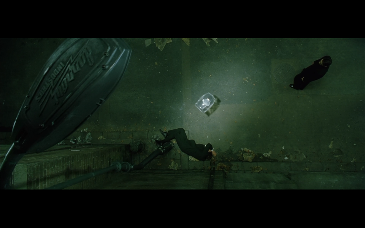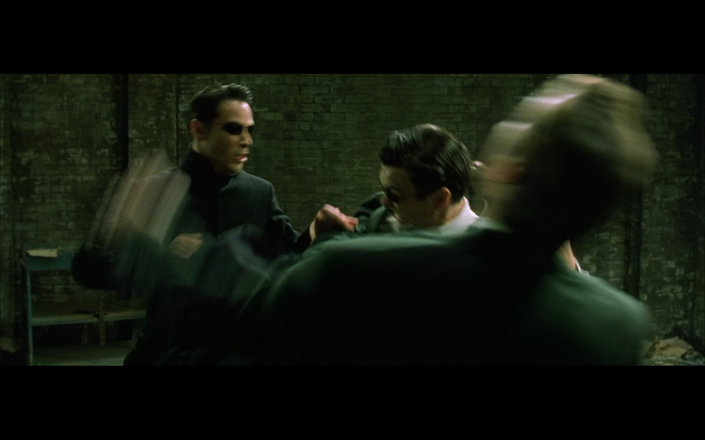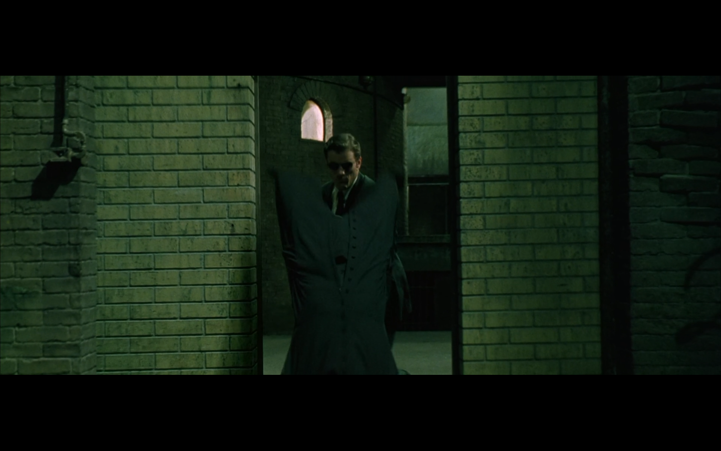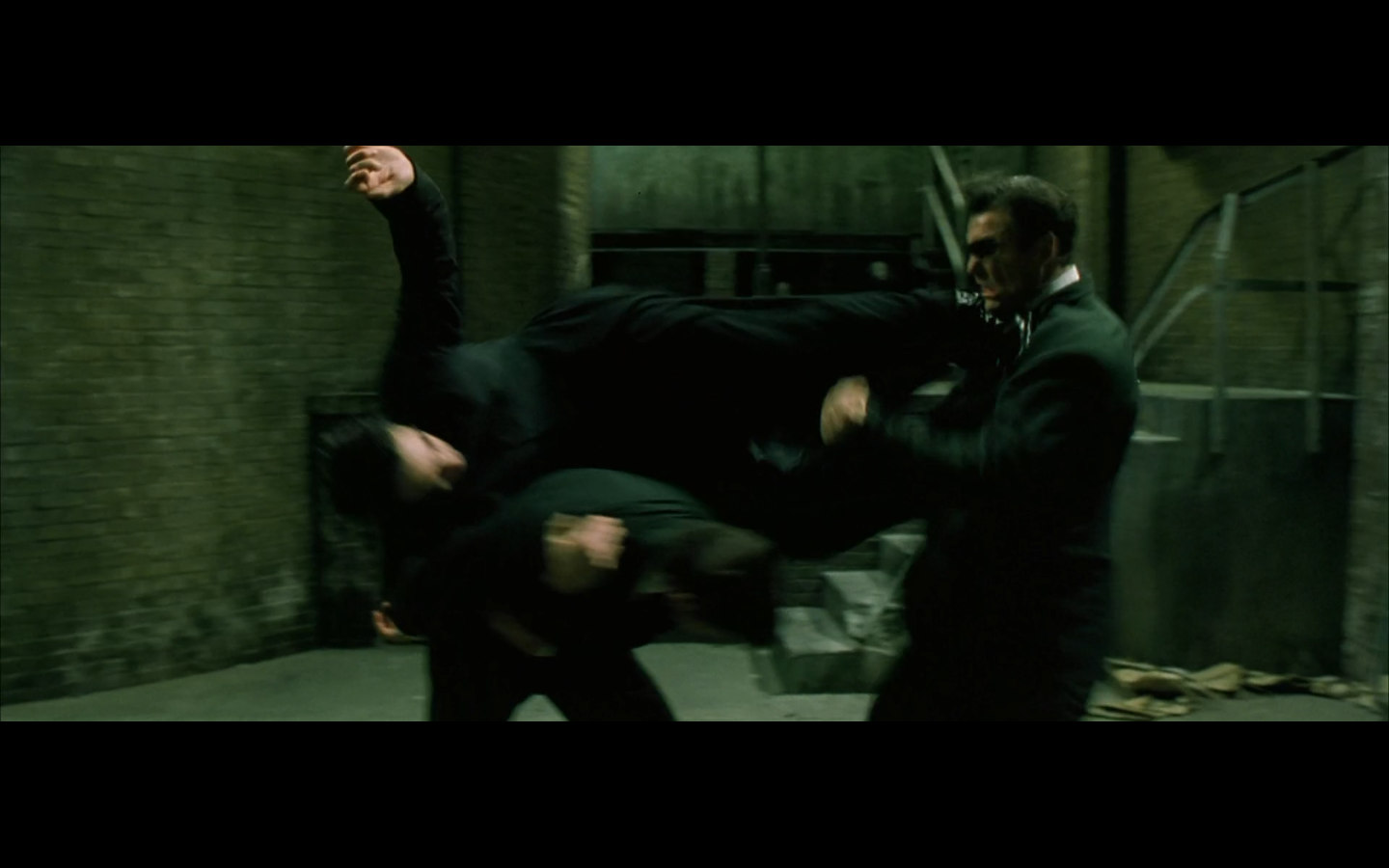 The typical “random civilian dude from the Matrix turns around in shock at some shit our protagonists do” shot.