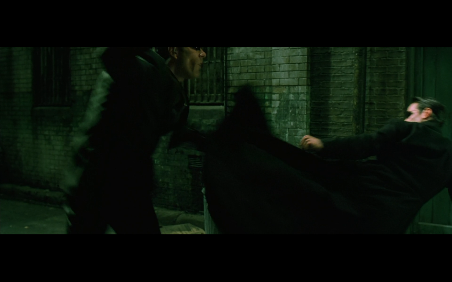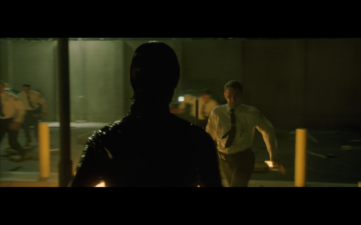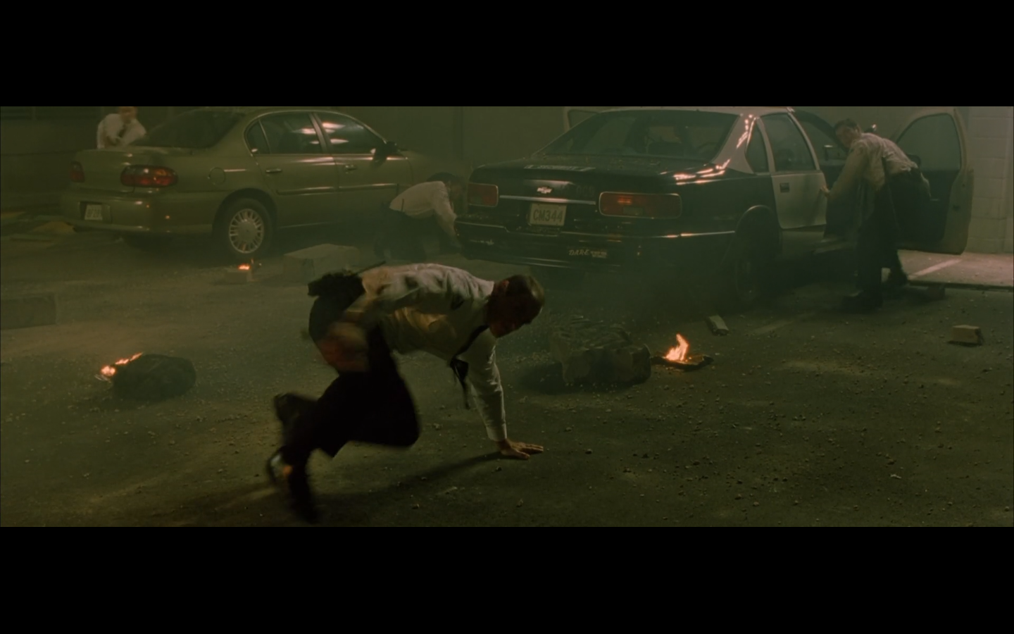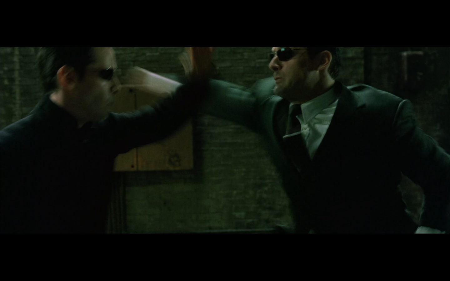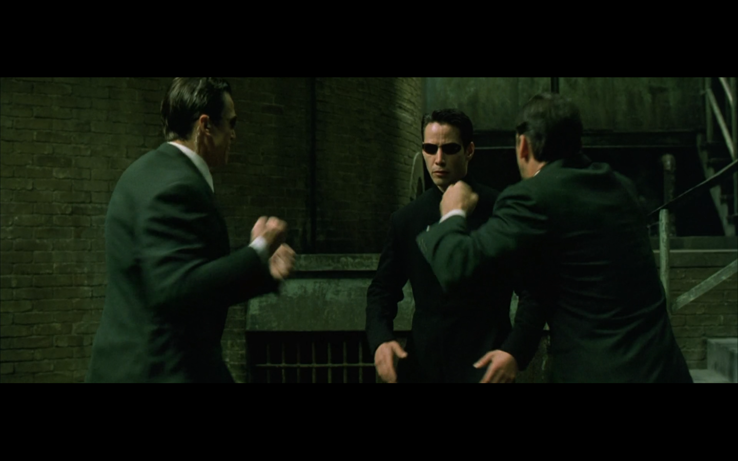 The typical “random civilian dude from the Matrix turns around in shock at some shit our protagonists do” shot.