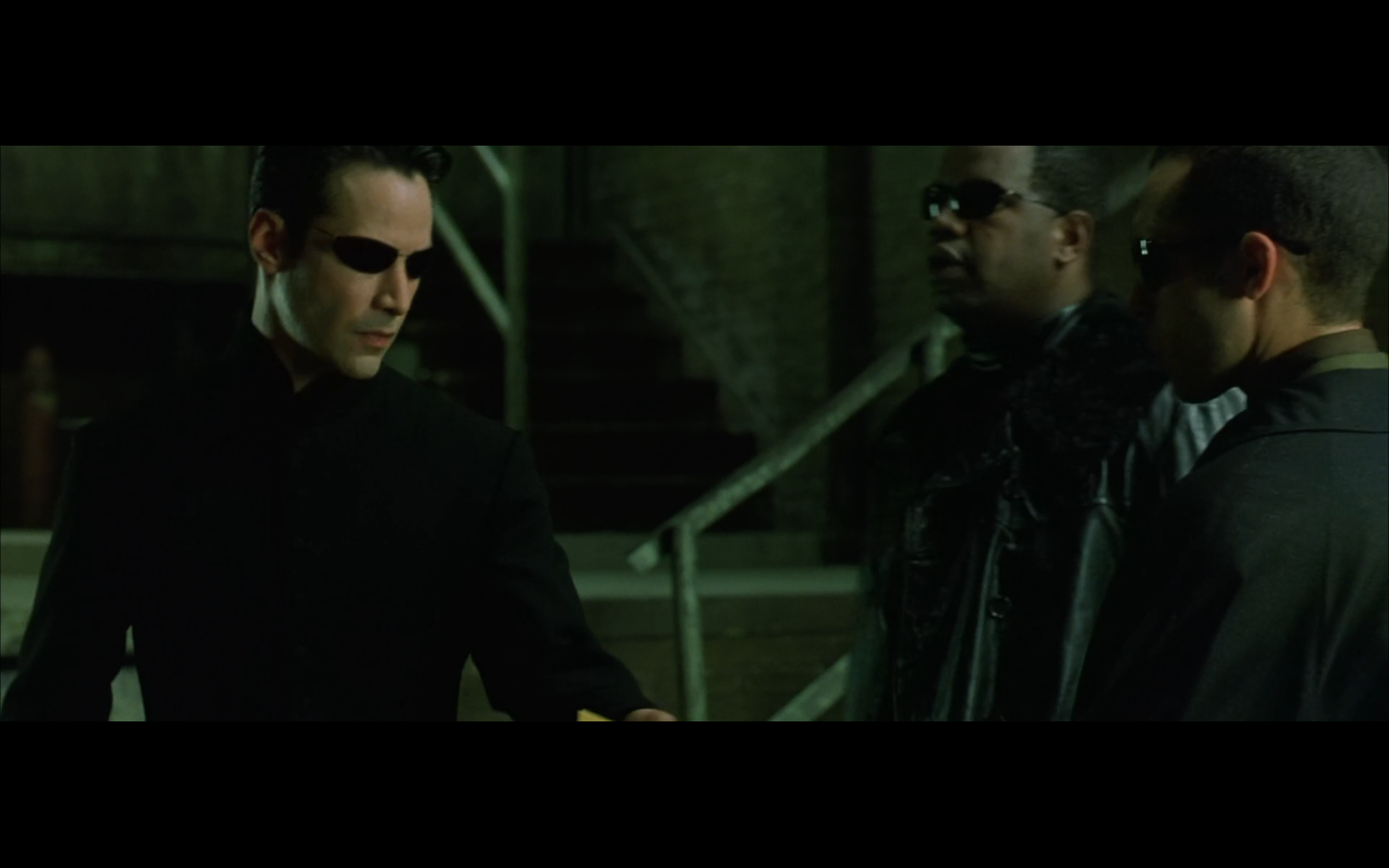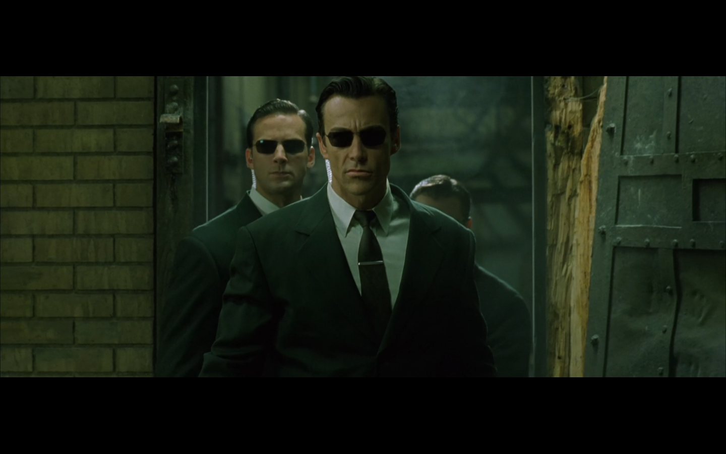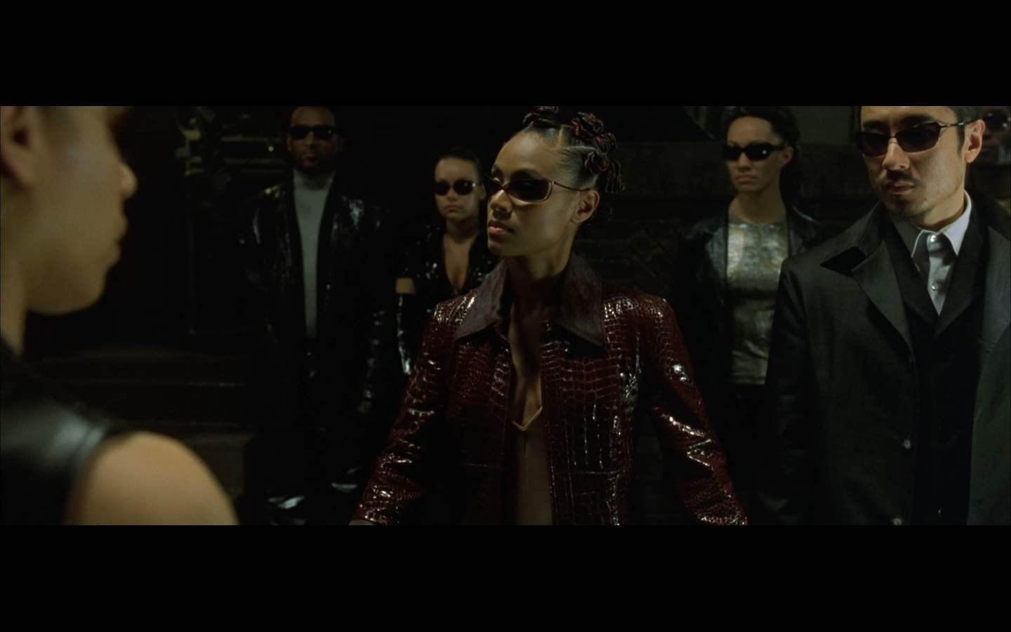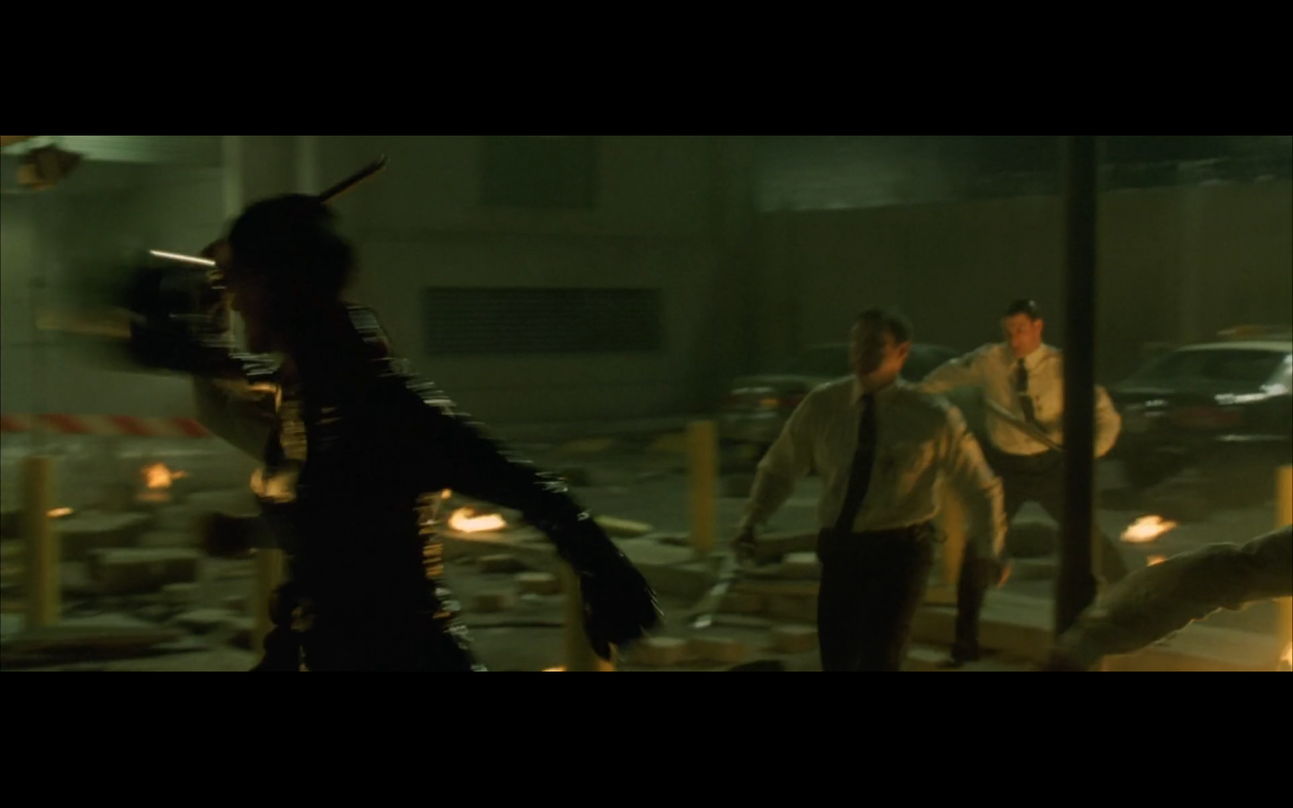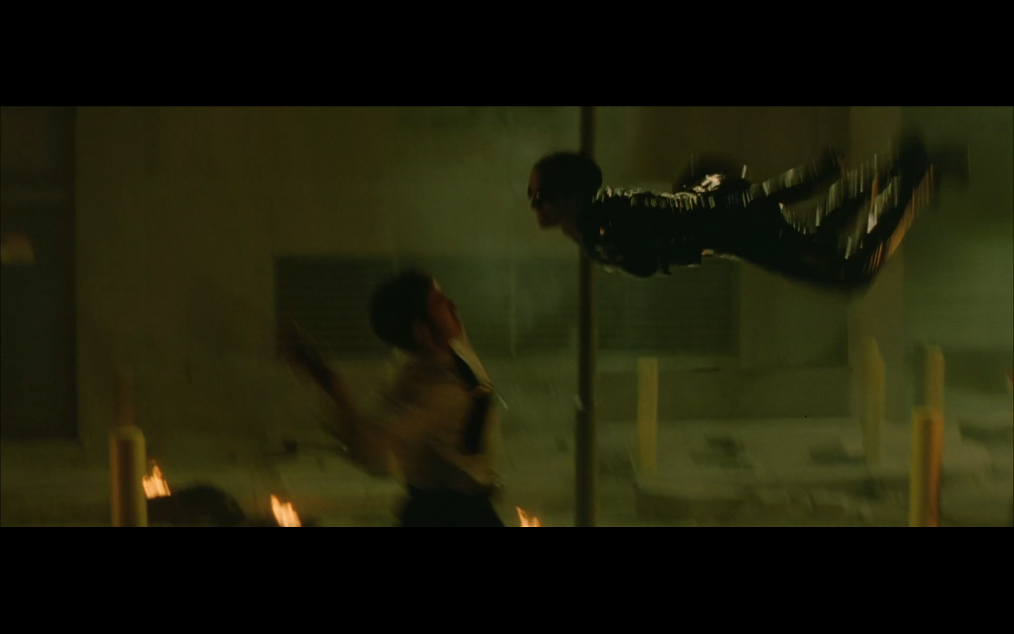 The typical “random civilian dude from the Matrix turns around in shock at some shit our protagonists do” shot.