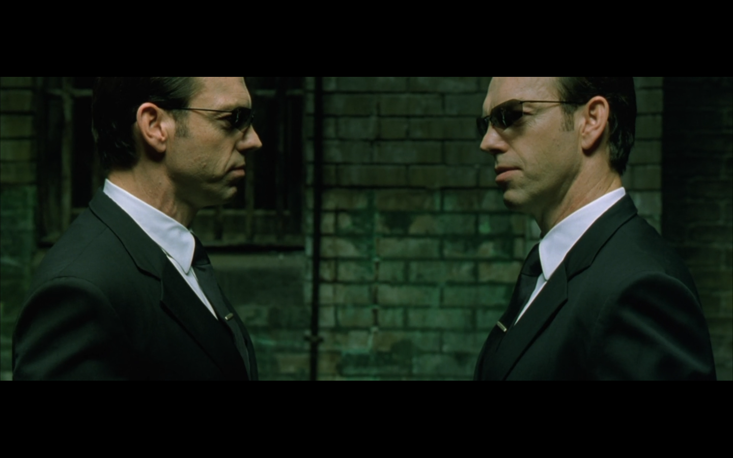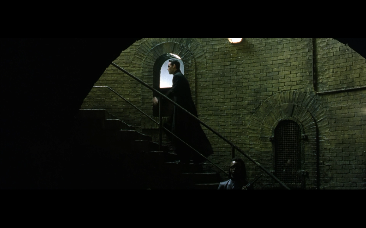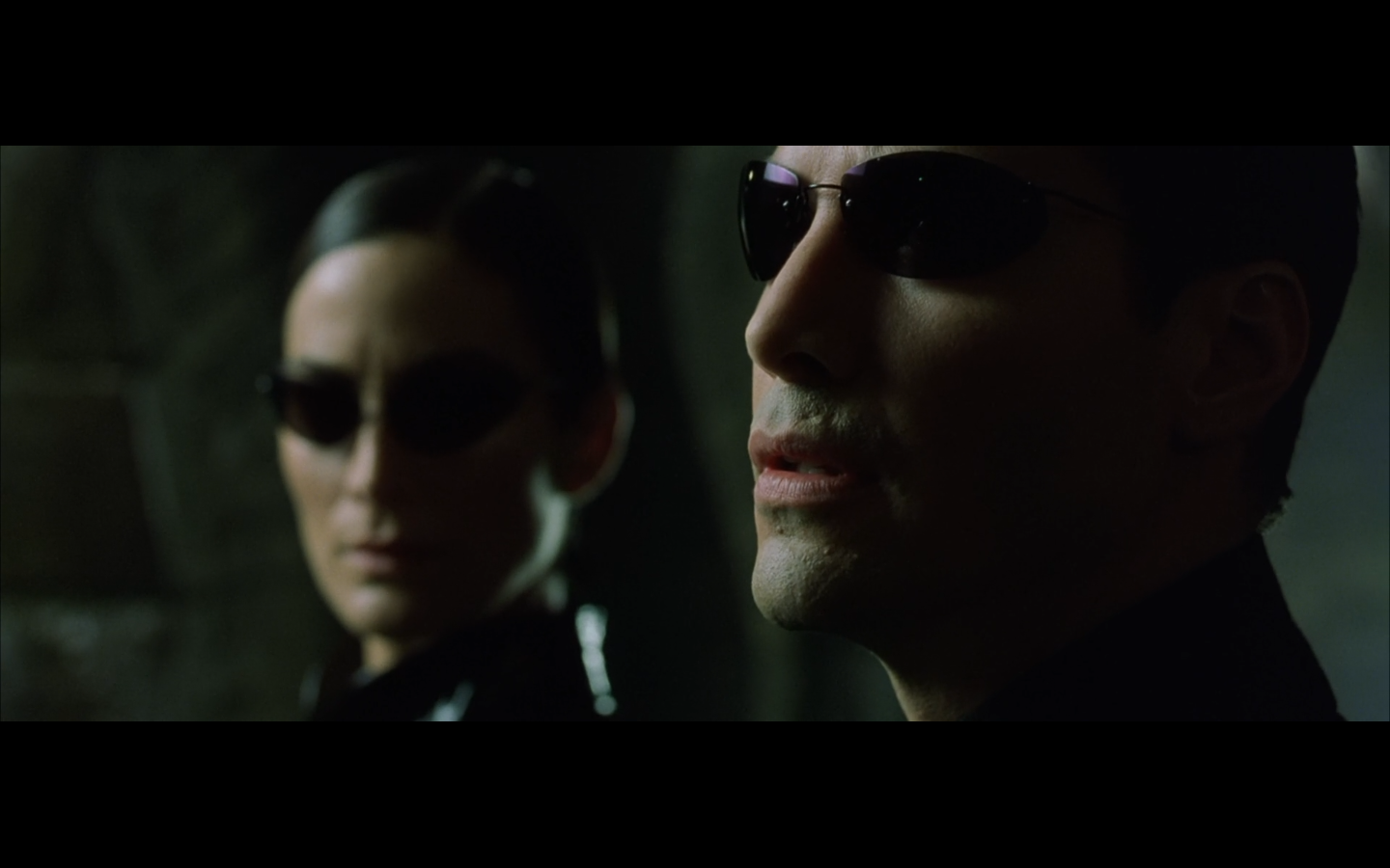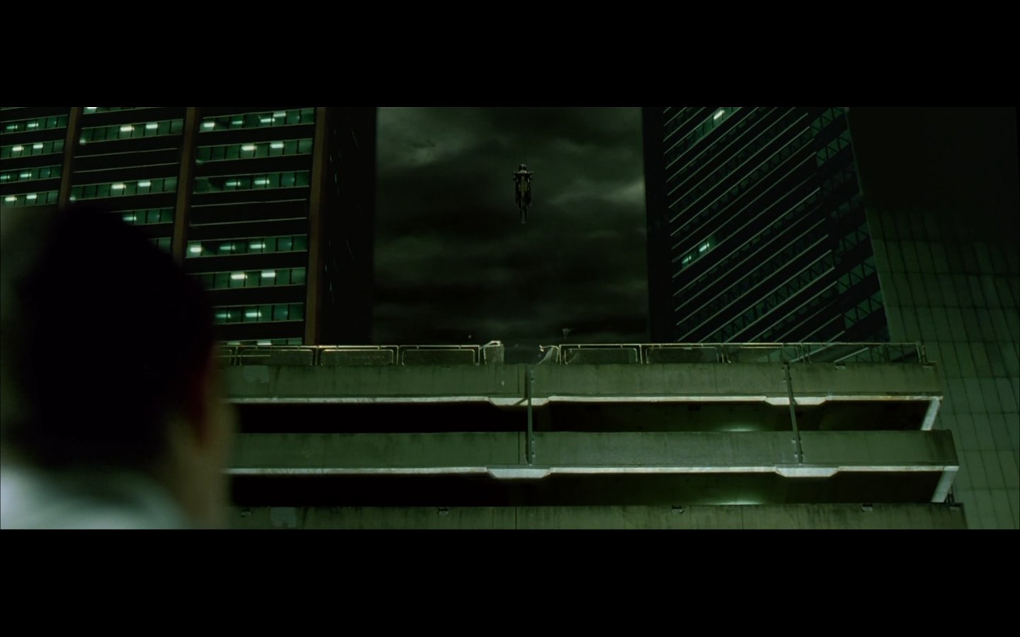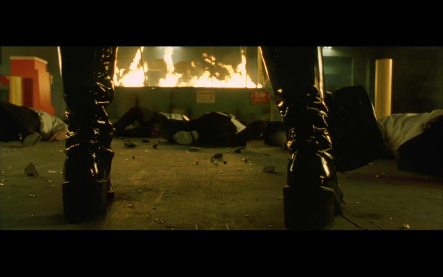 The typical “random civilian dude from the Matrix turns around in shock at some shit our protagonists do” shot.