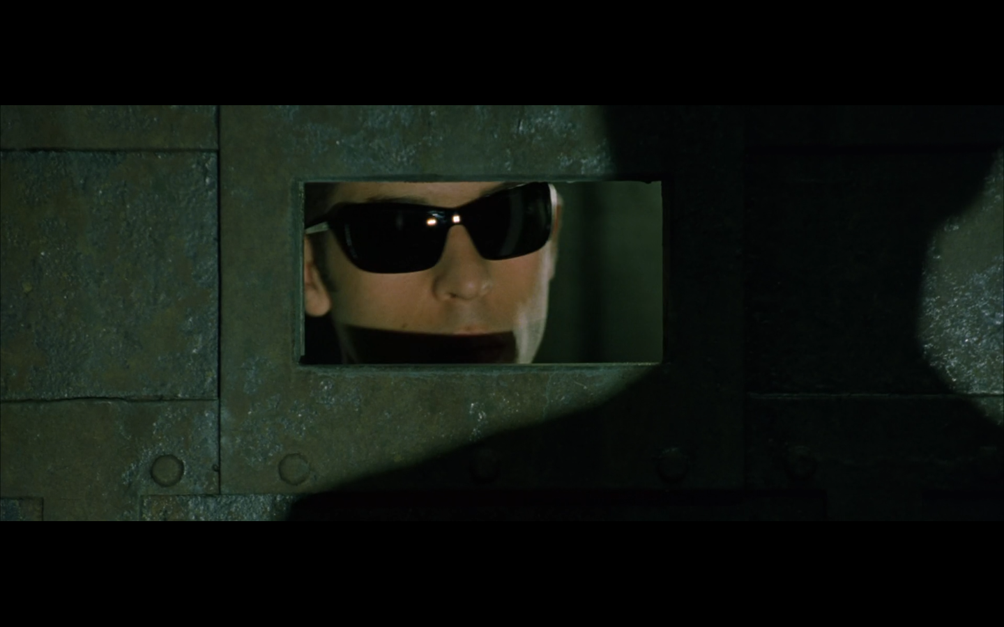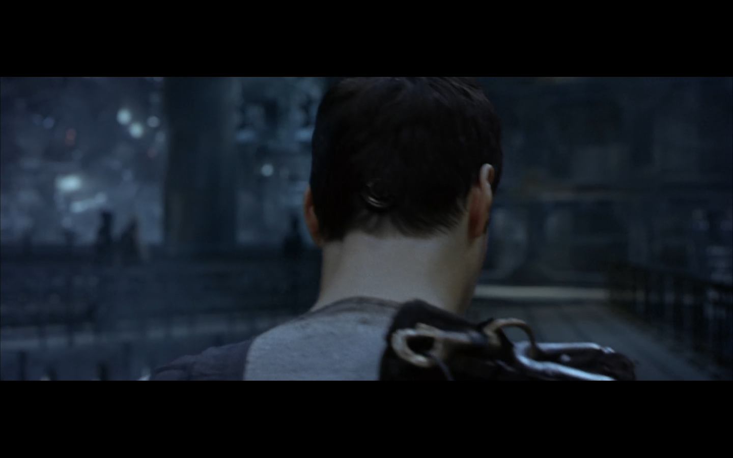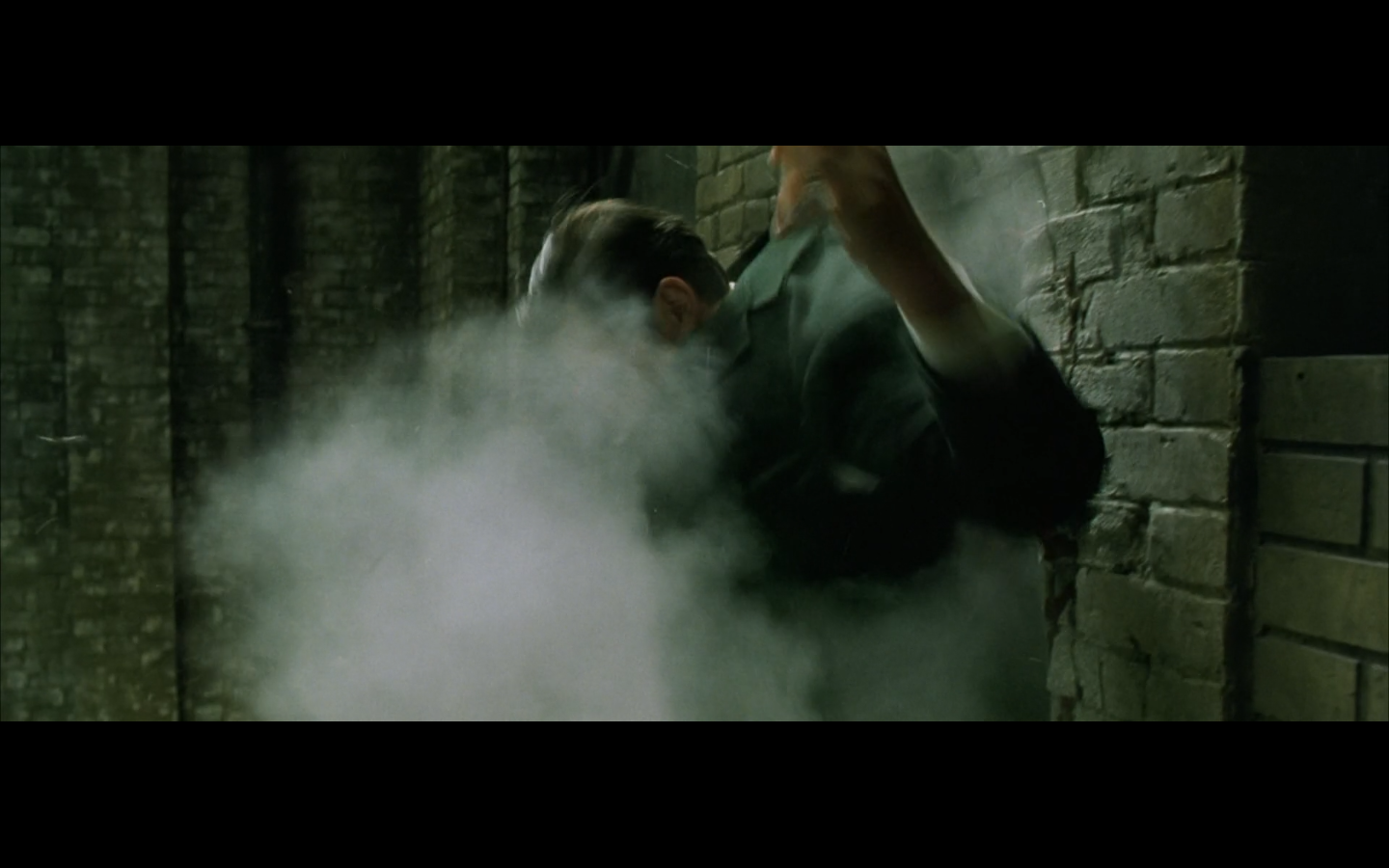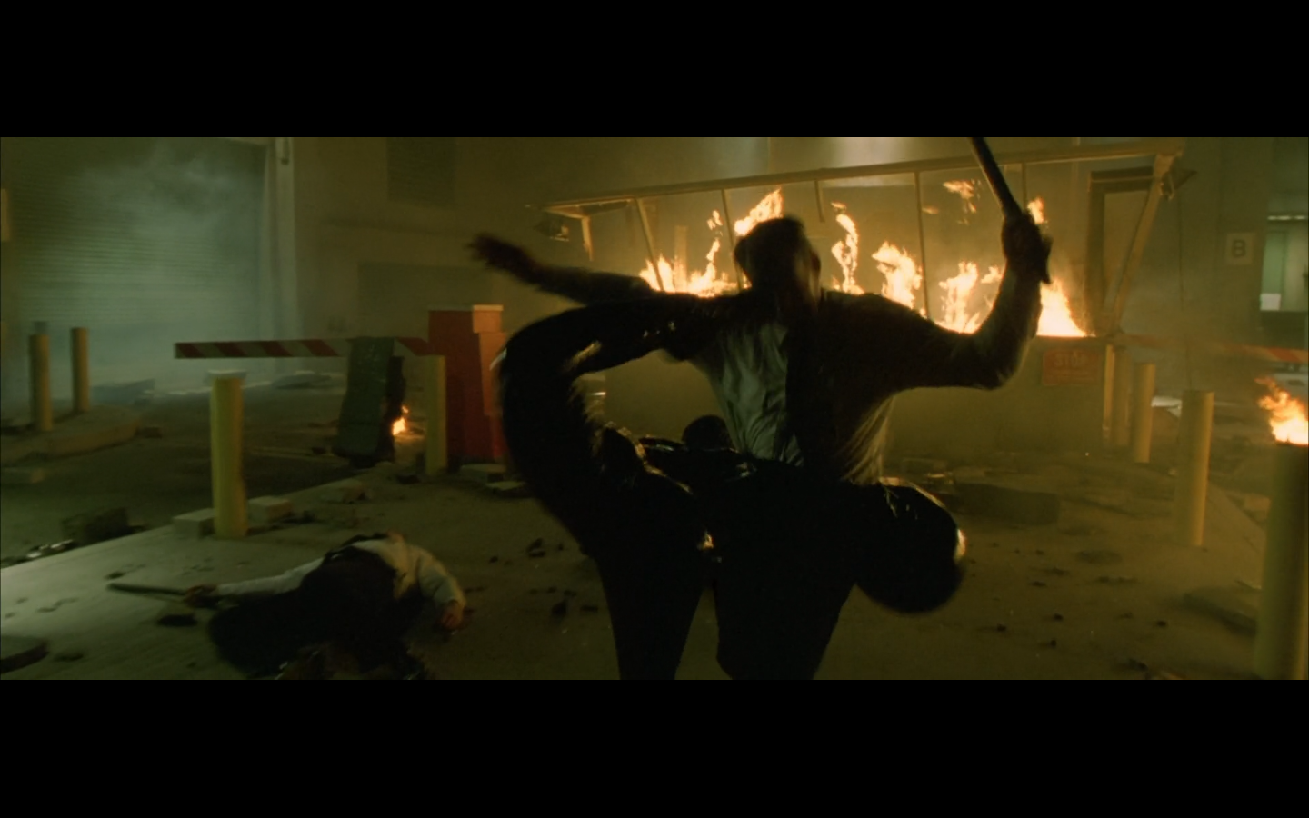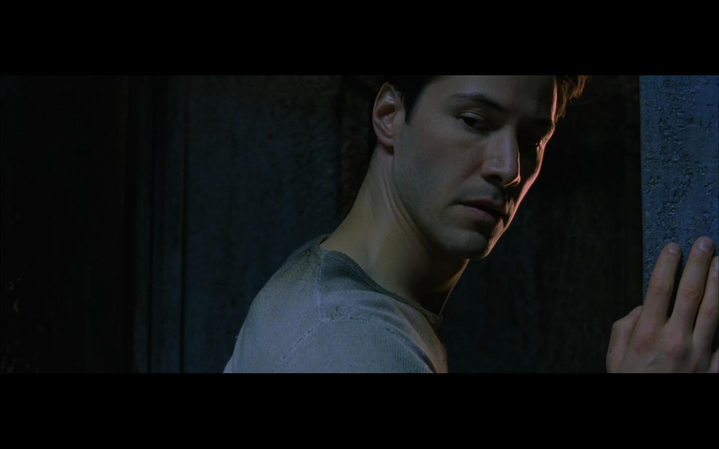 The typical “random civilian dude from the Matrix turns around in shock at some shit our protagonists do” shot.