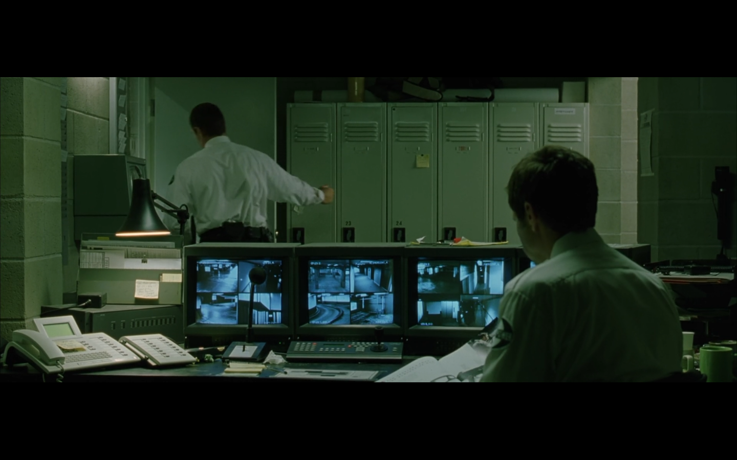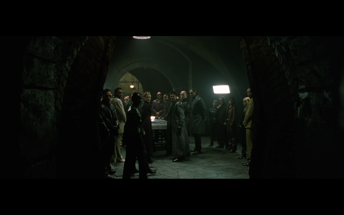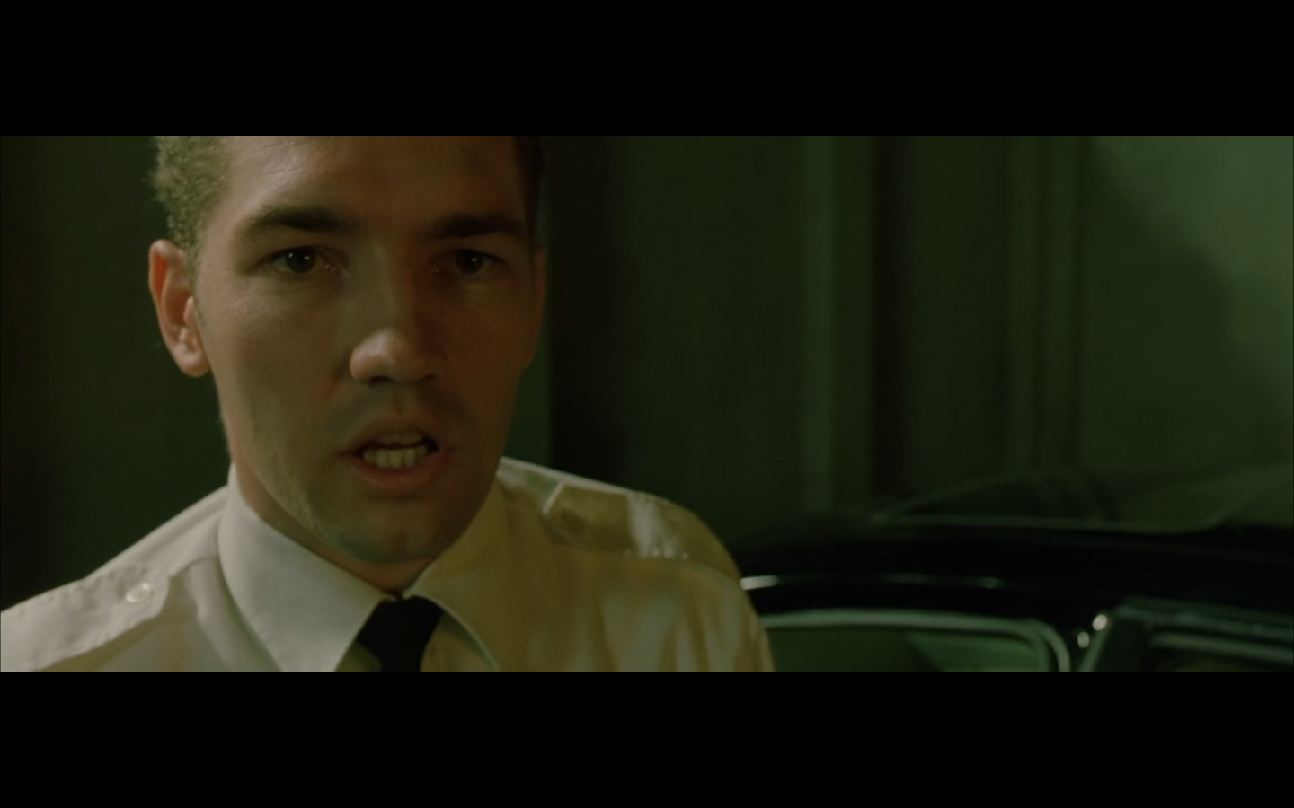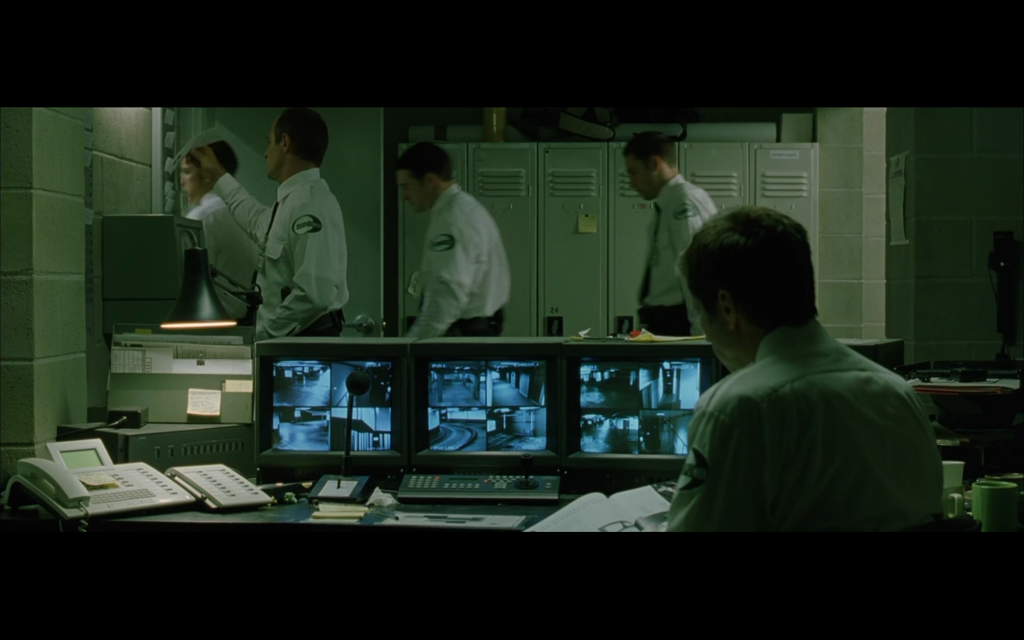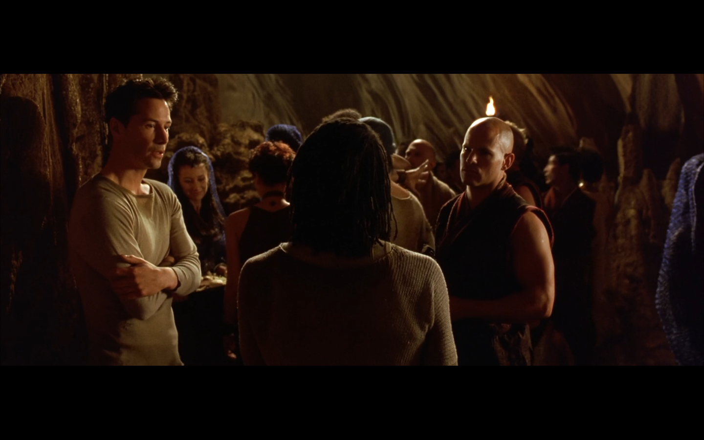 The typical “random civilian dude from the Matrix turns around in shock at some shit our protagonists do” shot.