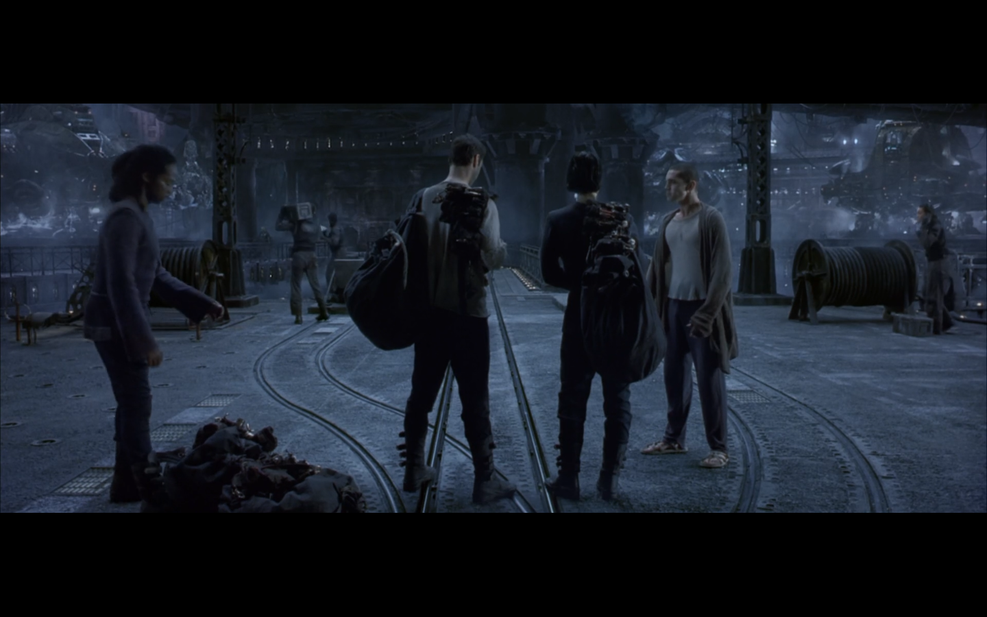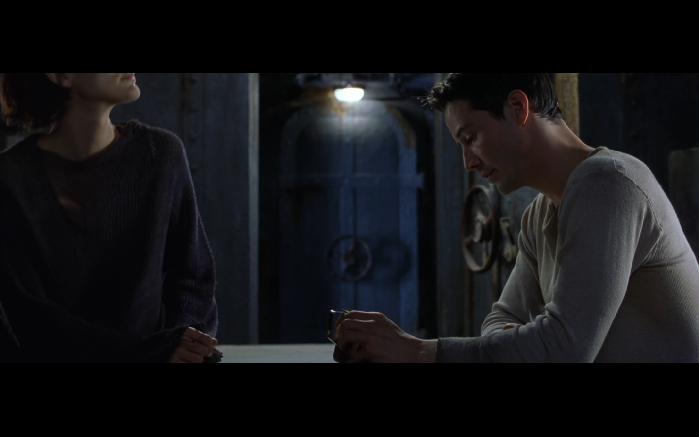 Which reminds me… is there birth control in the Real World? I’m assuming there’s no plug on his dick. (Since, how are the machines creating more humans to feed on? I assume there’s some sort of machine Pokemon Daycare situation, while the machines ride their bikes up and down Route 209 for 1,200 steps.) Is she knocked up for the rest of this franchise? That’ll be something to think about when she gets impaled through the chest later.