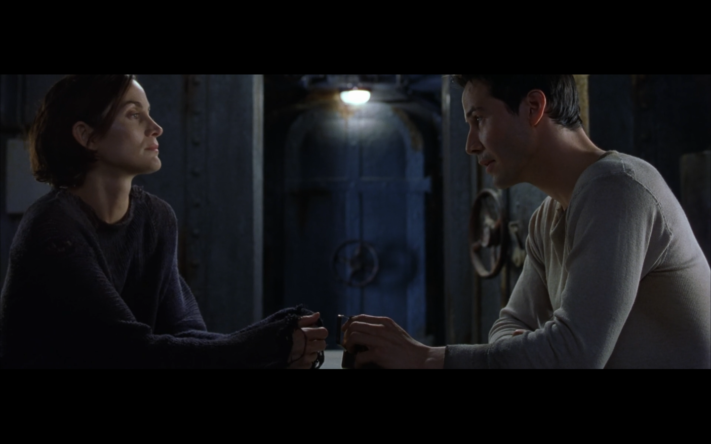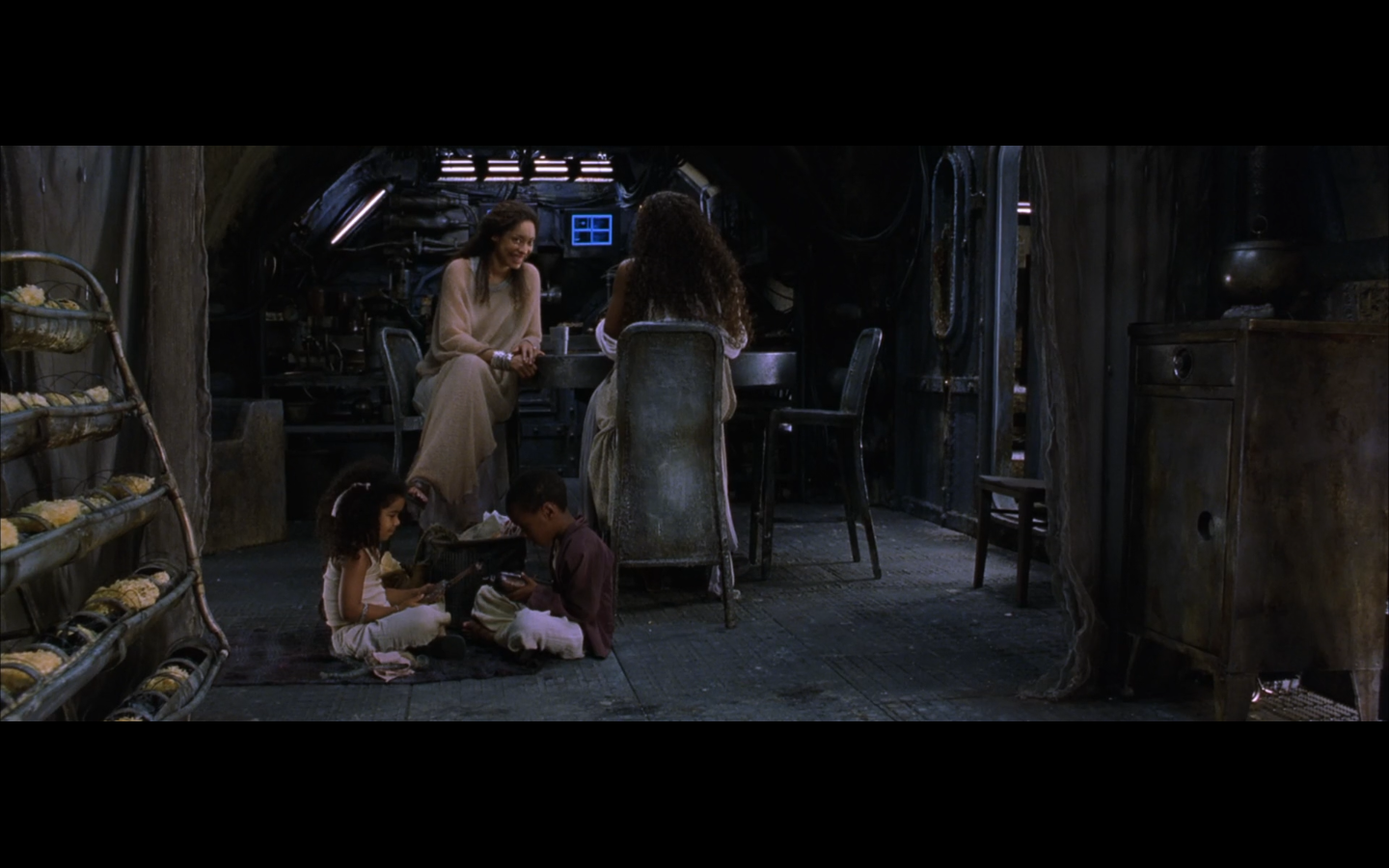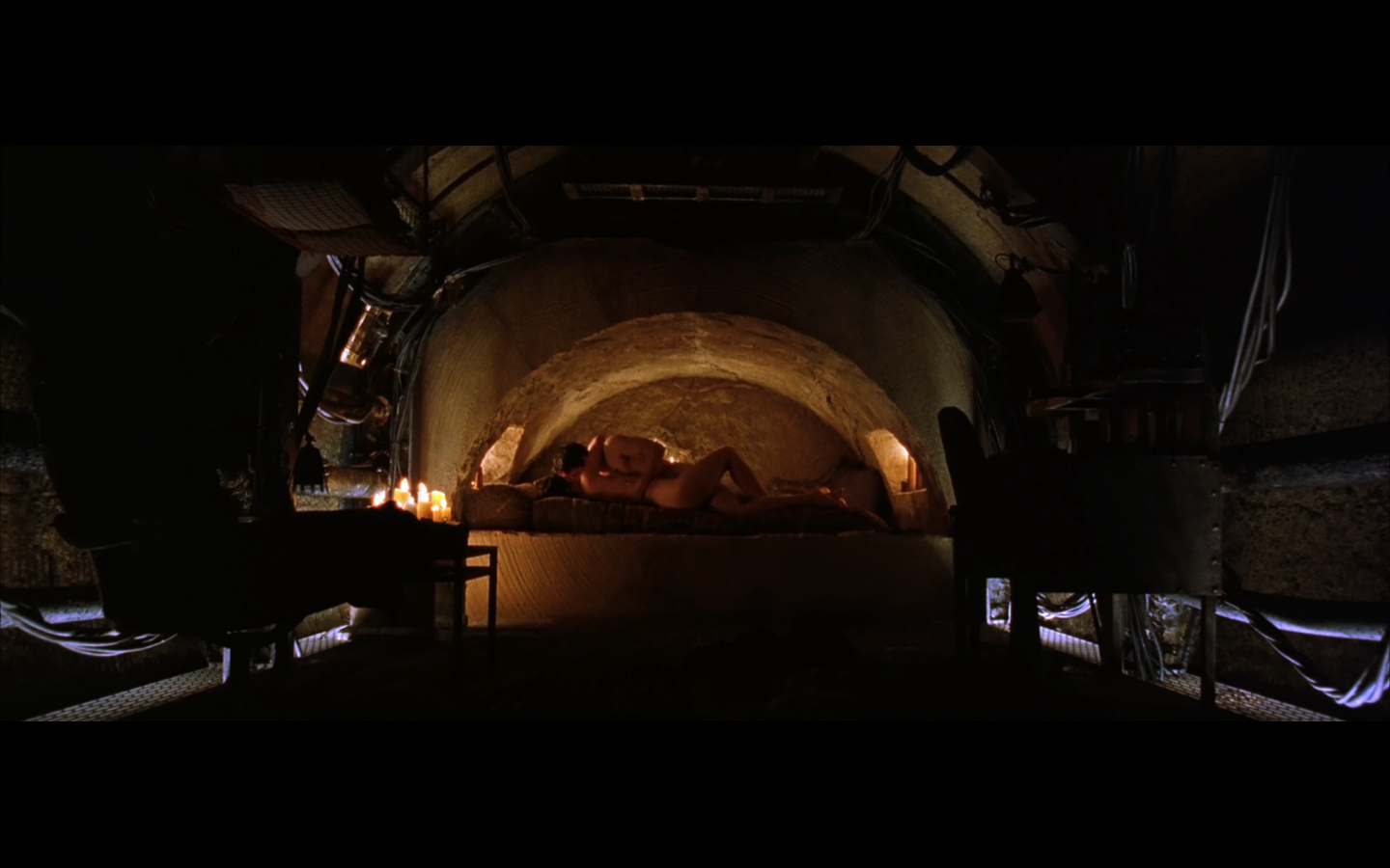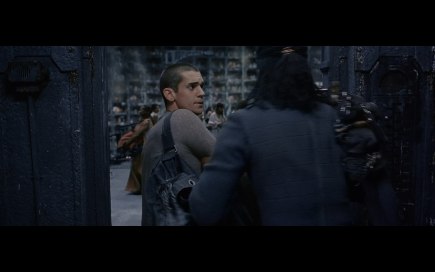 This is actually one of the few parts of this trilogy I actively want to skip over when it comes on. It has absolutely no purpose whatsoever. Any kind of symbolic or metaphorical meaning this scene is supposed to have is vastly outweighed by its length and lack of importance to the plot. “We’re still here, and we’re going to prove it. We’re not machines, so let’s dance.” Literally the only purpose. And they fuck during it. And they make it like the only reason they’re fucking is because everyone else is at this thing. Why not just go fuck anyway? Presumably you haven’t been able to. So just do it. Are there like eight people living in your apartment? Is this Soviet Russia?