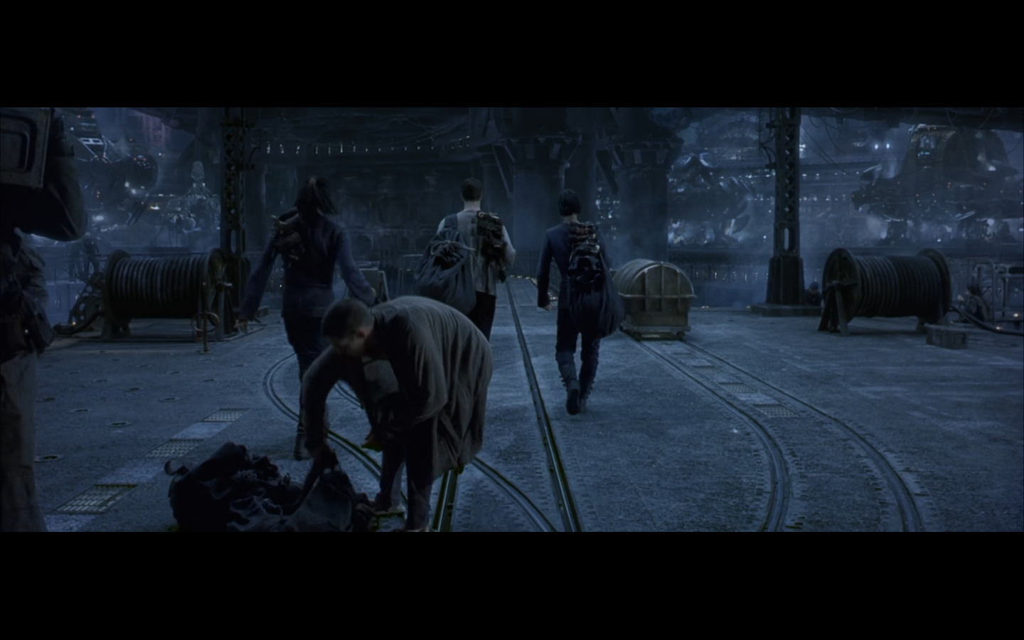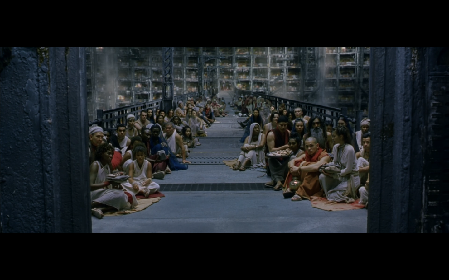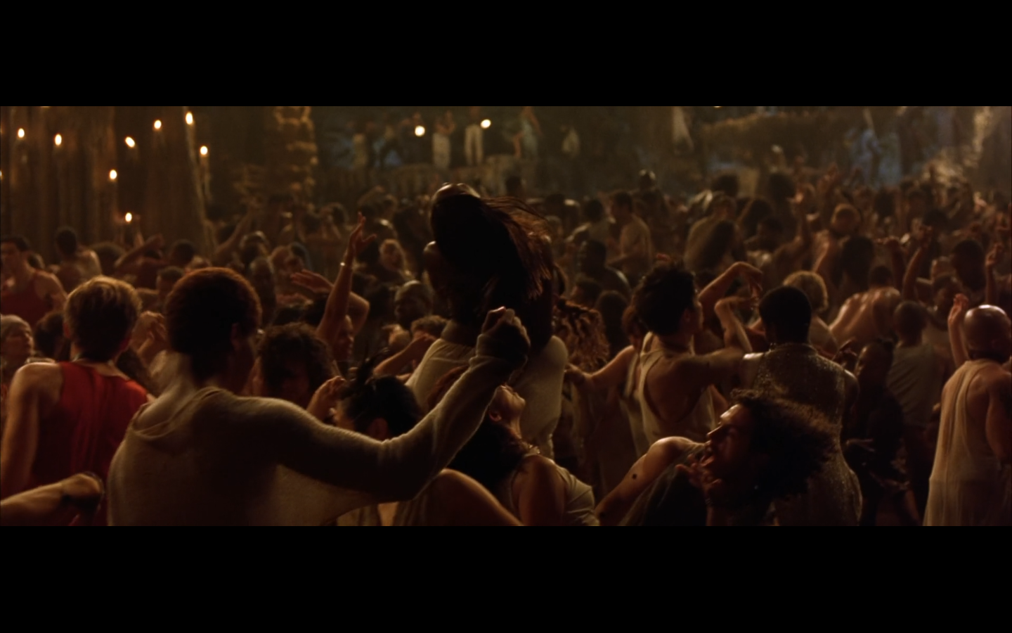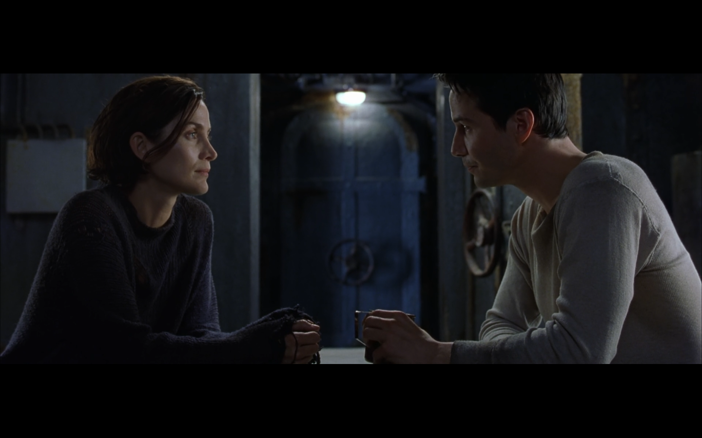 This is actually one of the few parts of this trilogy I actively want to skip over when it comes on. It has absolutely no purpose whatsoever. Any kind of symbolic or metaphorical meaning this scene is supposed to have is vastly outweighed by its length and lack of importance to the plot. “We’re still here, and we’re going to prove it. We’re not machines, so let’s dance.” Literally the only purpose. And they fuck during it. And they make it like the only reason they’re fucking is because everyone else is at this thing. Why not just go fuck anyway? Presumably you haven’t been able to. So just do it. Are there like eight people living in your apartment? Is this Soviet Russia?