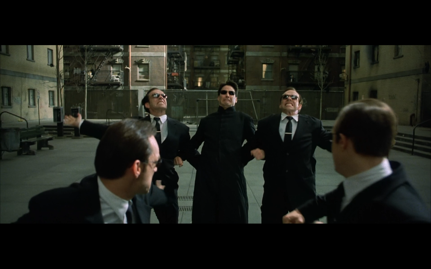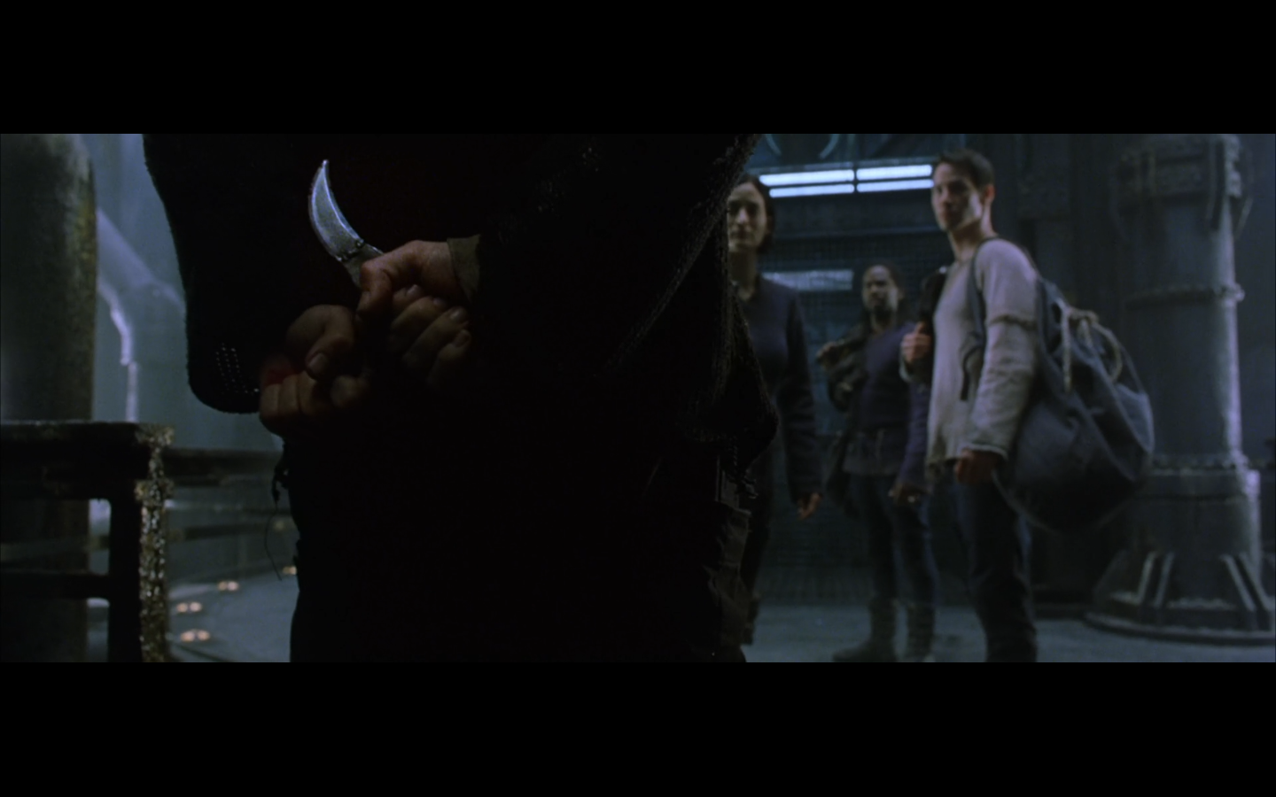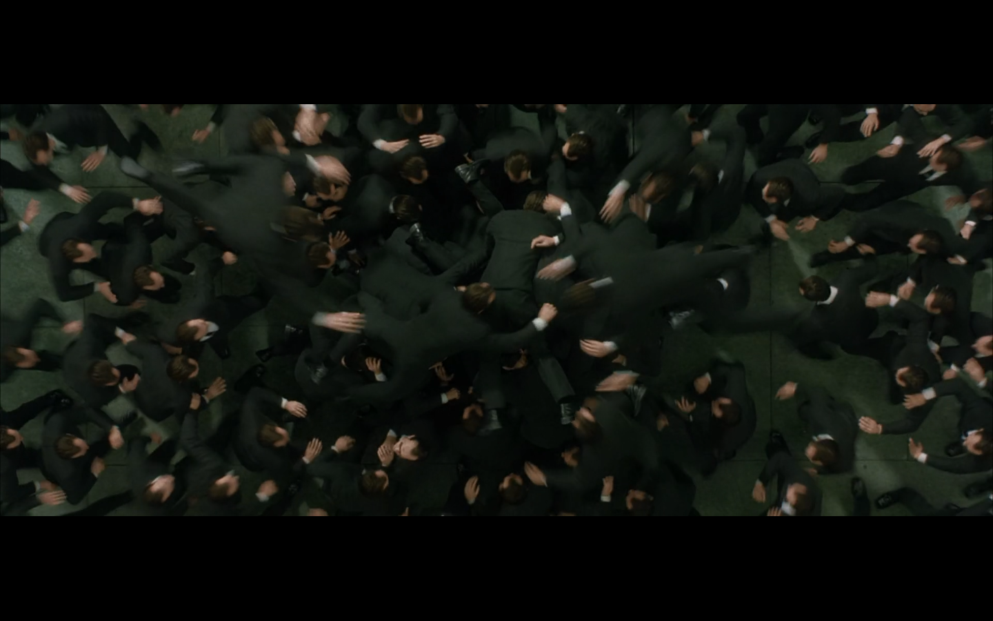 My real question, from a storytelling perspective — wouldn’t this be a better thing to do at the end of the film? Think about it: Smith is alive. That’s your big act one reveal. Act II, he shows up and presents himself to Neo. They fight. We find out he can assimilate people. He is growing inside the Matrix. This is dangerous. Then, at the end, he manages to get inside the Matrix? That’s a cliffhanger. None of that coma bullshit. Or, if you want the coma. He gets inside the Matrix, that’s dangerous. He tries to sabotage one of the ships. The ship goes down. Then you realize he survived and no one else did. So that way all the witnesses are gone. It’s just really poor storytelling with this. Because now Smith is inside the Matrix for almost an entire film and does nothing except cut himself and be all menacing.