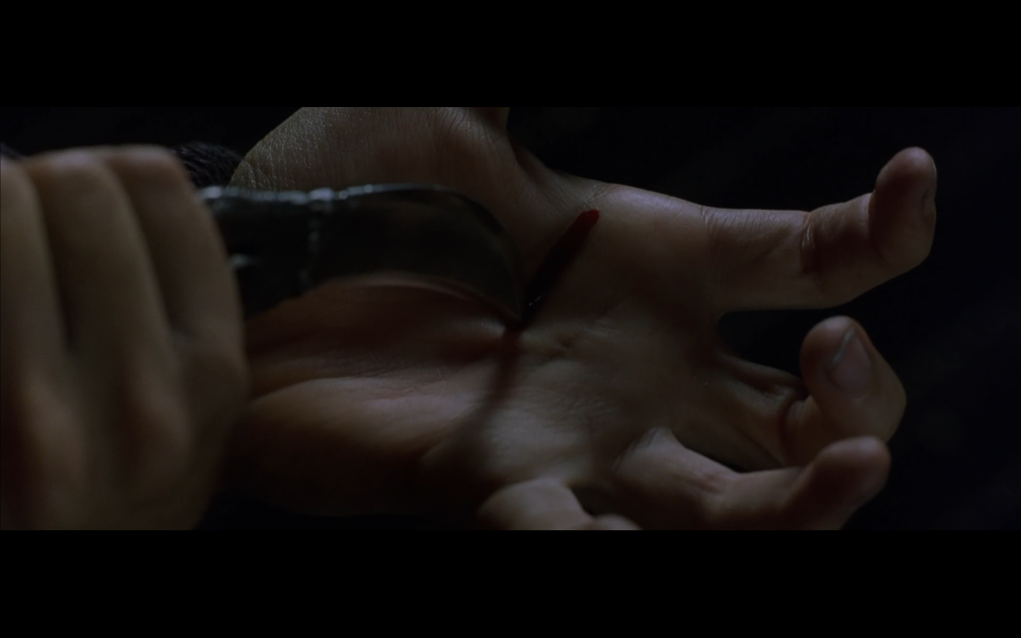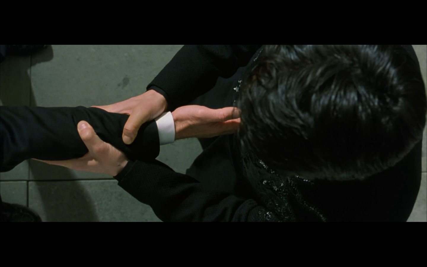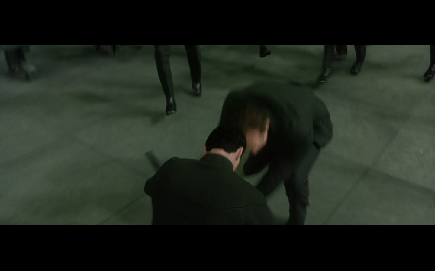 My real question, from a storytelling perspective — wouldn’t this be a better thing to do at the end of the film? Think about it: Smith is alive. That’s your big act one reveal. Act II, he shows up and presents himself to Neo. They fight. We find out he can assimilate people. He is growing inside the Matrix. This is dangerous. Then, at the end, he manages to get inside the Matrix? That’s a cliffhanger. None of that coma bullshit. Or, if you want the coma. He gets inside the Matrix, that’s dangerous. He tries to sabotage one of the ships. The ship goes down. Then you realize he survived and no one else did. So that way all the witnesses are gone. It’s just really poor storytelling with this. Because now Smith is inside the Matrix for almost an entire film and does nothing except cut himself and be all menacing.