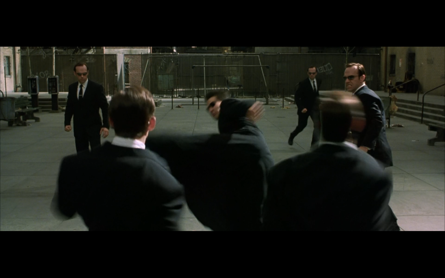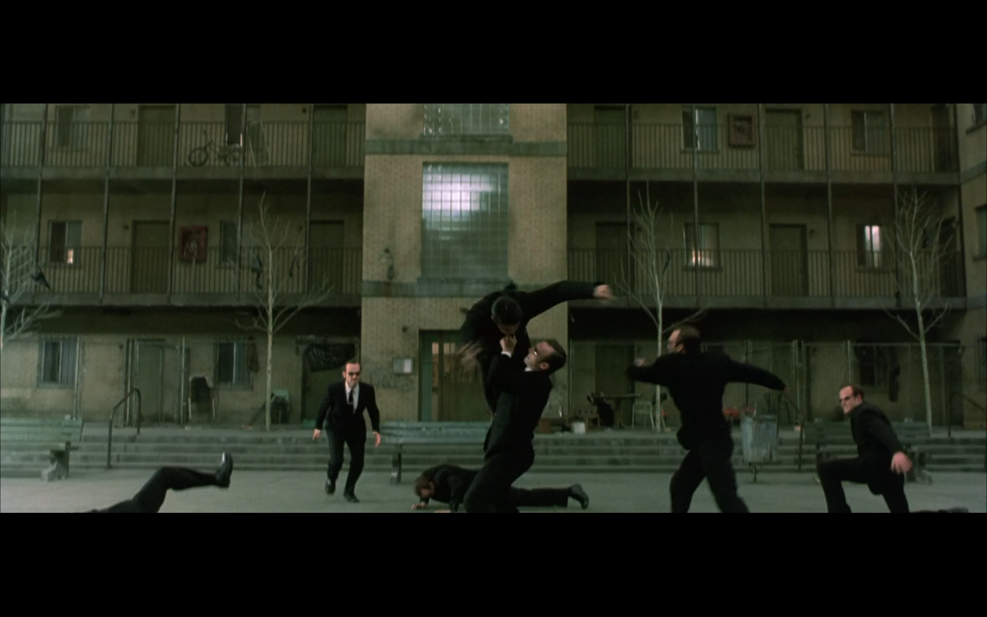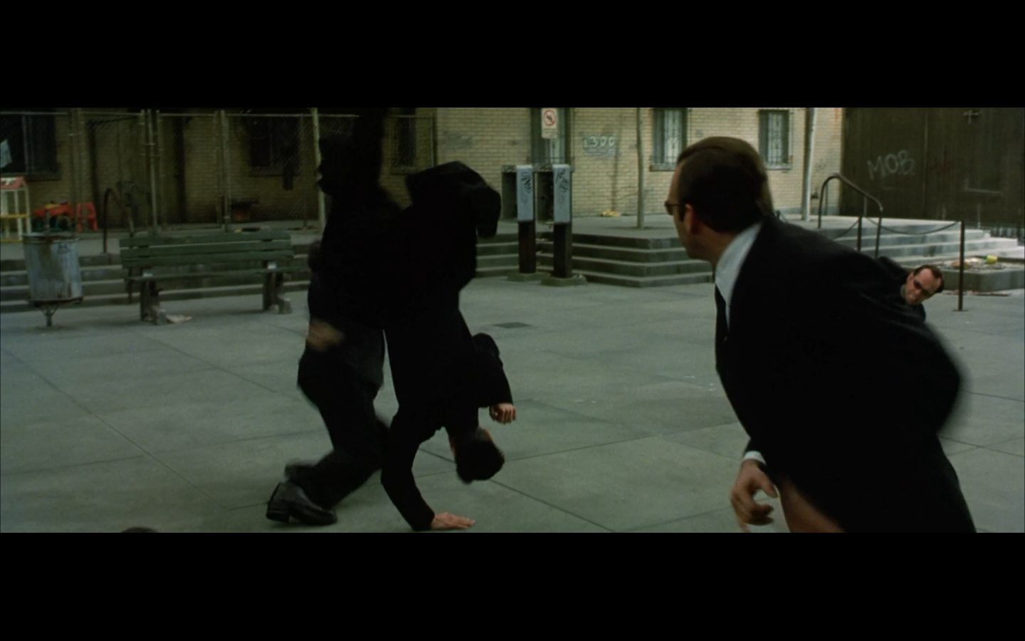 Smith works better as a malevolent presence who can show up anywhere, and then when he gets inside the real world, there’s suspense. Now, he’s just hanging around in the real world, not doing anything, not gleaming information, not even getting more Smiths inside. The Wachowskis have this thing where they come up with good ideas and then have trouble finding the best way to put forth those ideas.
