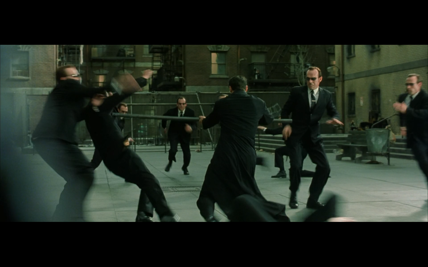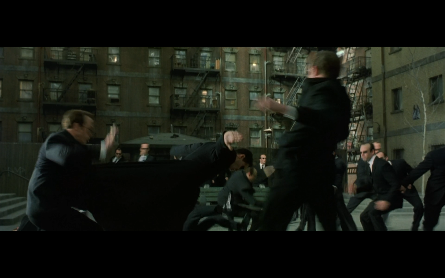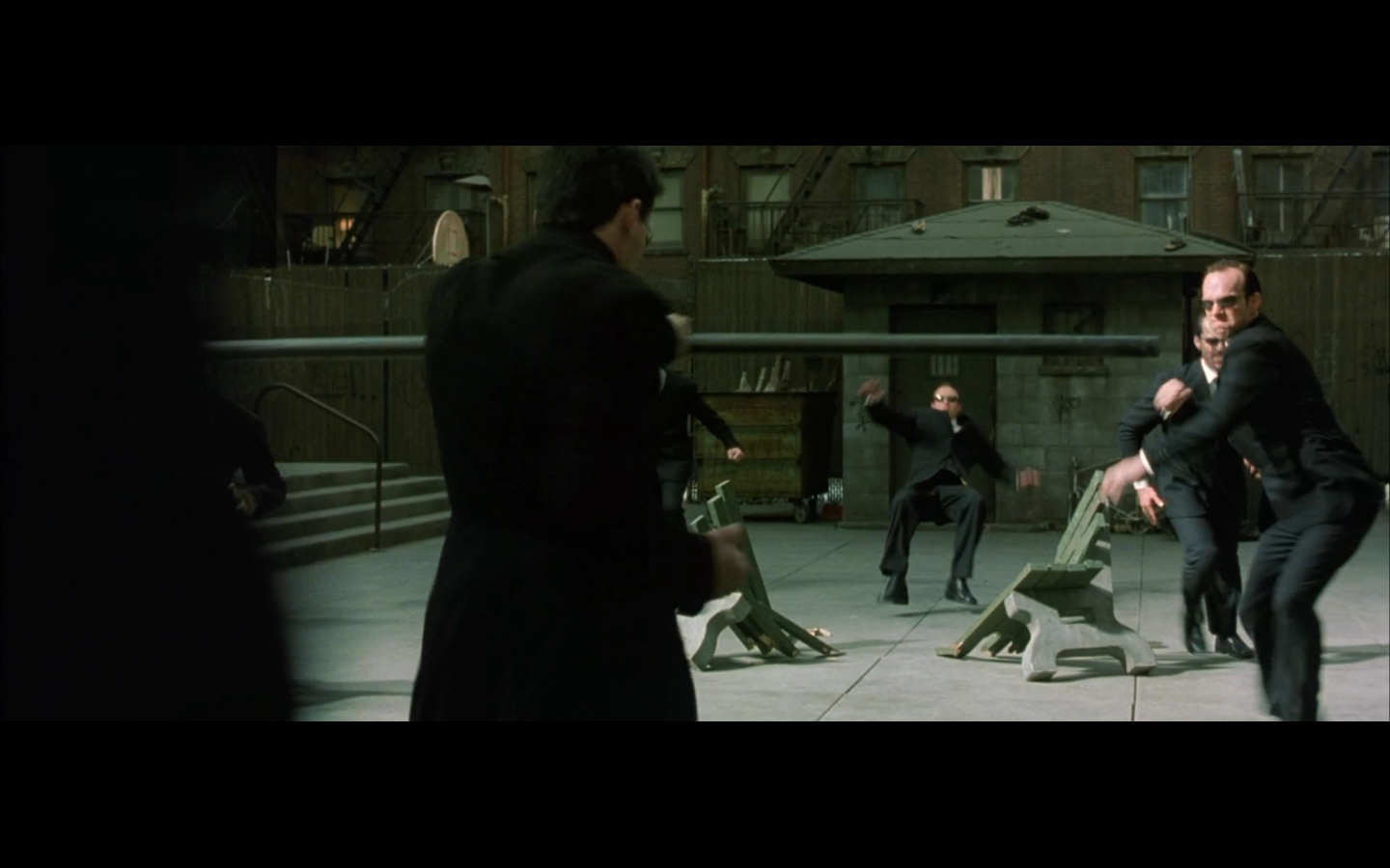 Smith works better as a malevolent presence who can show up anywhere, and then when he gets inside the real world, there’s suspense. Now, he’s just hanging around in the real world, not doing anything, not gleaming information, not even getting more Smiths inside. The Wachowskis have this thing where they come up with good ideas and then have trouble finding the best way to put forth those ideas.