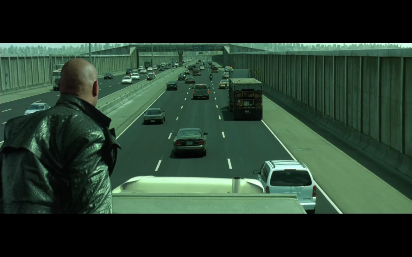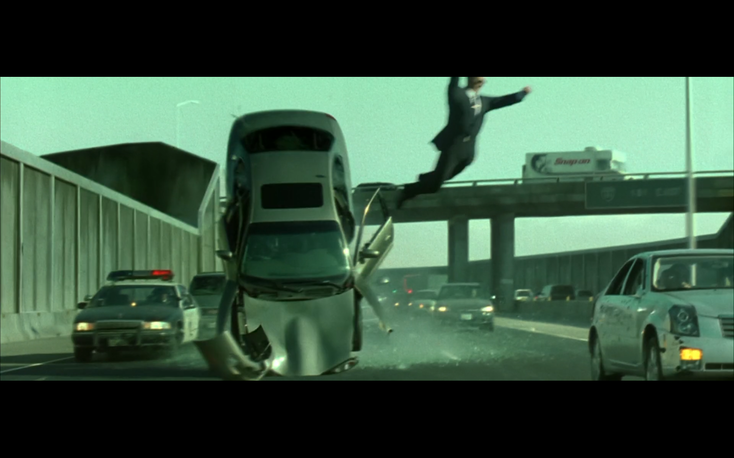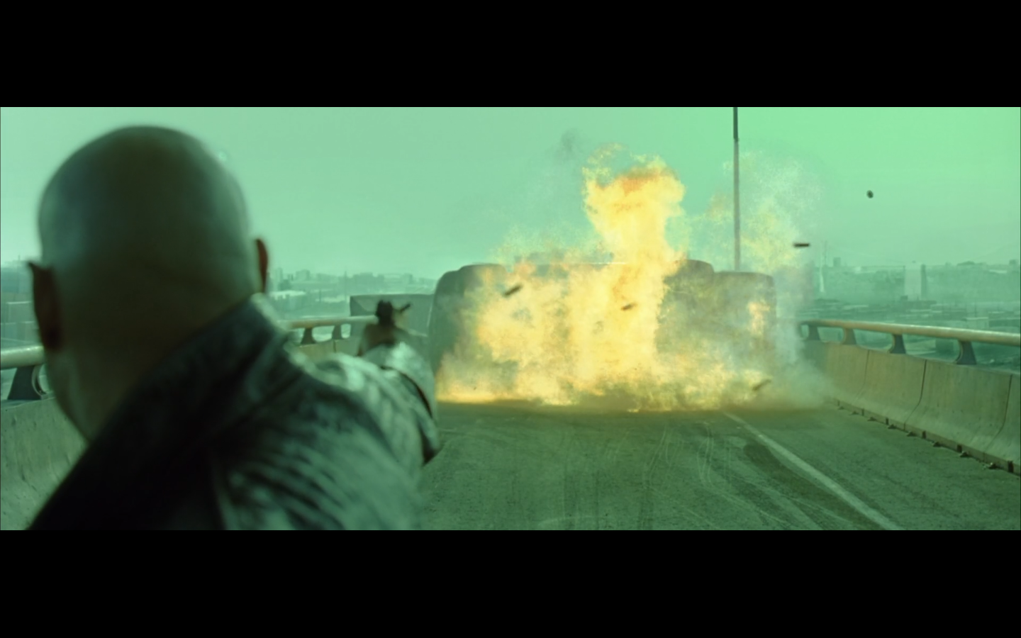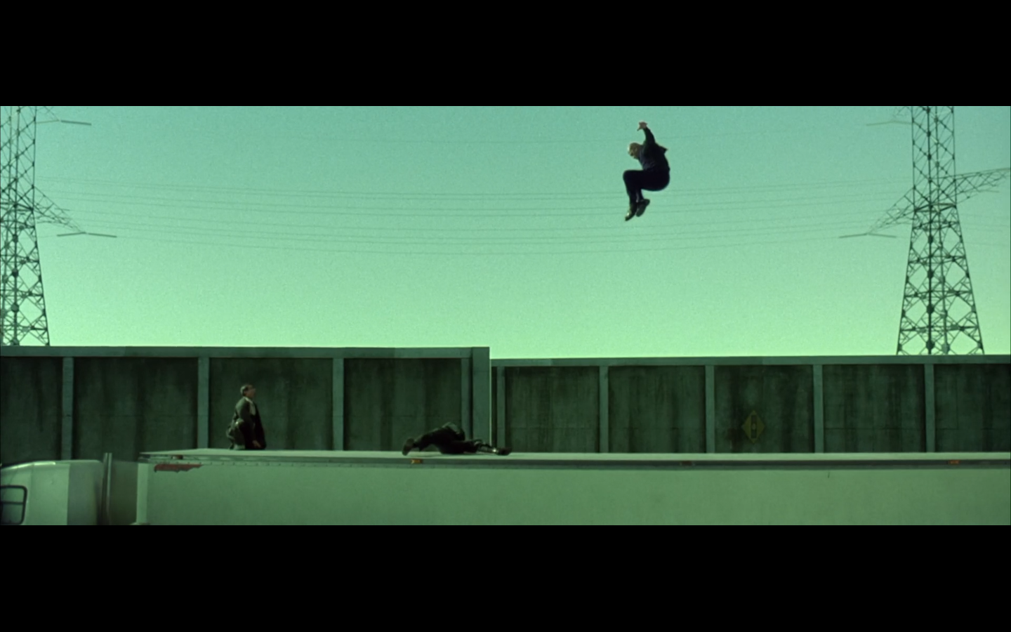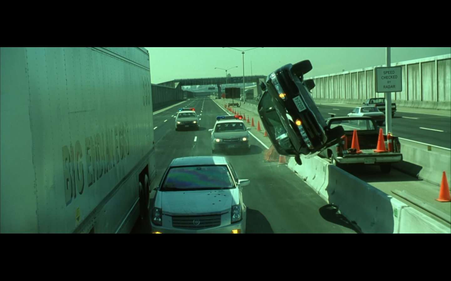 This is funny to me, cause where are you going? They’re on the top of a moving semi, and Morpheus is still like, “I’m parked over by the commissary.”