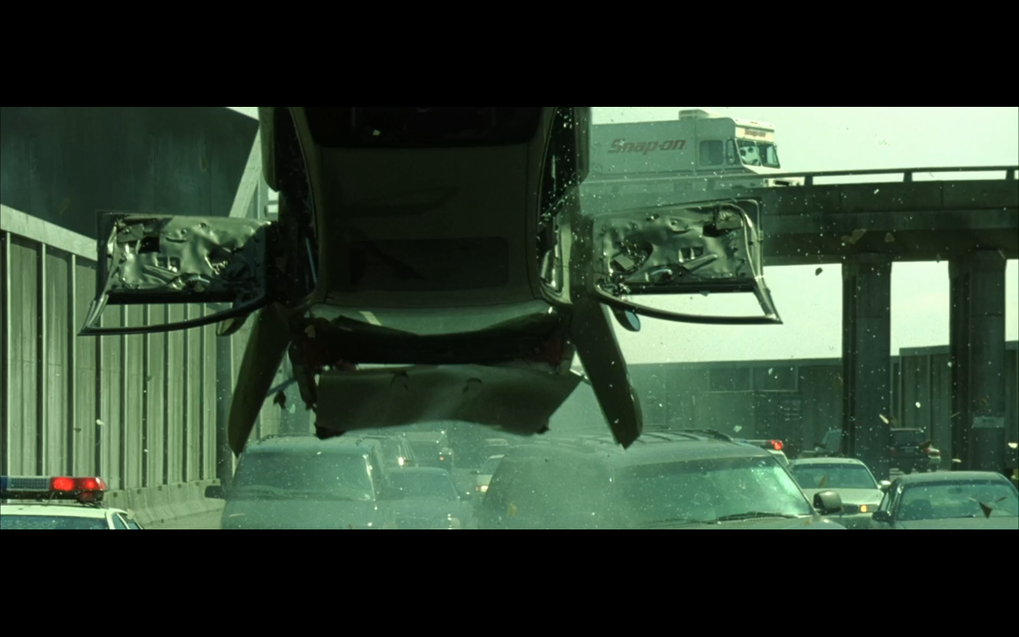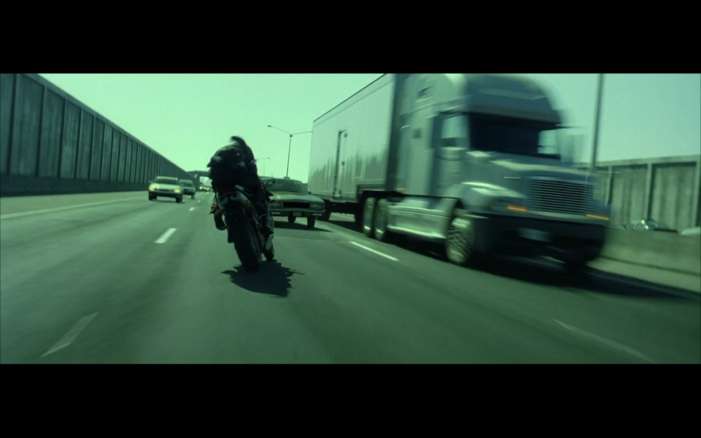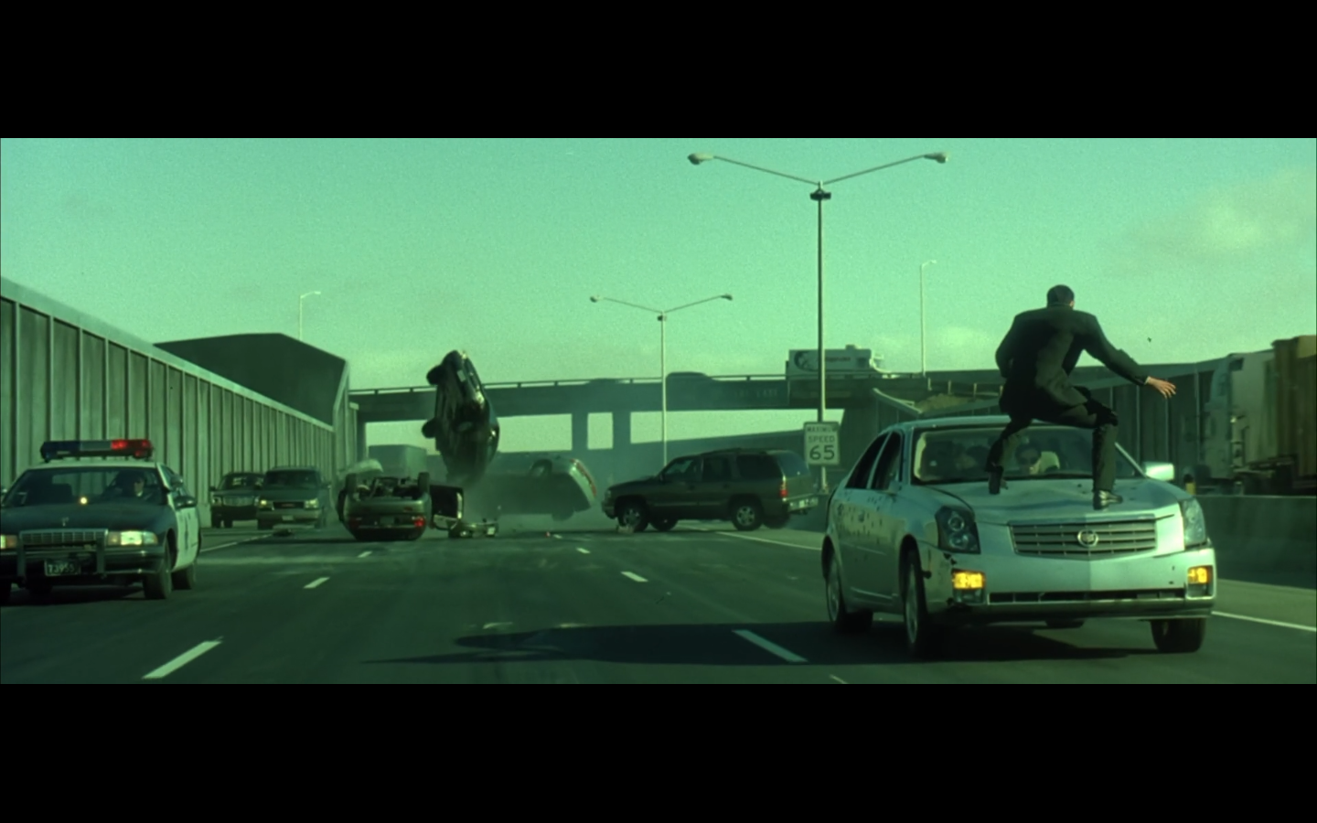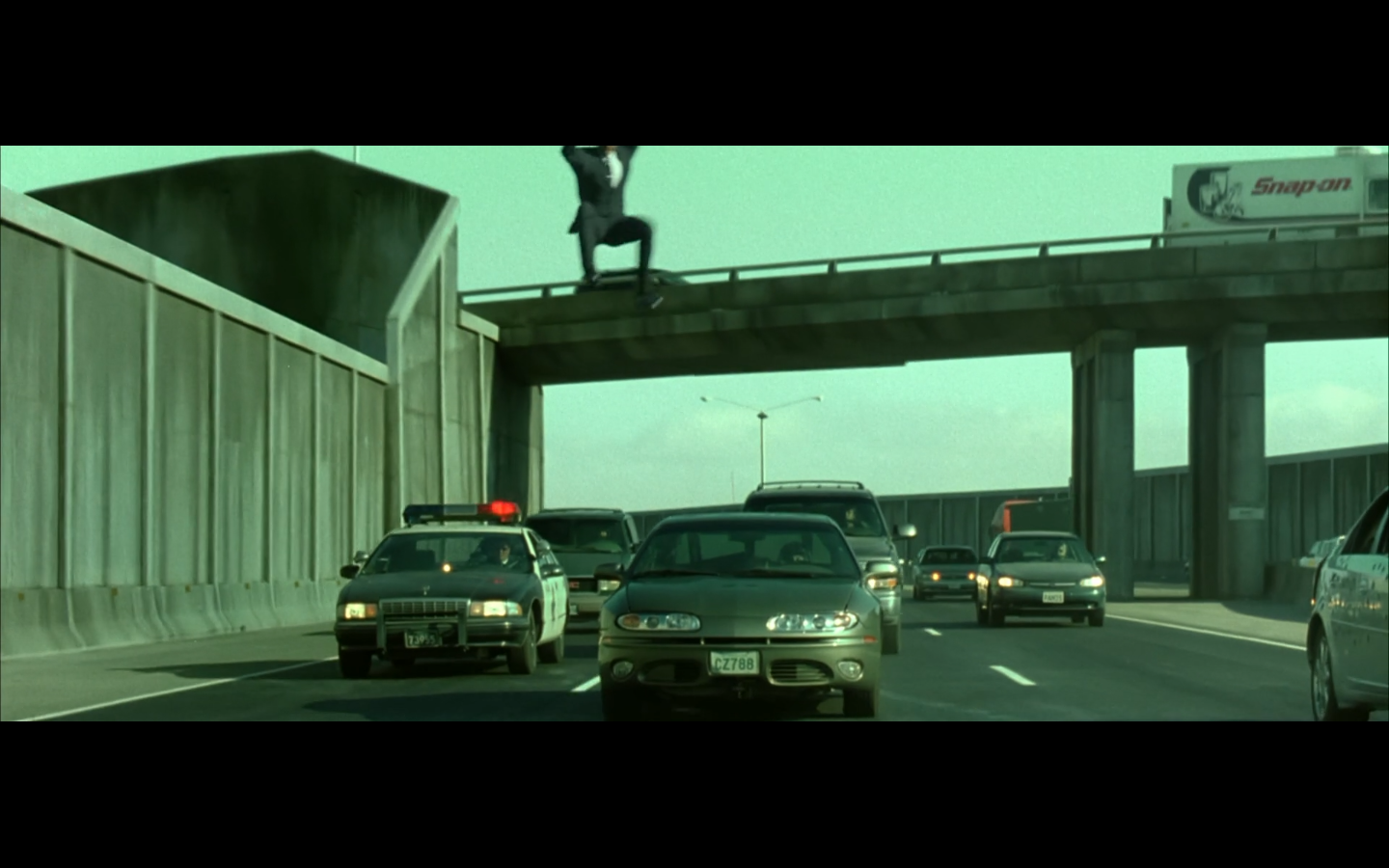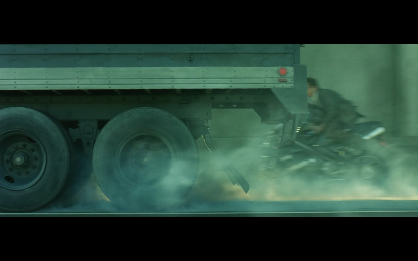 This is funny to me, cause where are you going? They’re on the top of a moving semi, and Morpheus is still like, “I’m parked over by the commissary.”