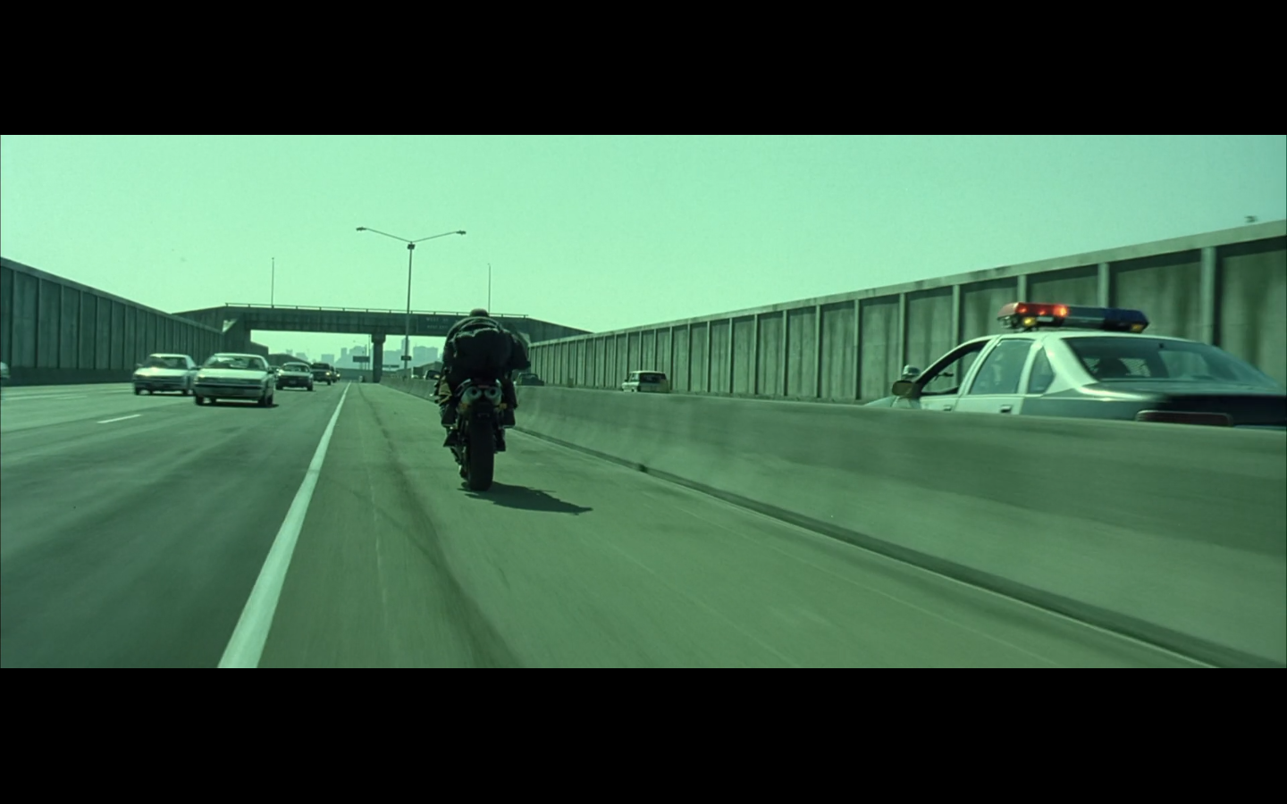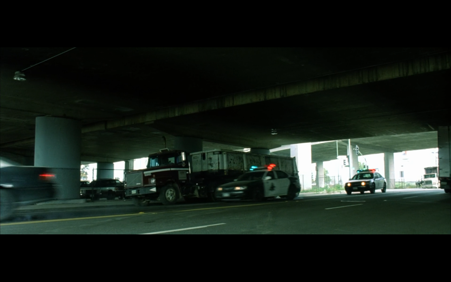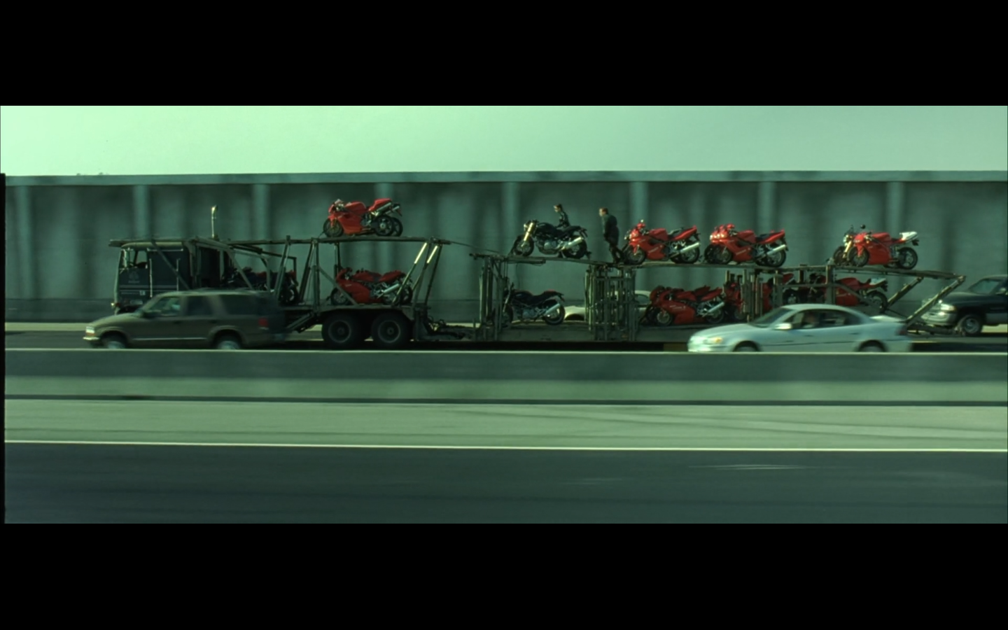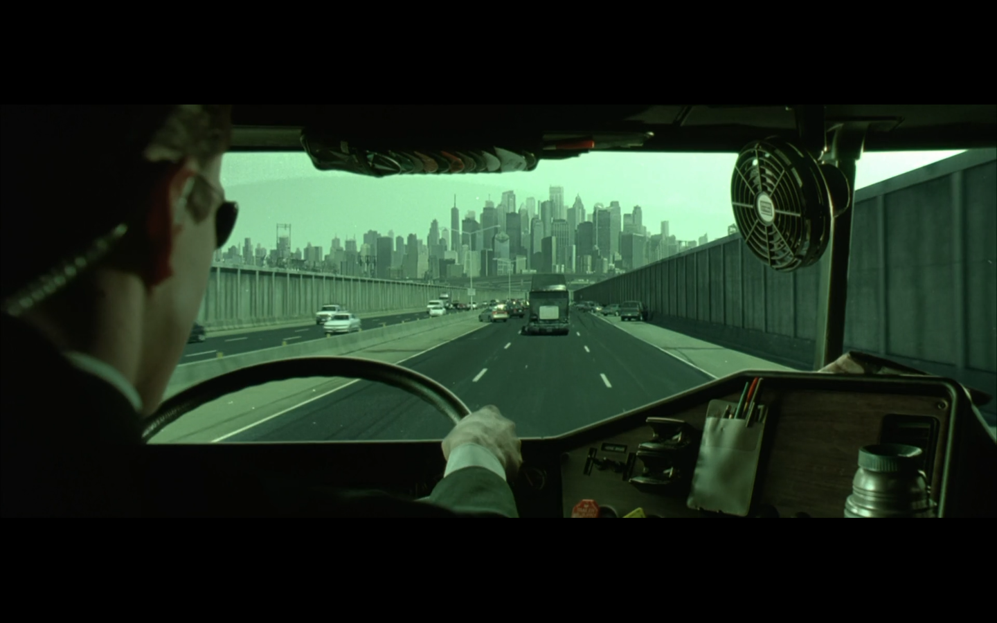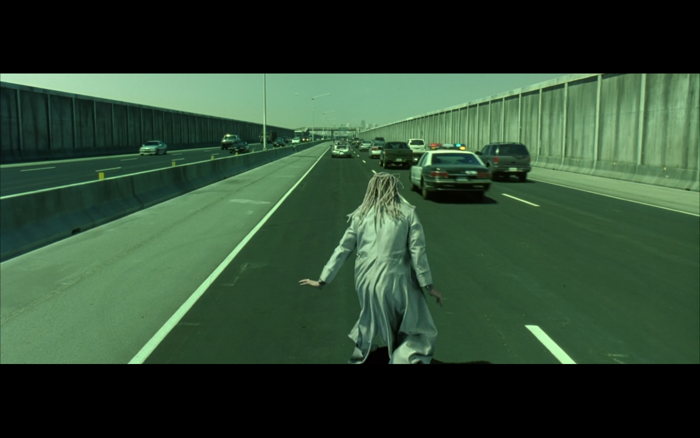 This is funny to me, cause where are you going? They’re on the top of a moving semi, and Morpheus is still like, “I’m parked over by the commissary.”