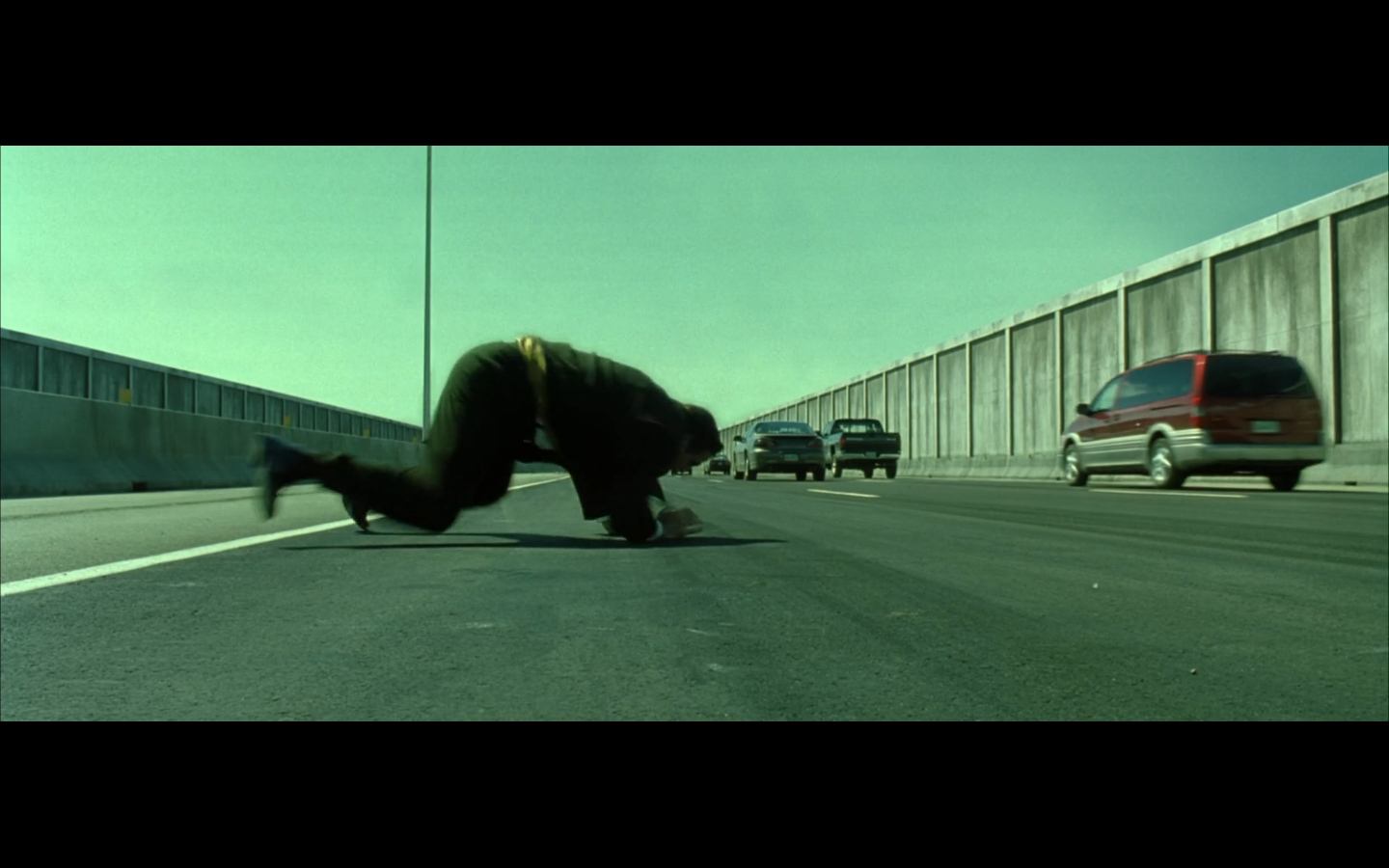 Why wouldn’t you just knock him across, grab the Keymaker and jump? Why go after him?