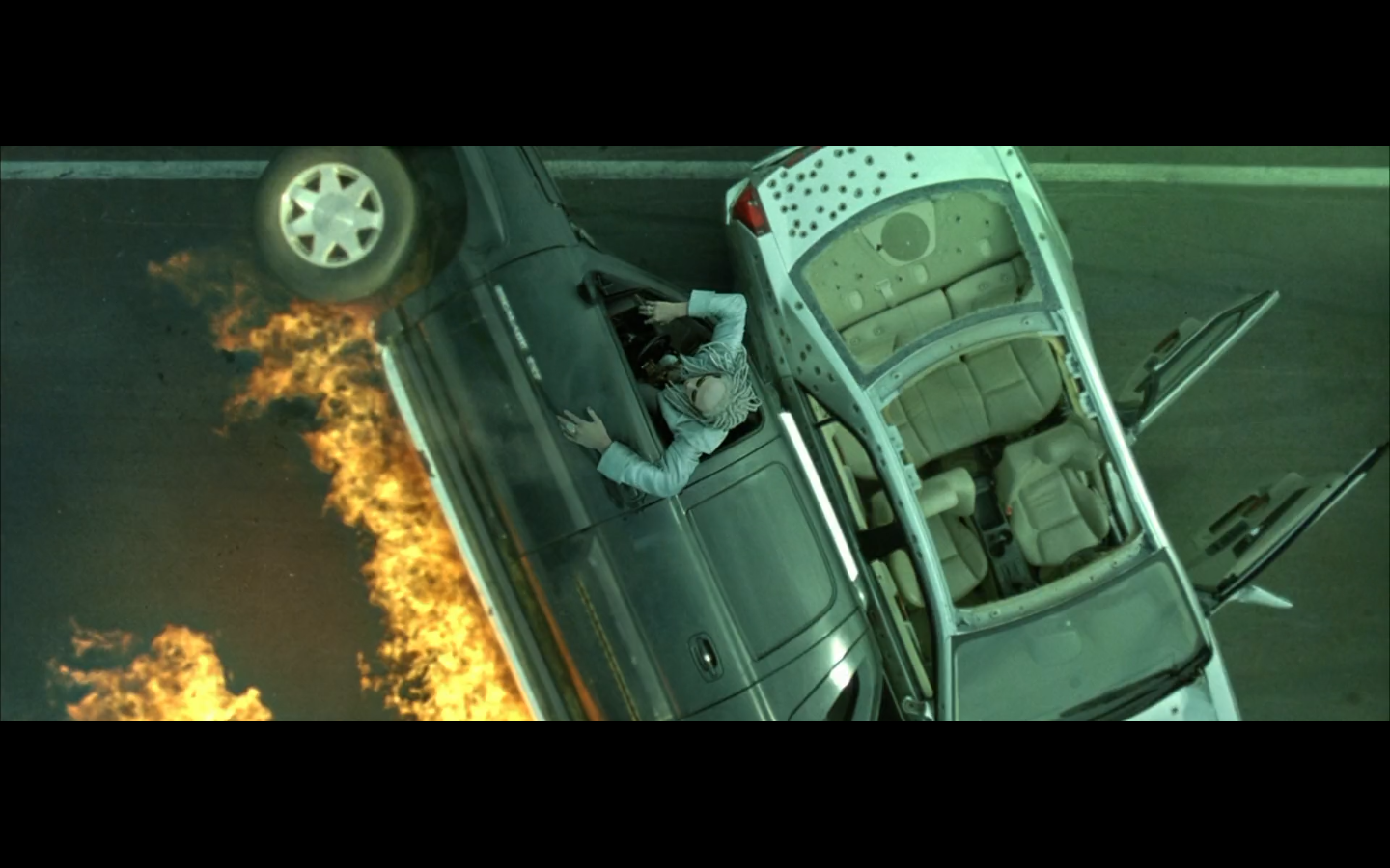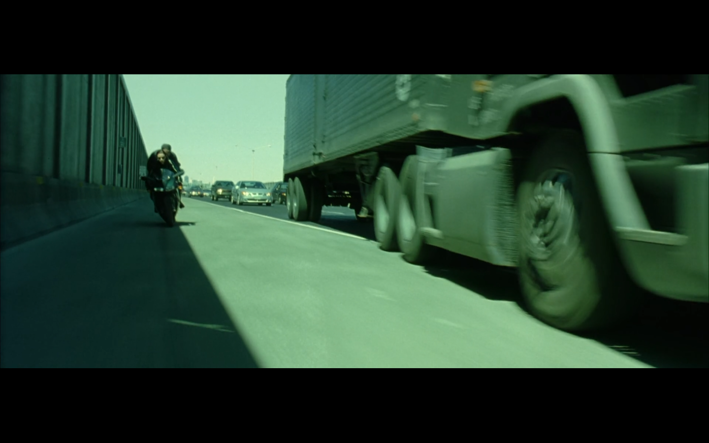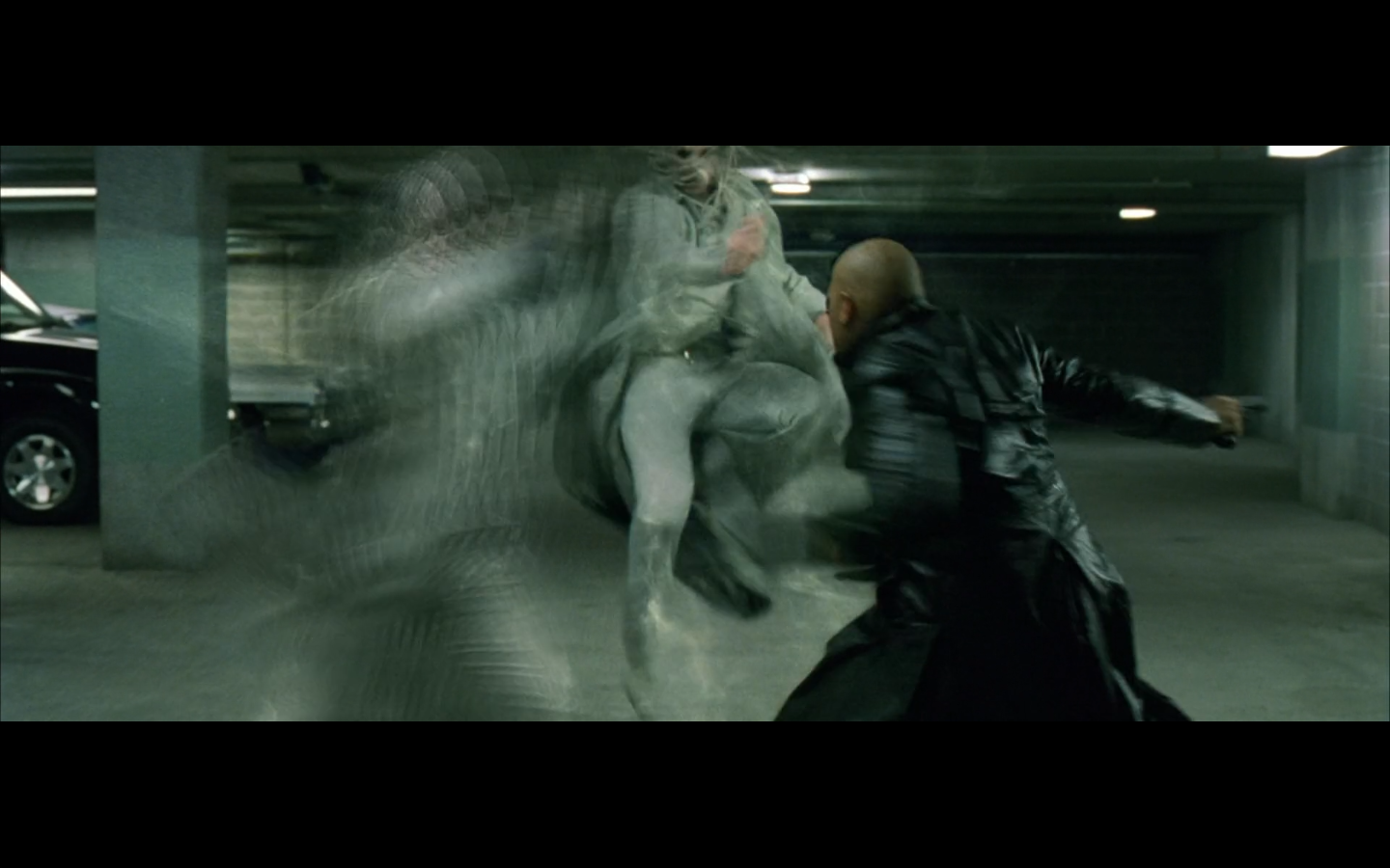She’s good? She drove a car behind a truck. Morpheus just fought an agent on top of a moving tractor trailer.
