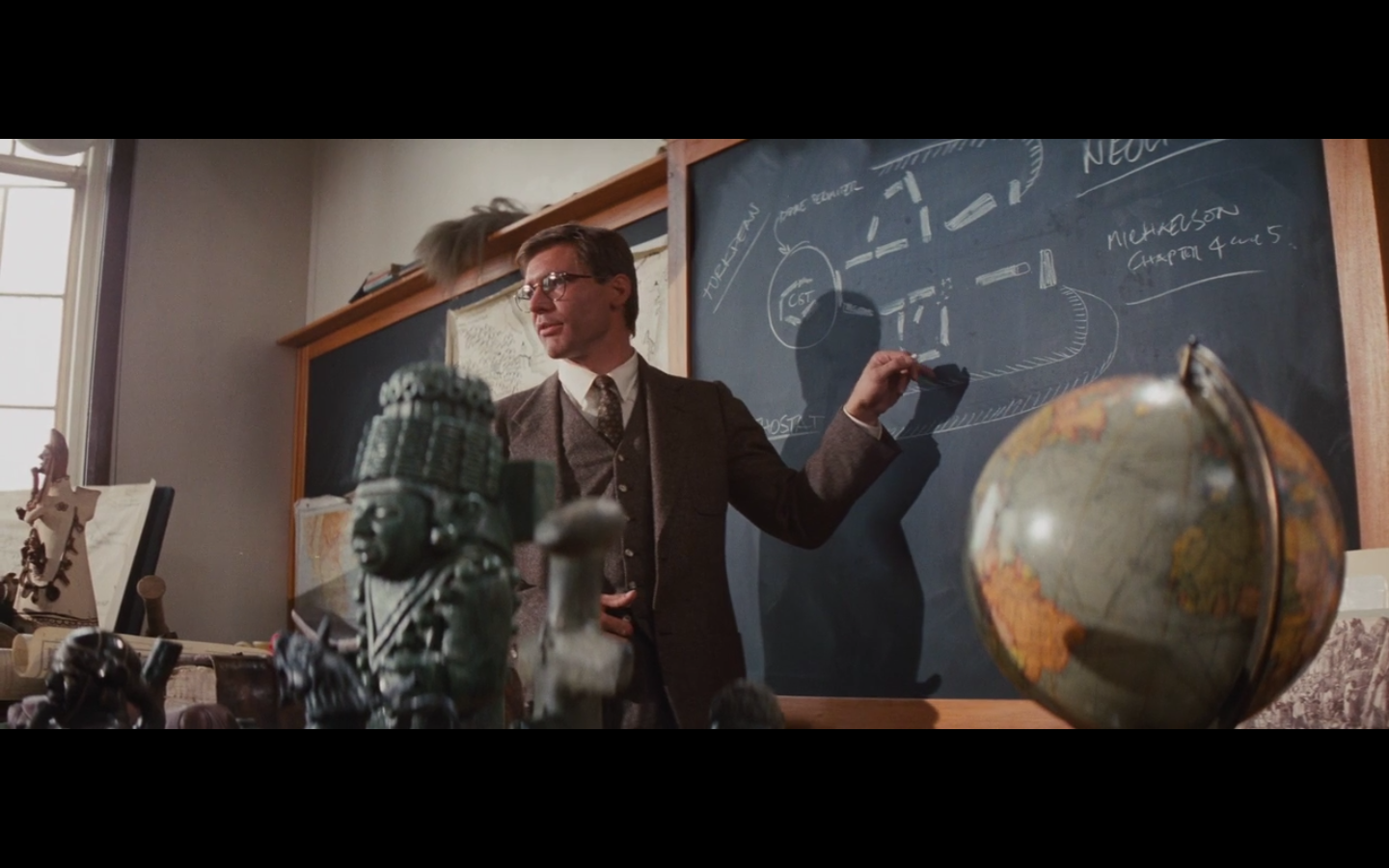 I think about the fact that Indiana Jones the character probably dies before Harrison Ford has a film career.