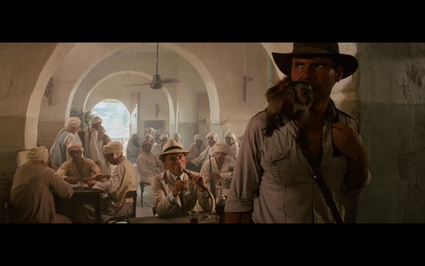 Can we talk about how bizarre that was? He’s drinking outside this bar, and some Nazis come up like, “Come with us,” and he follows them. And they bring him inside the bar and just leave him there. And then he looks around, somehow not seeing Belloq behind him, and Belloq, who is smoking hashish, has to say something to get him to turn around. What is going on? The big showdown between hero archaeologist and antagonist archaeologist happens in a bar when one is drunk and one is high. This movie is famous, guys.