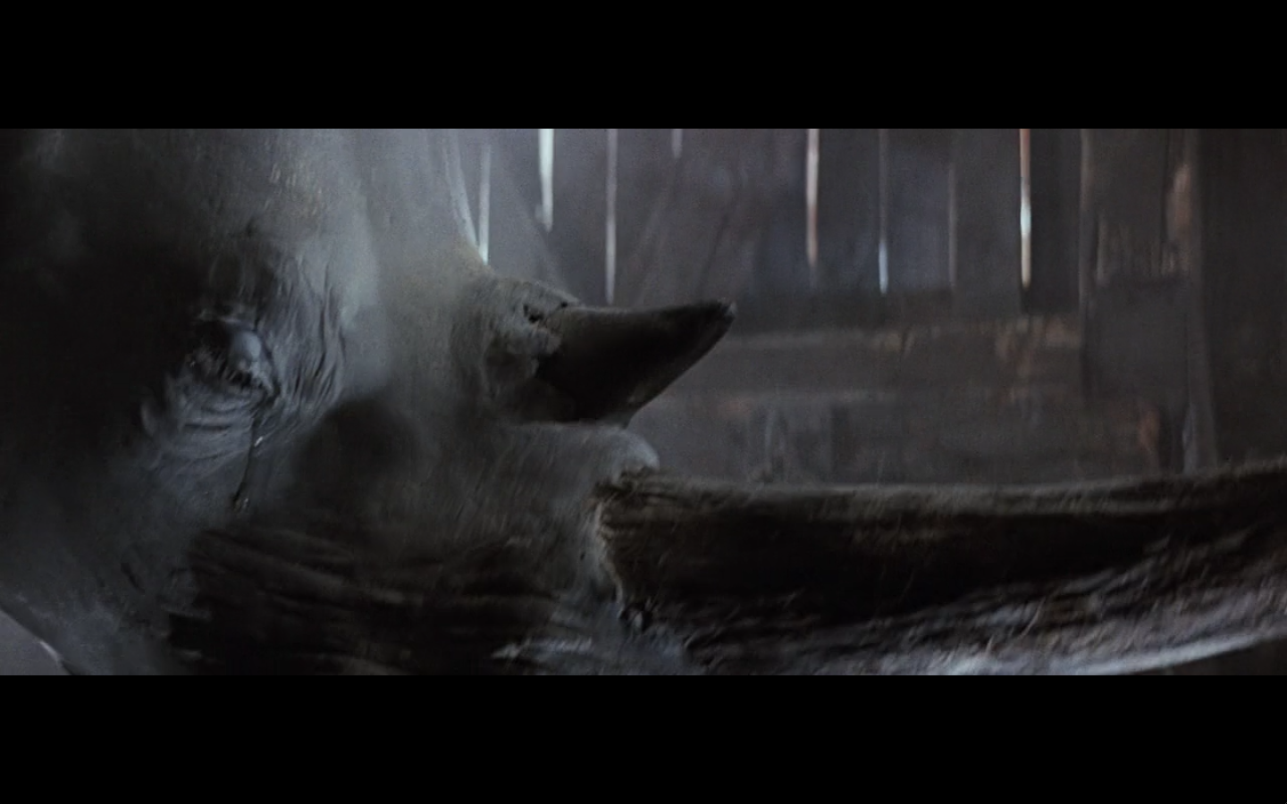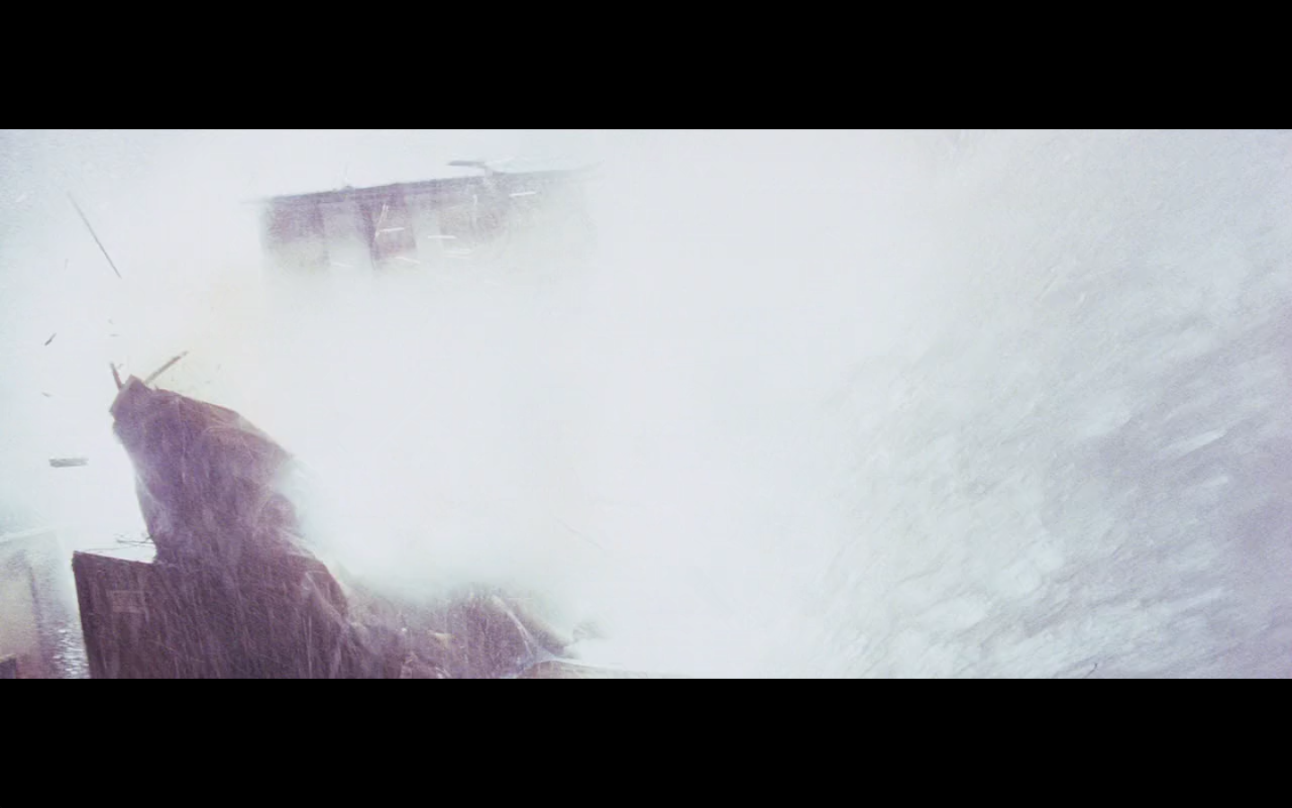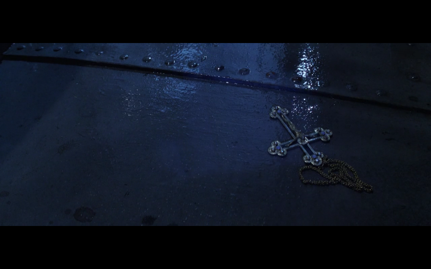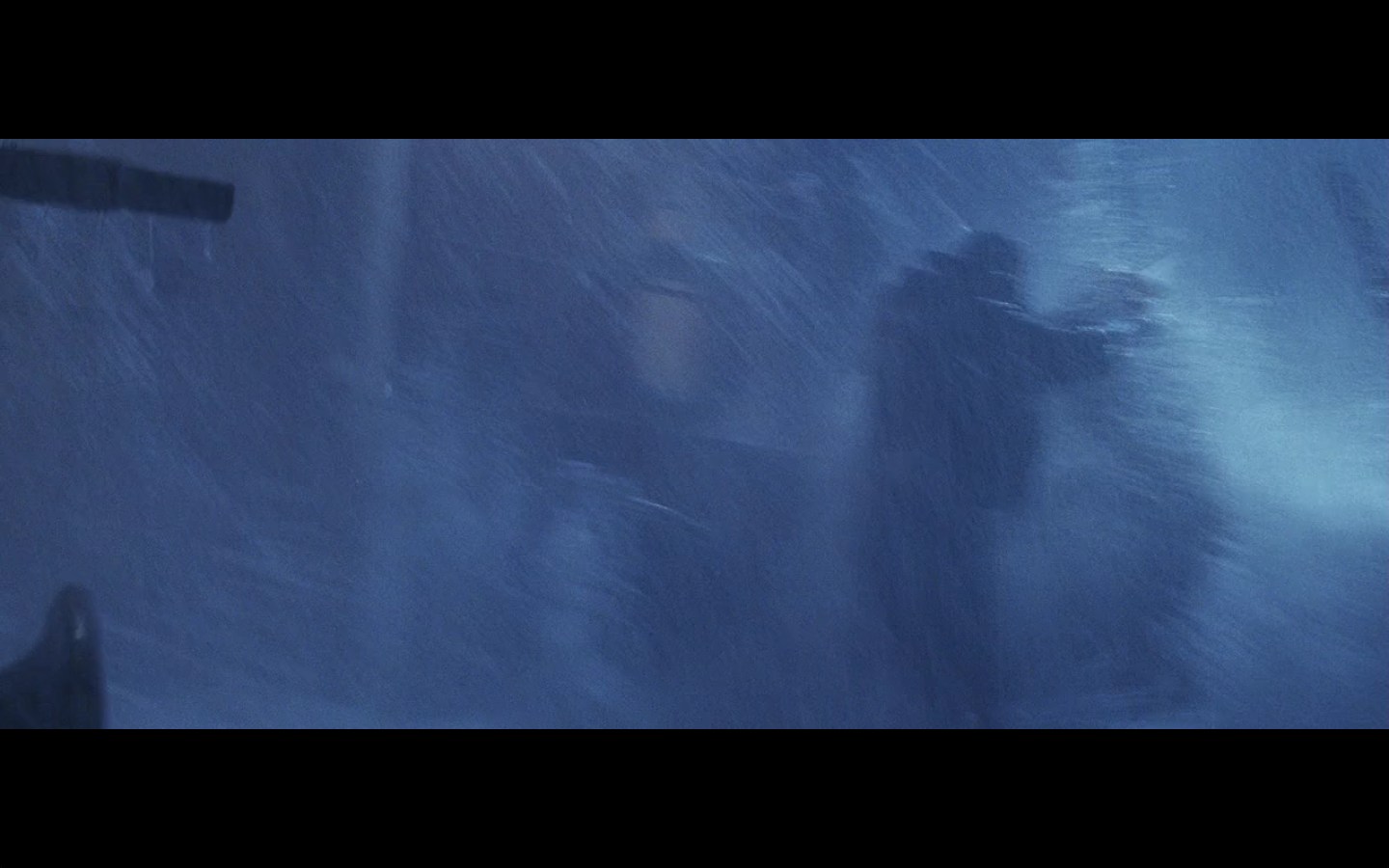Telling you right now, this is one of my favorite shots in the film. Boat, wide shot, pouring rain, clearly on a soundstage, rocking back and forth, giant simulated waves crashing down, BARRELS!