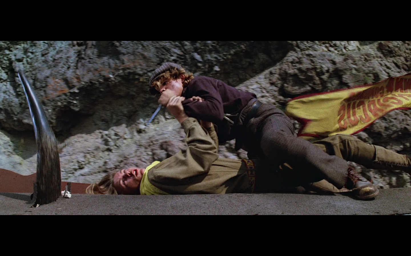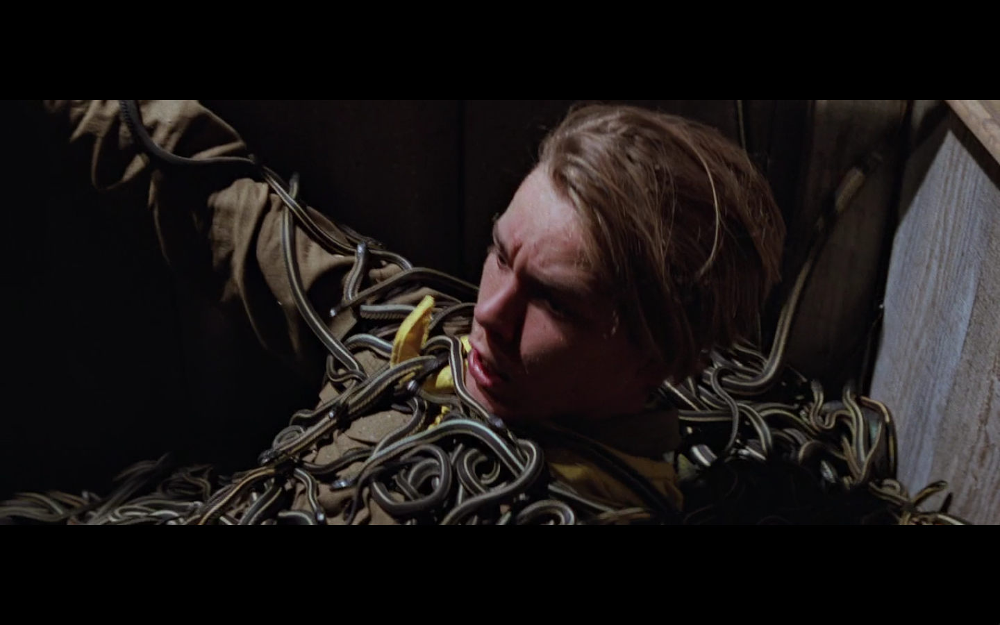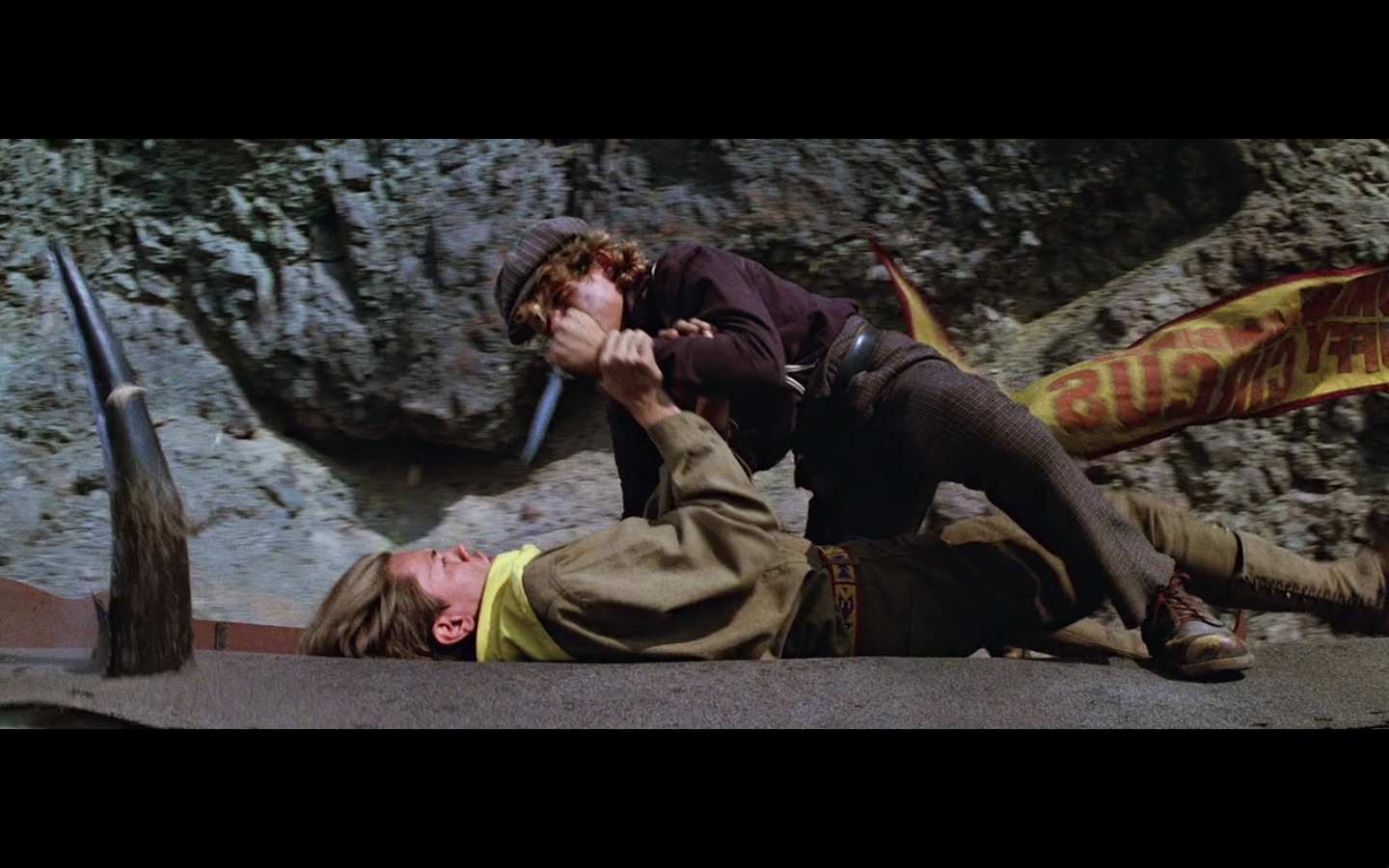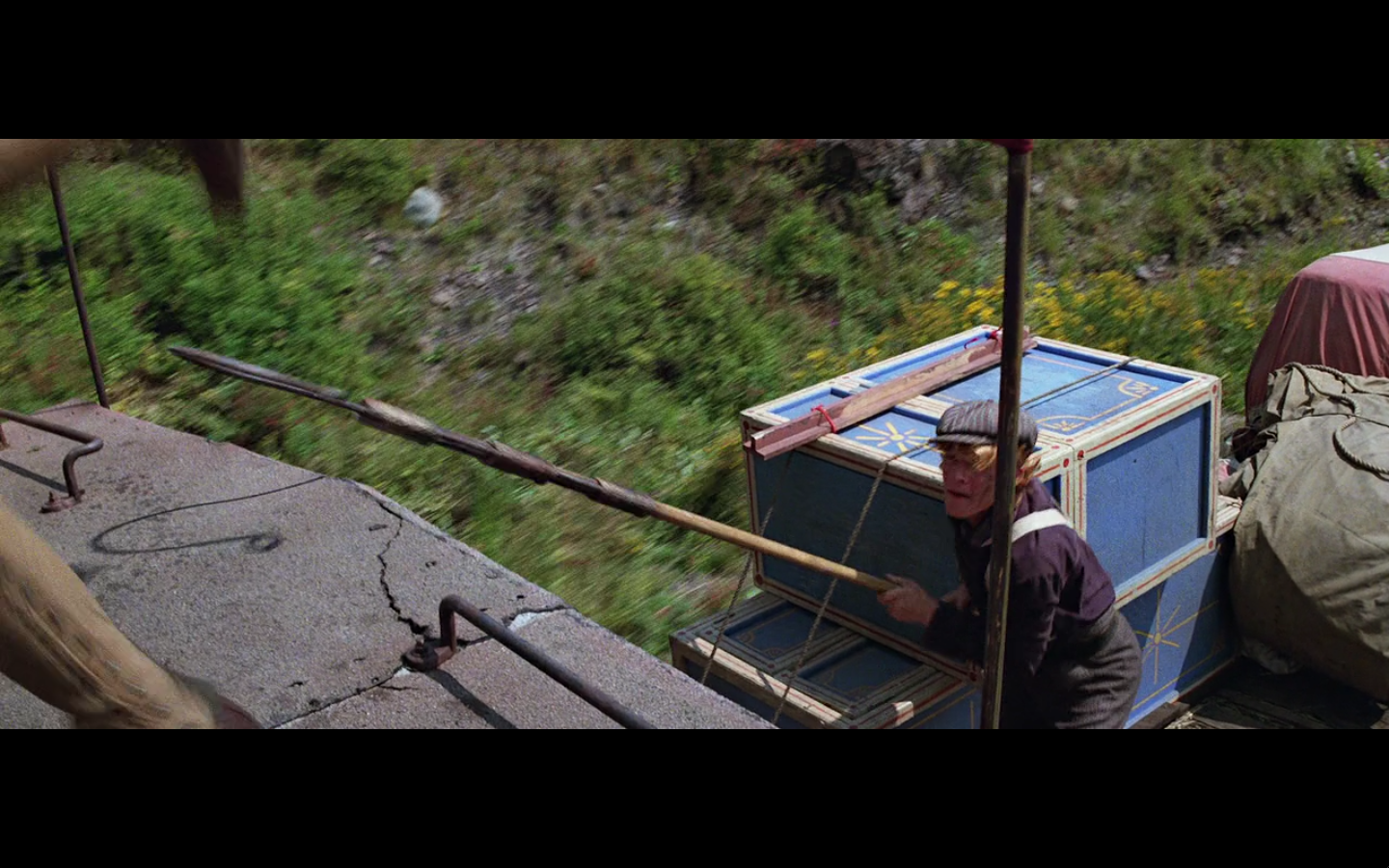 Telling you right now, this is one of my favorite shots in the film. Boat, wide shot, pouring rain, clearly on a soundstage, rocking back and forth, giant simulated waves crashing down, BARRELS!