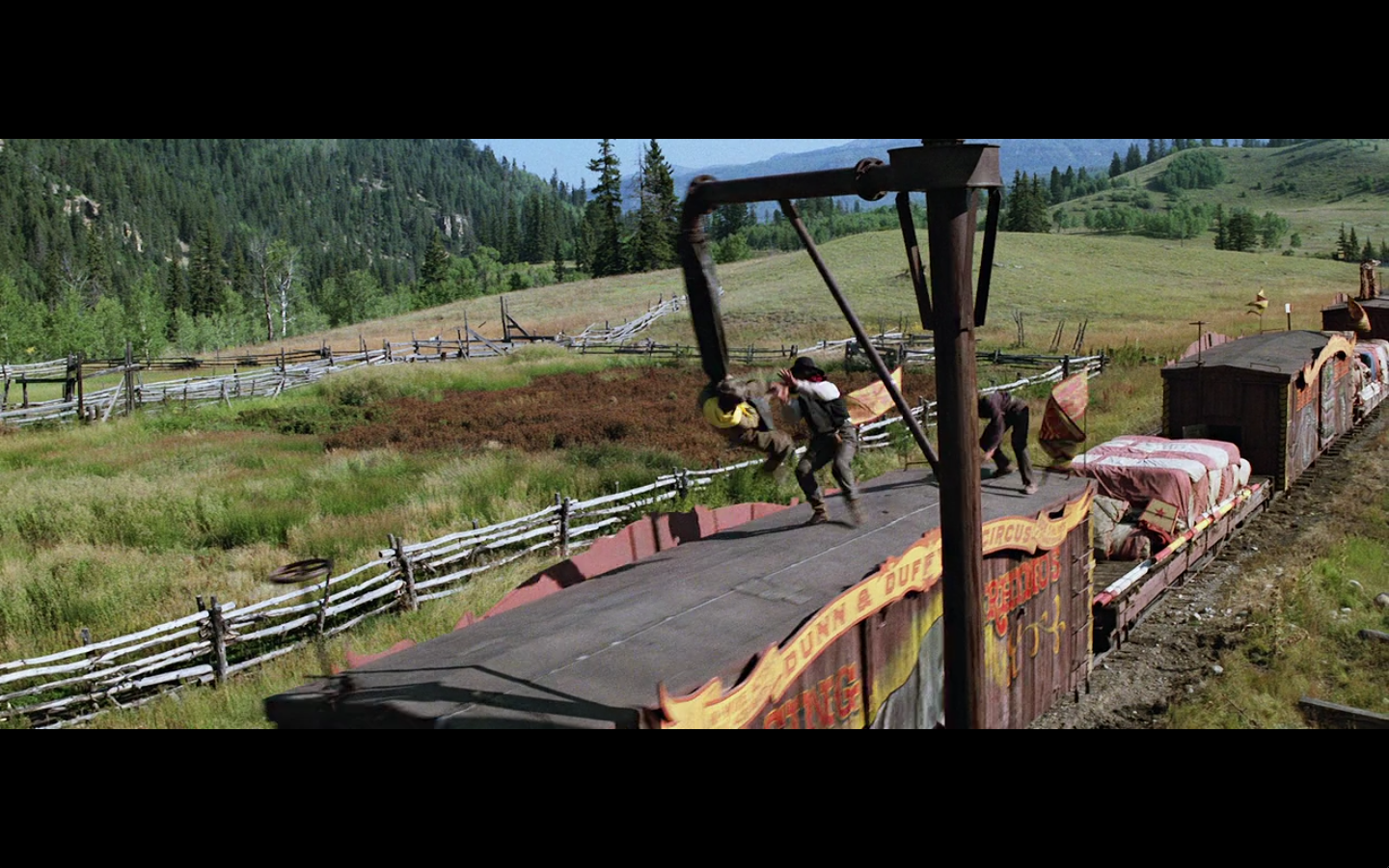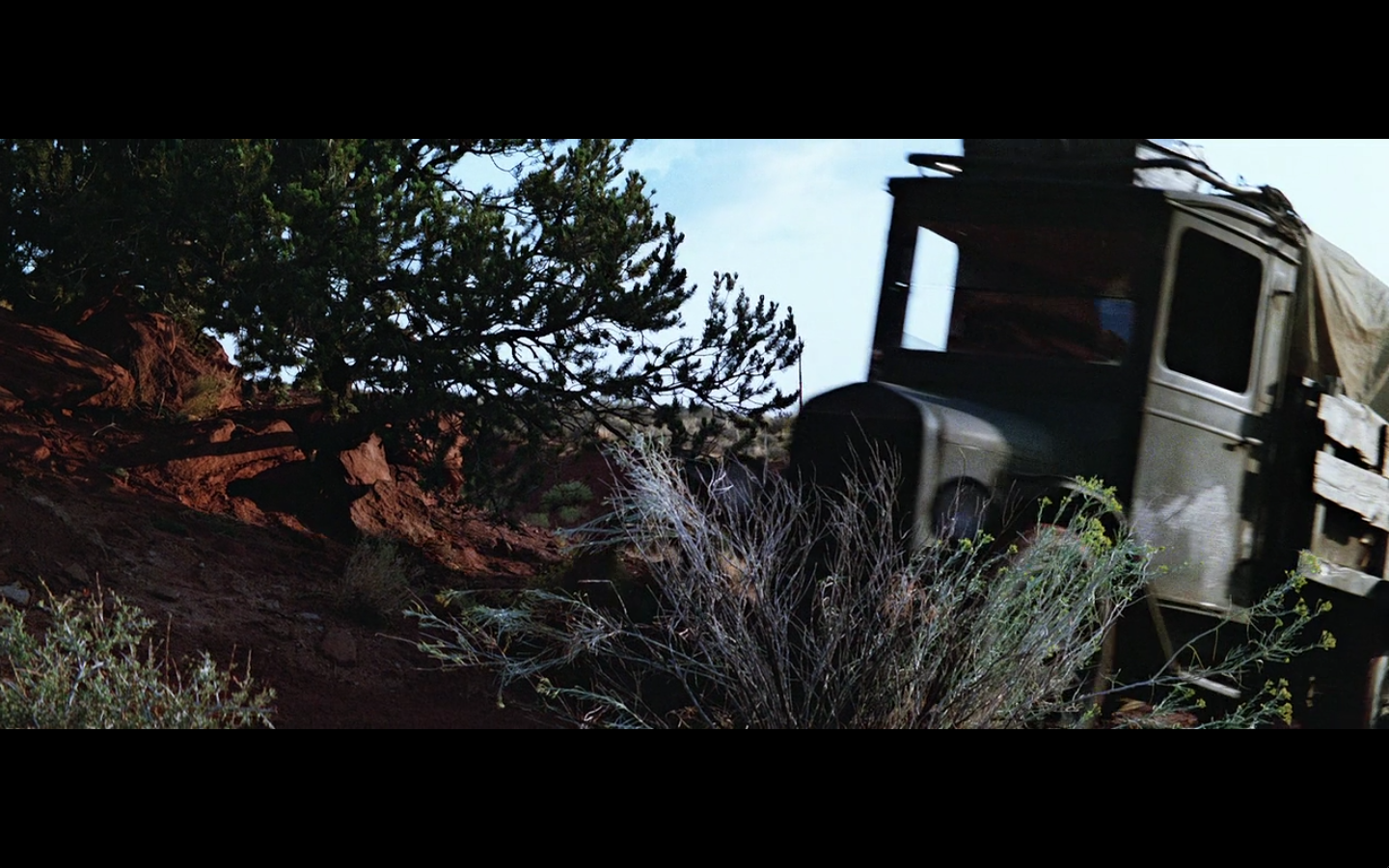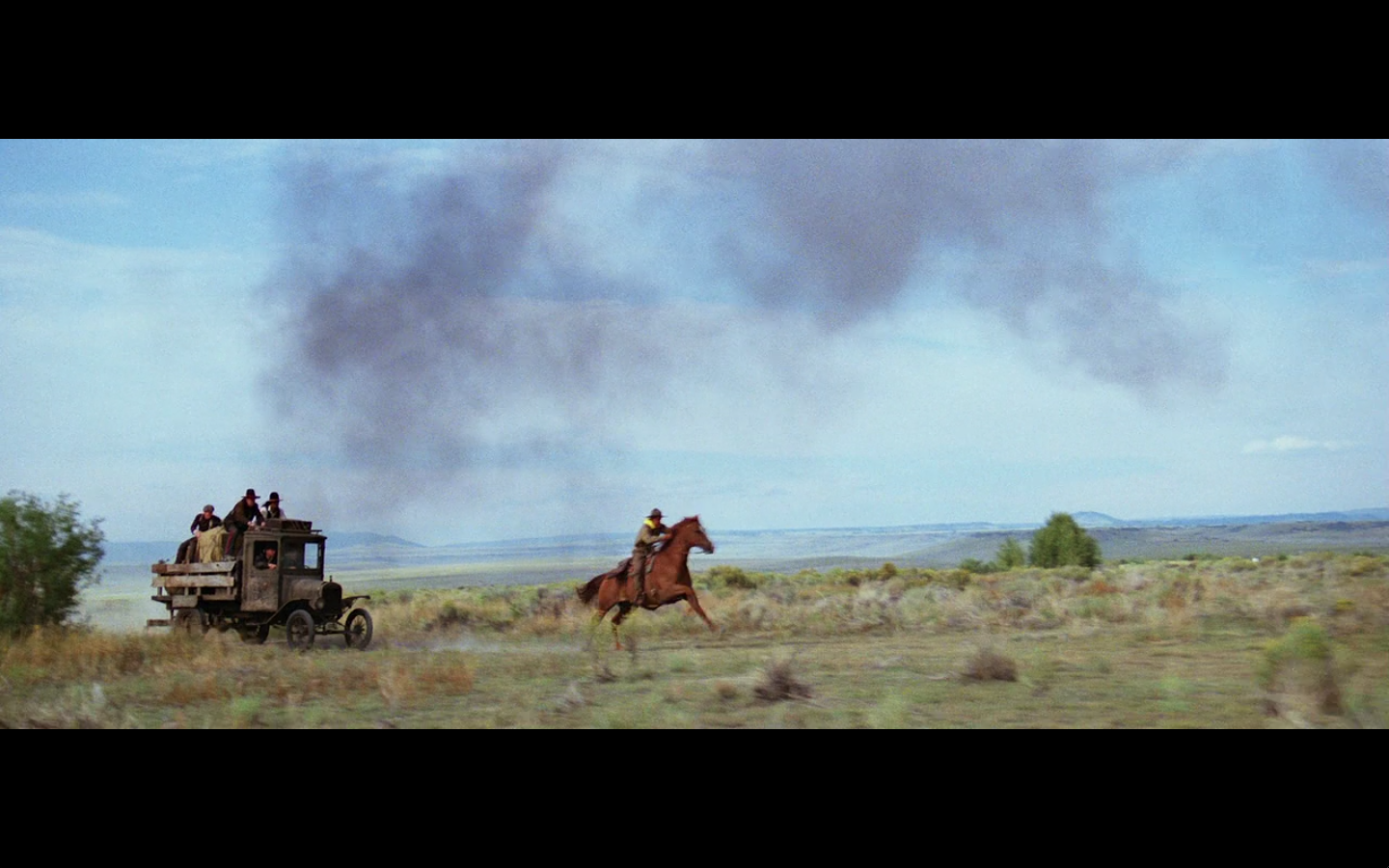 It really should be a still shot with things moving across. I just watched Stagecoach in a theater for the second or third time in my life, and that shit looks great.