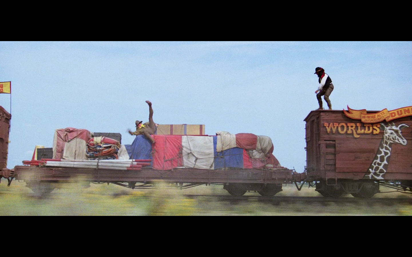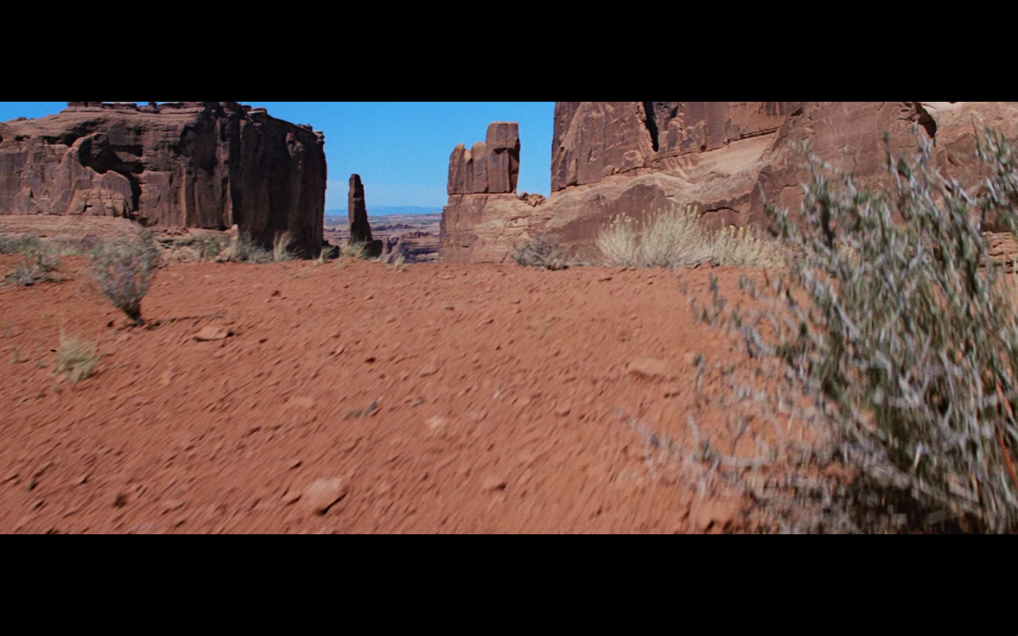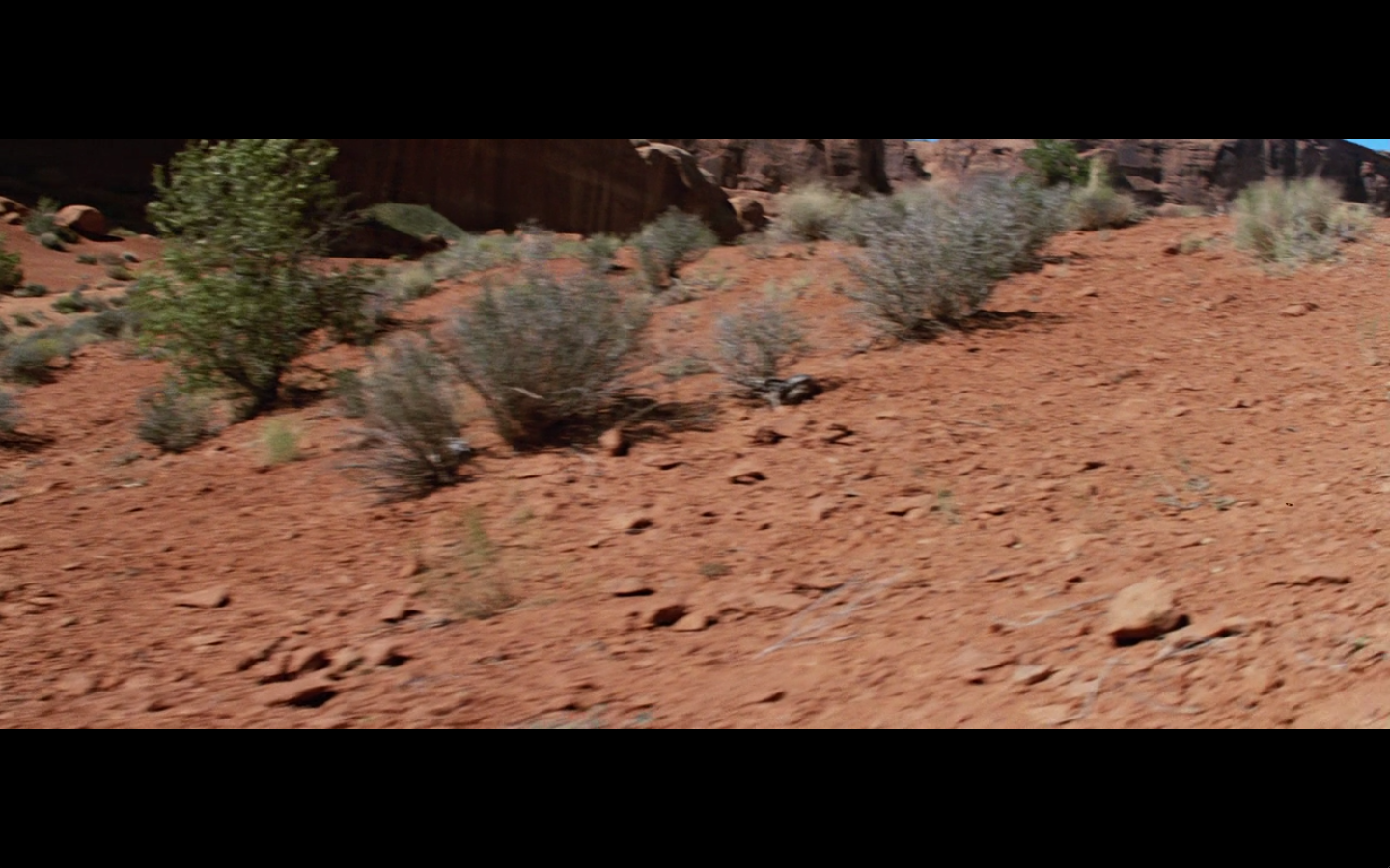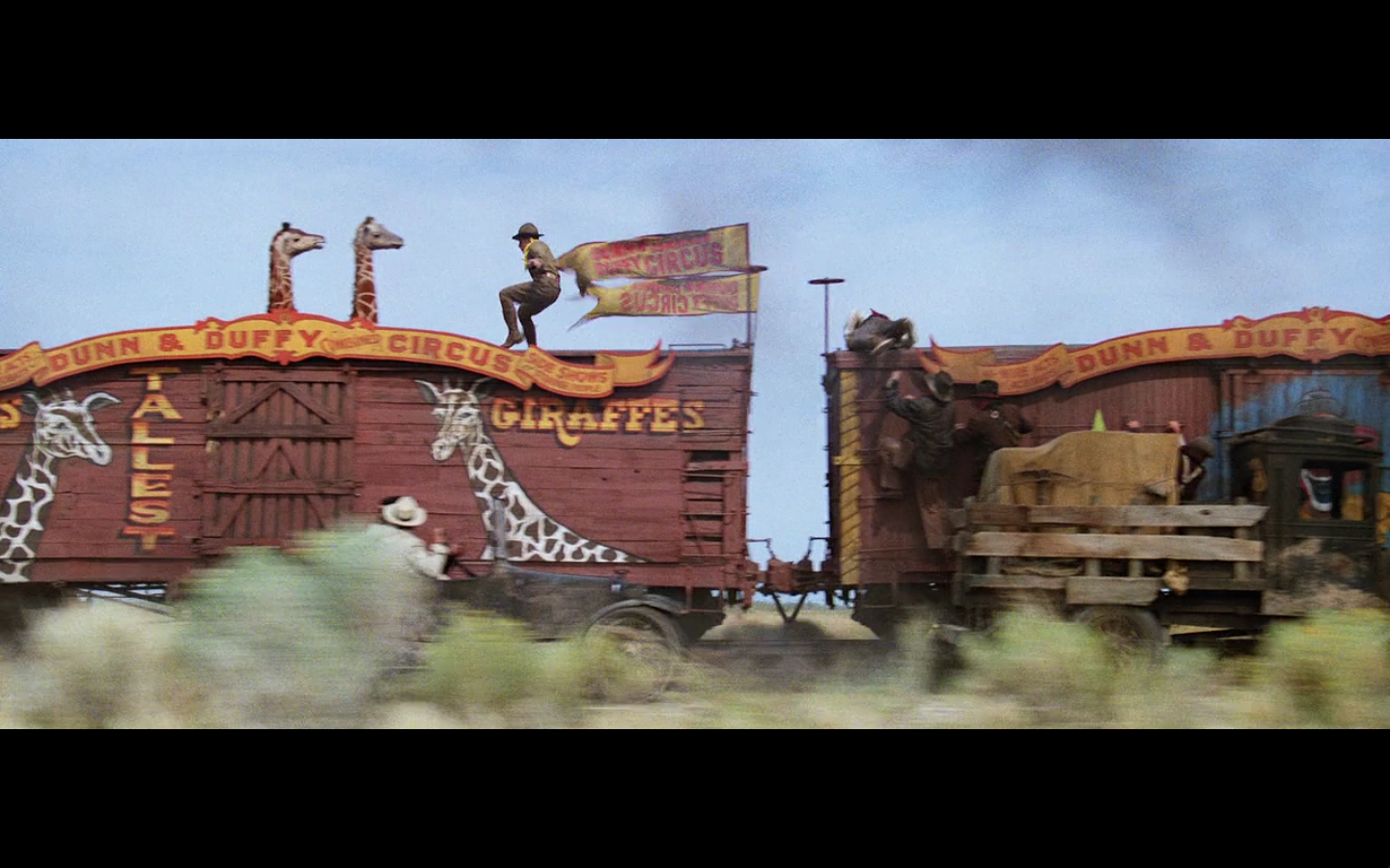 It really should be a still shot with things moving across. I just watched Stagecoach in a theater for the second or third time in my life, and that shit looks great.