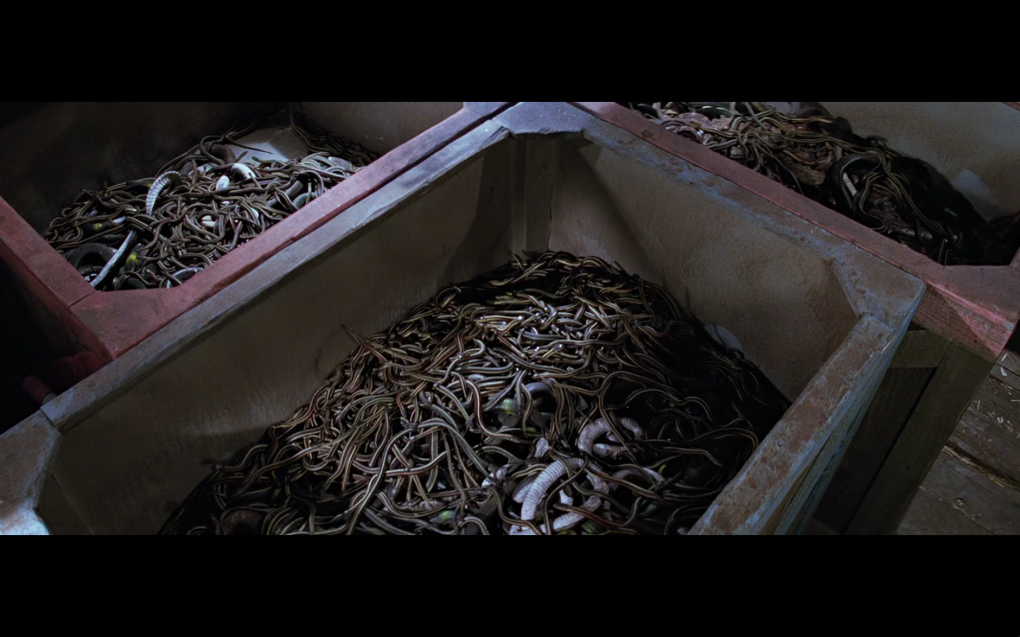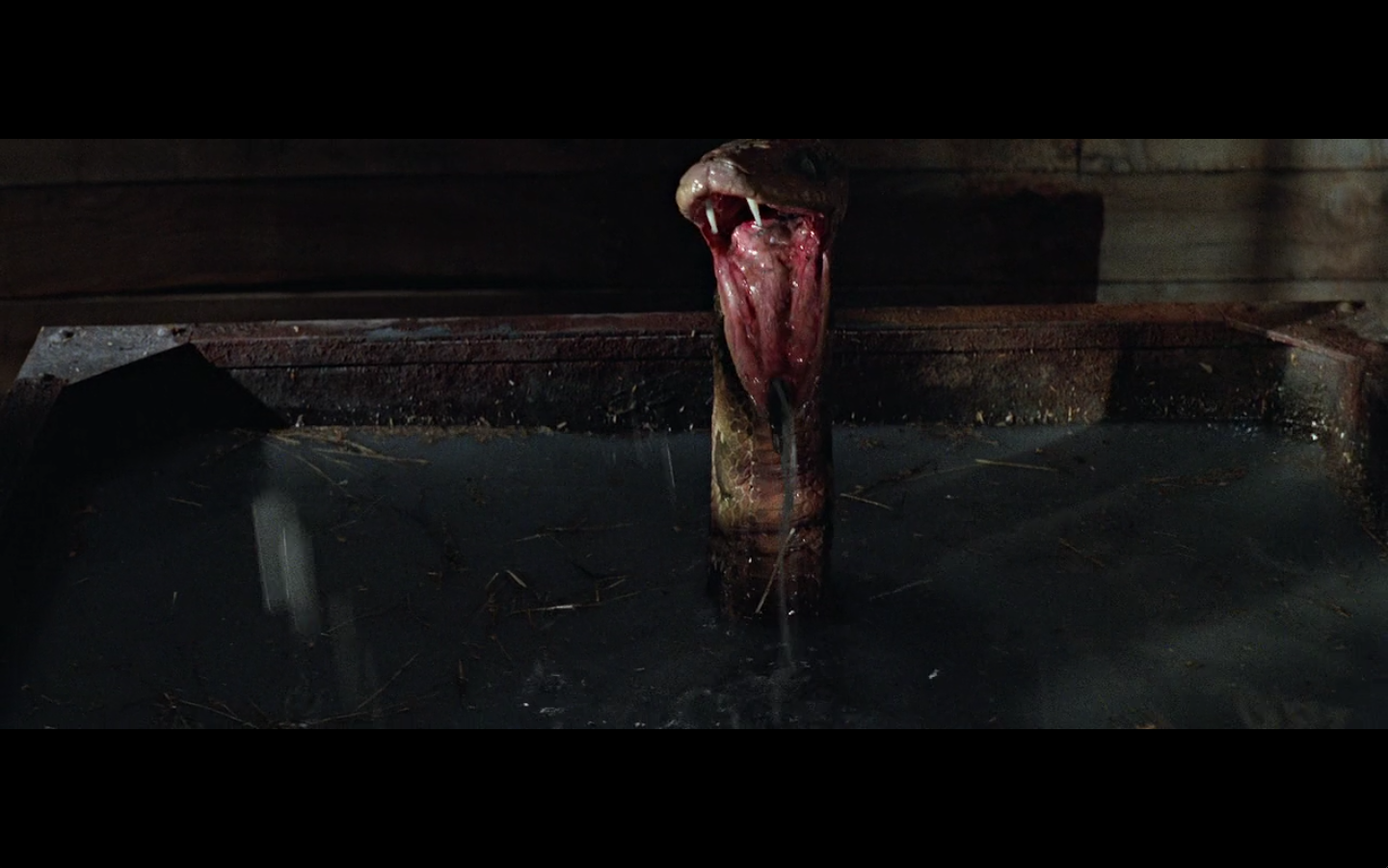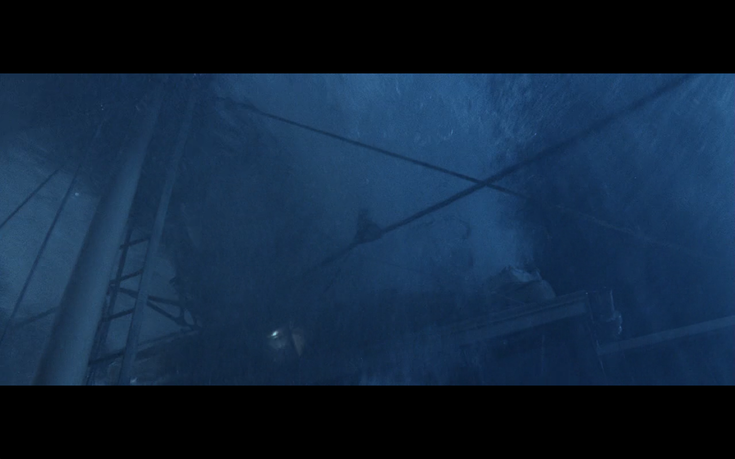 This harkens back to the first movie. Clearly a small pool on a soundstage, but it’s darkly lit so you don’t know.