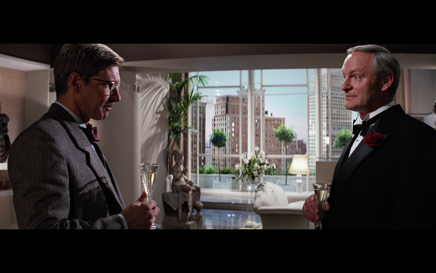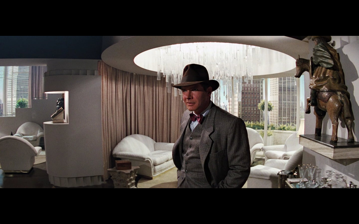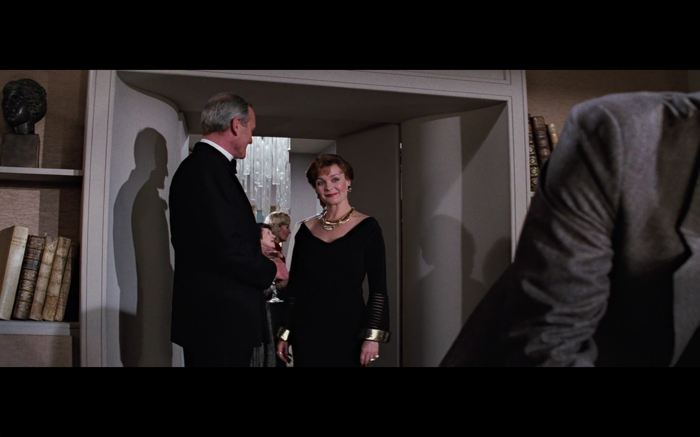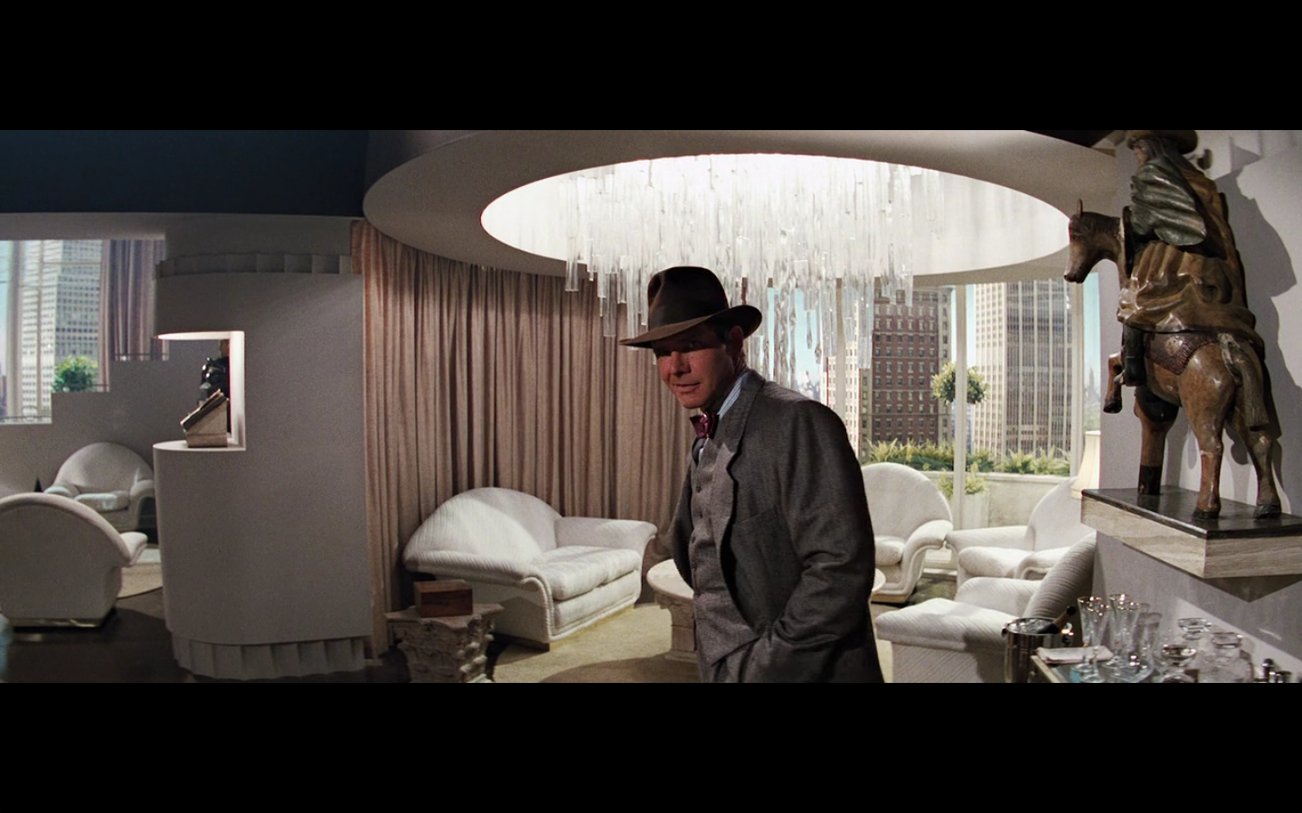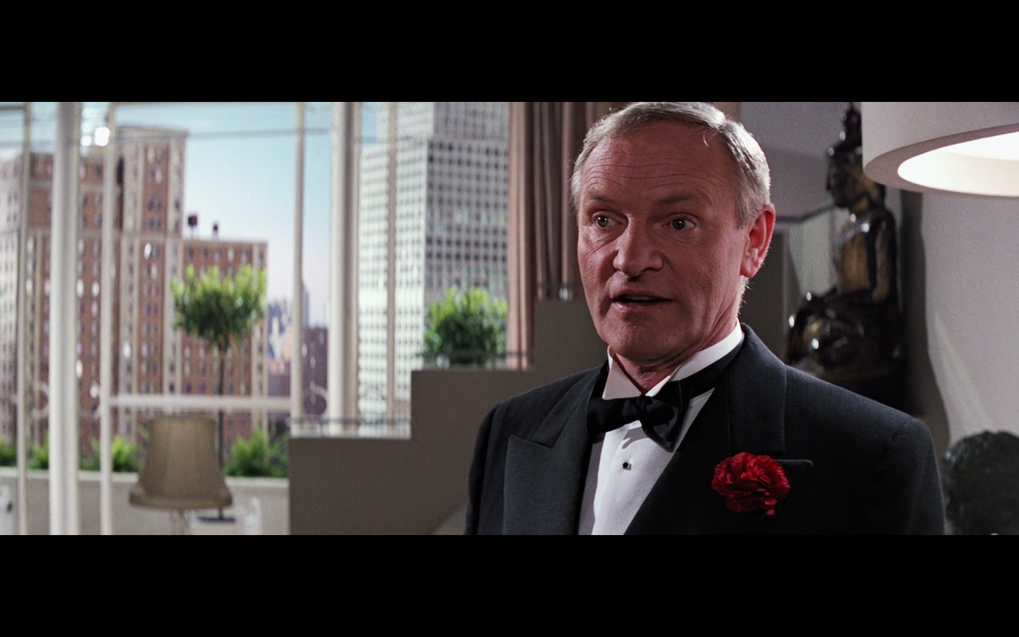 The thing I like about this is that they don’t tell you explicitly where this is. It’s clearly the city, based on the matte paintings out the windows. But it doesn’t matter for the story. He’s in a nice apartment where he doesn’t quite fit, and we’re going to get exposition. That’s the point. Today, you’d get a wide shot of the city and a title card telling you where we are. Don’t believe me? Wait two weeks.