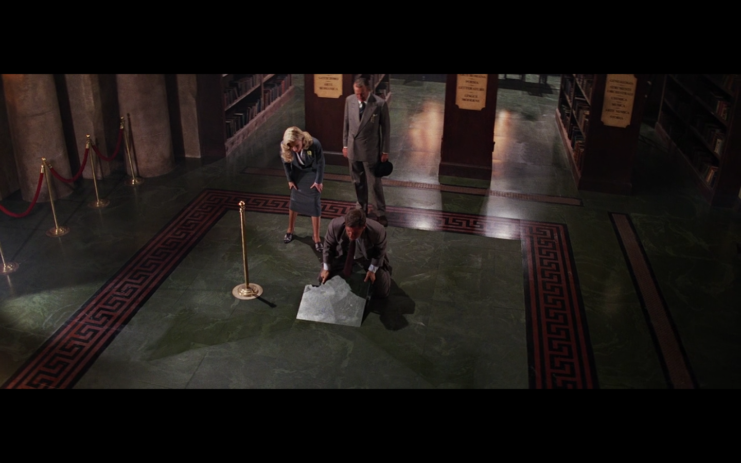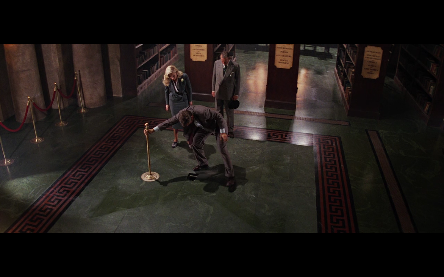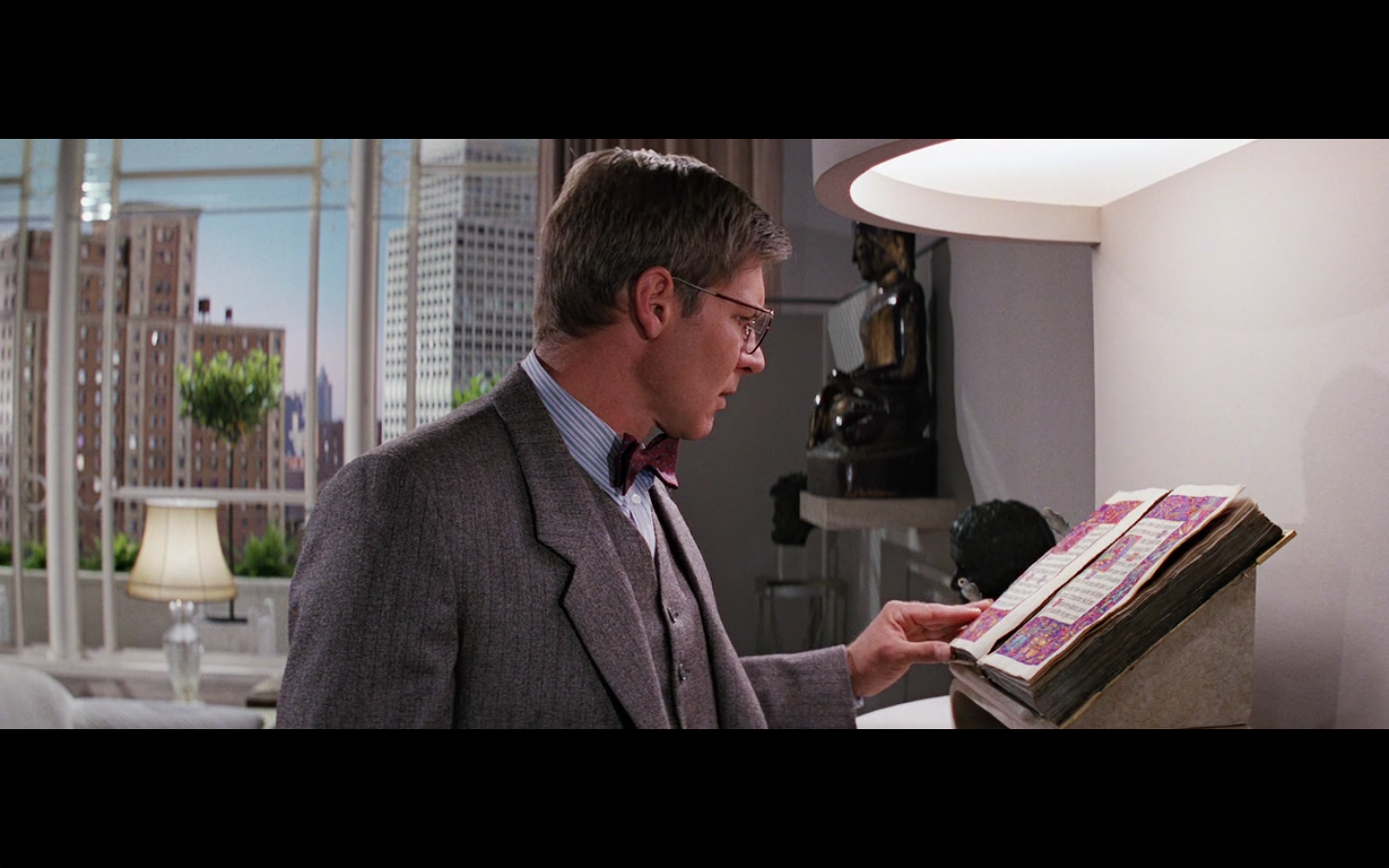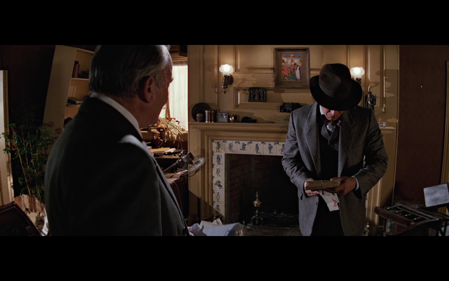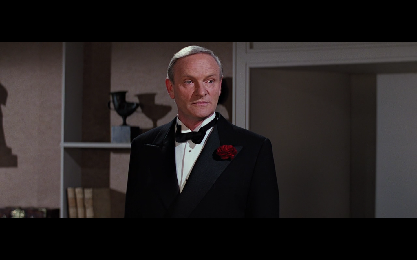 The thing I like about this is that they don’t tell you explicitly where this is. It’s clearly the city, based on the matte paintings out the windows. But it doesn’t matter for the story. He’s in a nice apartment where he doesn’t quite fit, and we’re going to get exposition. That’s the point. Today, you’d get a wide shot of the city and a title card telling you where we are. Don’t believe me? Wait two weeks.