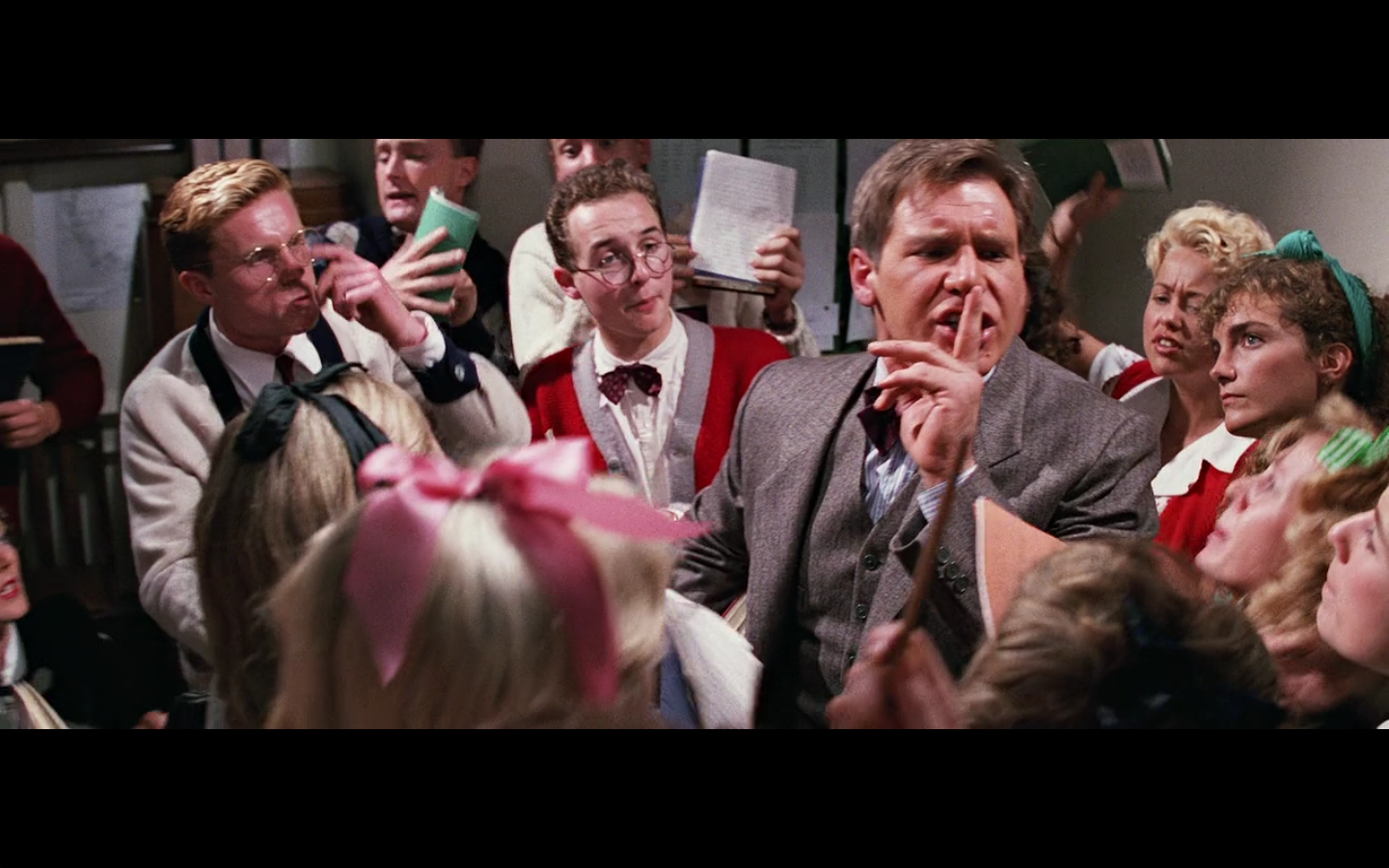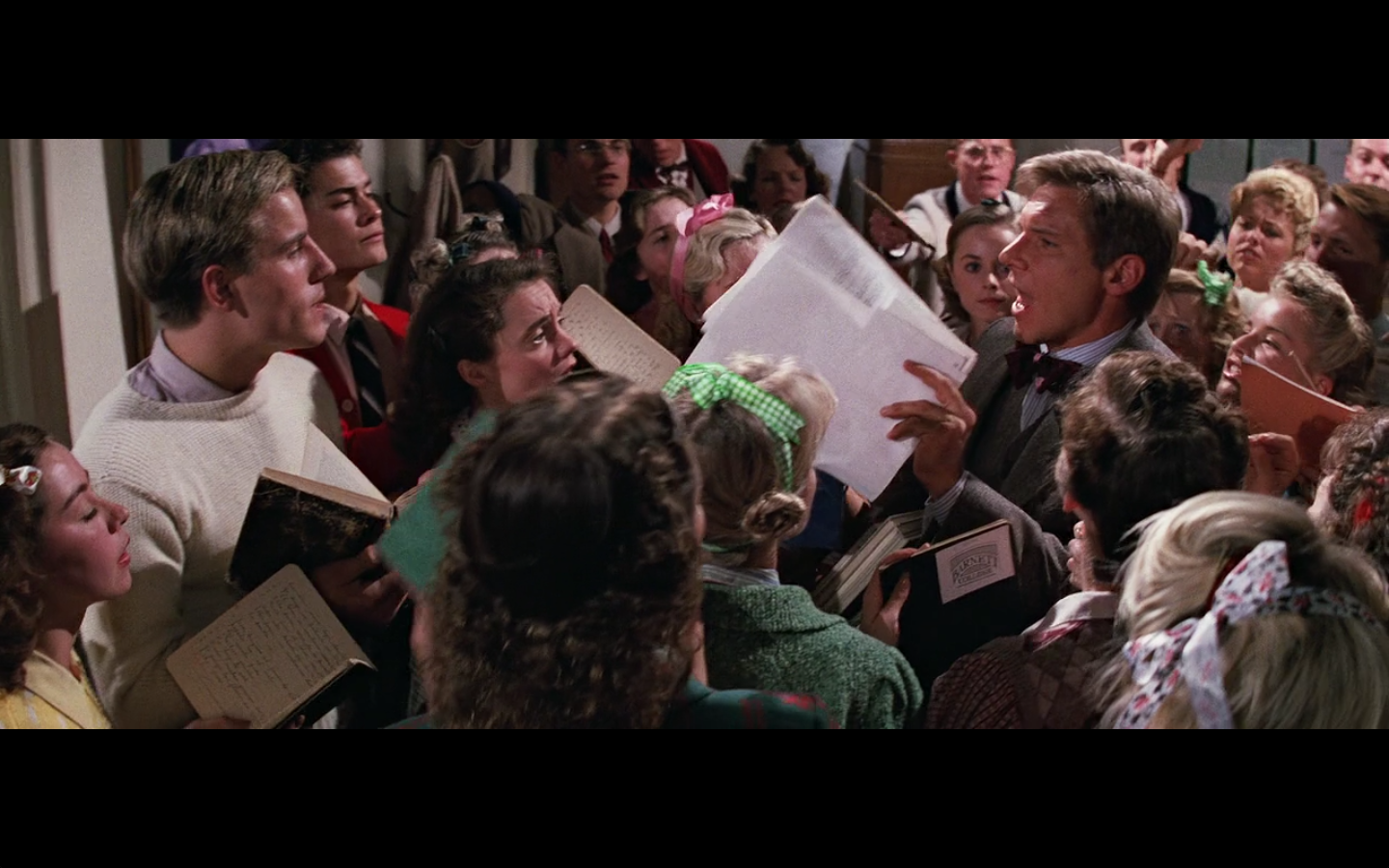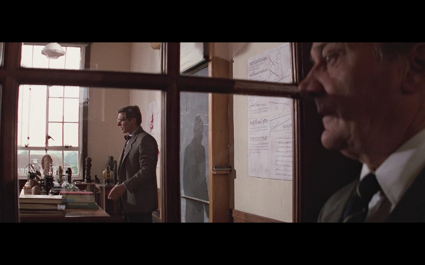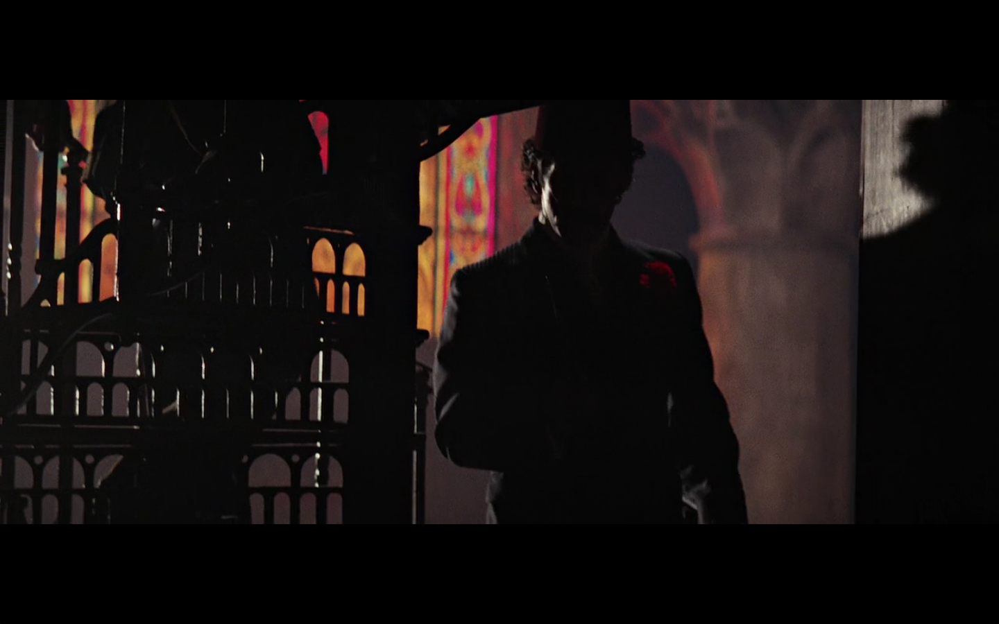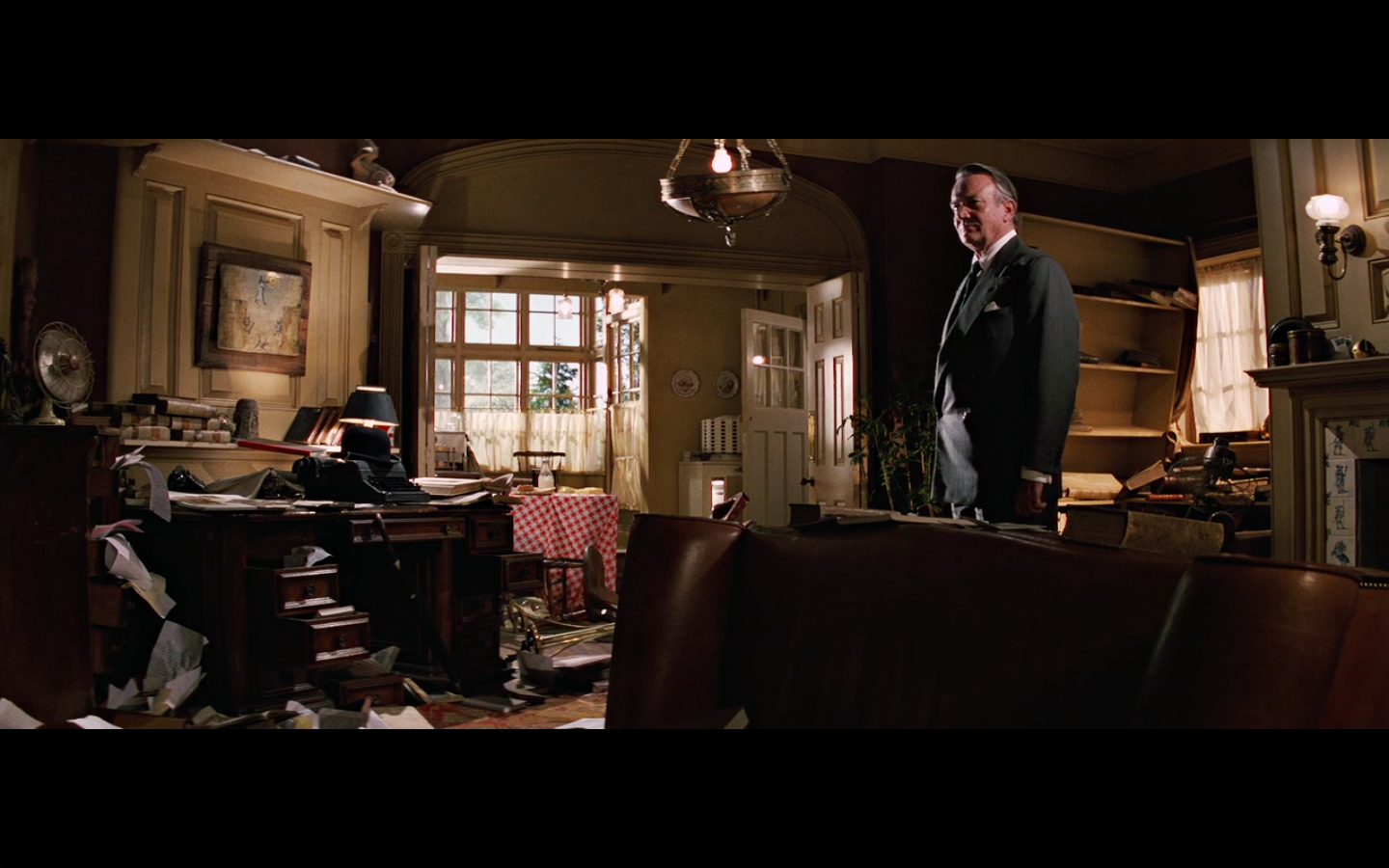 The thing I like about this is that they don’t tell you explicitly where this is. It’s clearly the city, based on the matte paintings out the windows. But it doesn’t matter for the story. He’s in a nice apartment where he doesn’t quite fit, and we’re going to get exposition. That’s the point. Today, you’d get a wide shot of the city and a title card telling you where we are. Don’t believe me? Wait two weeks.