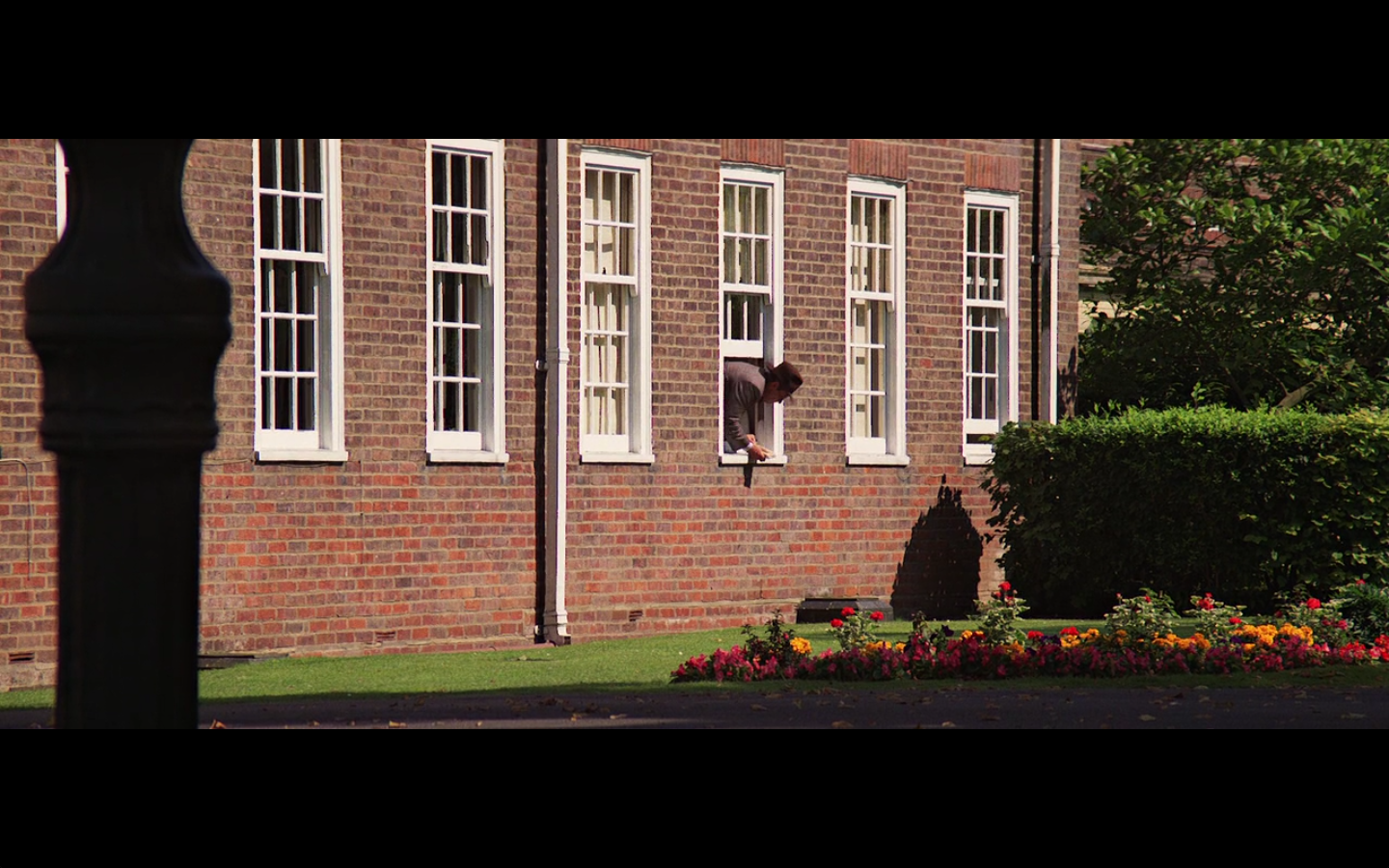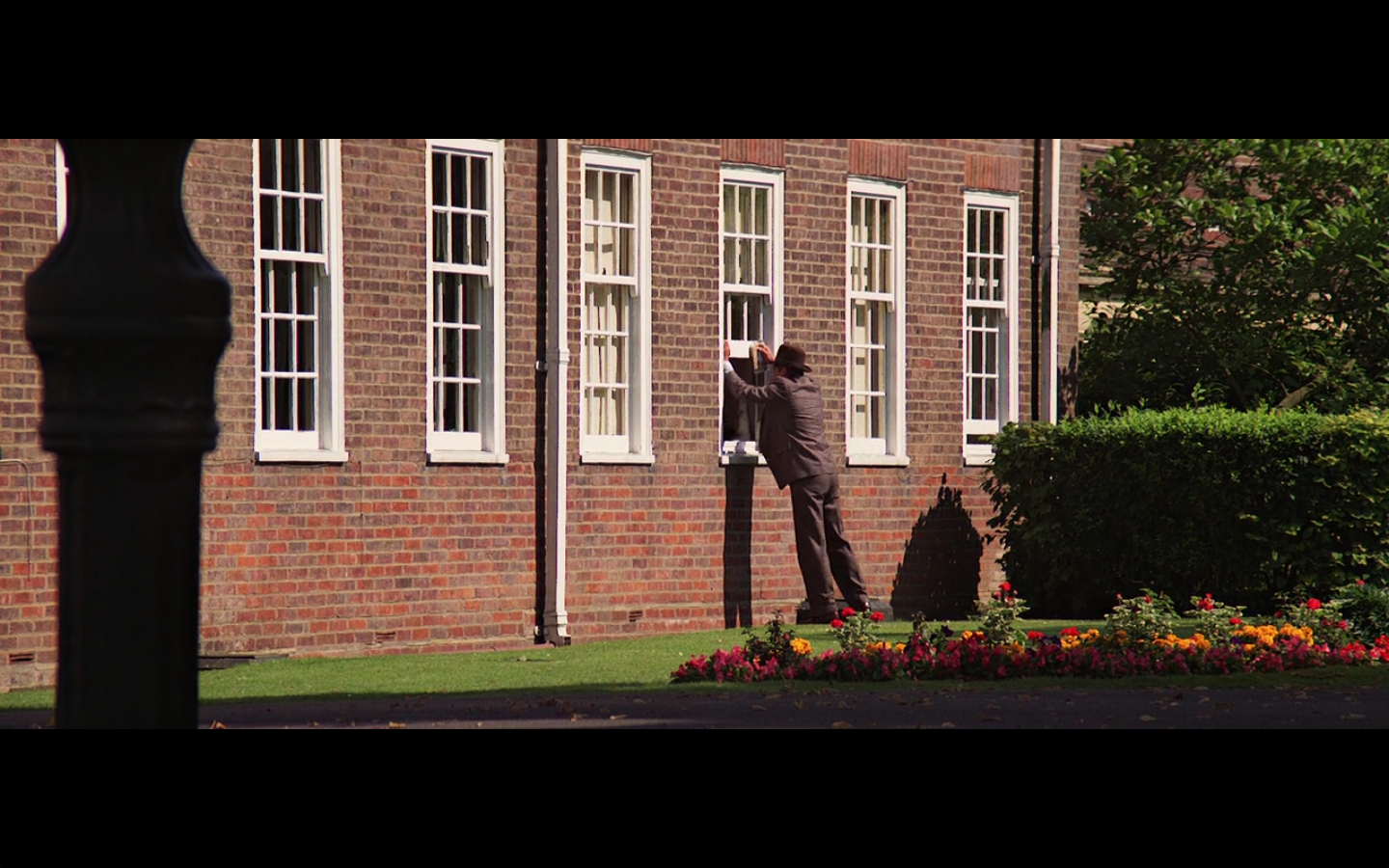 This could have been a great moment. Him beating the shit out of someone, climbing out the window, and calmly walking away in wide shot.