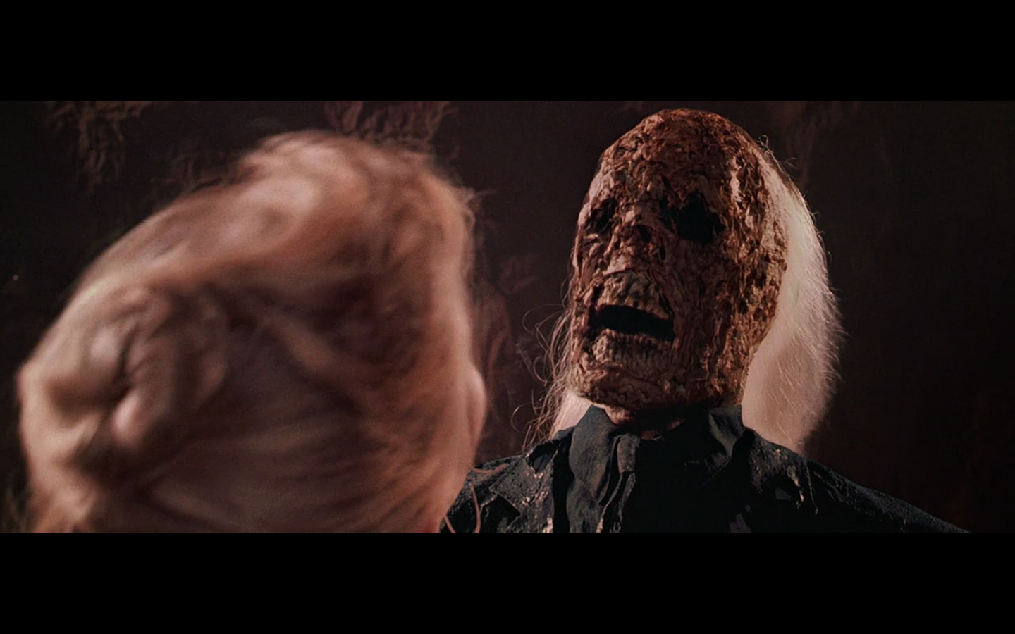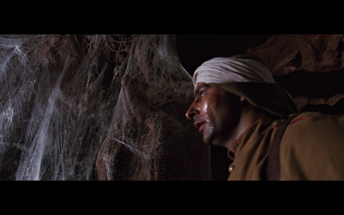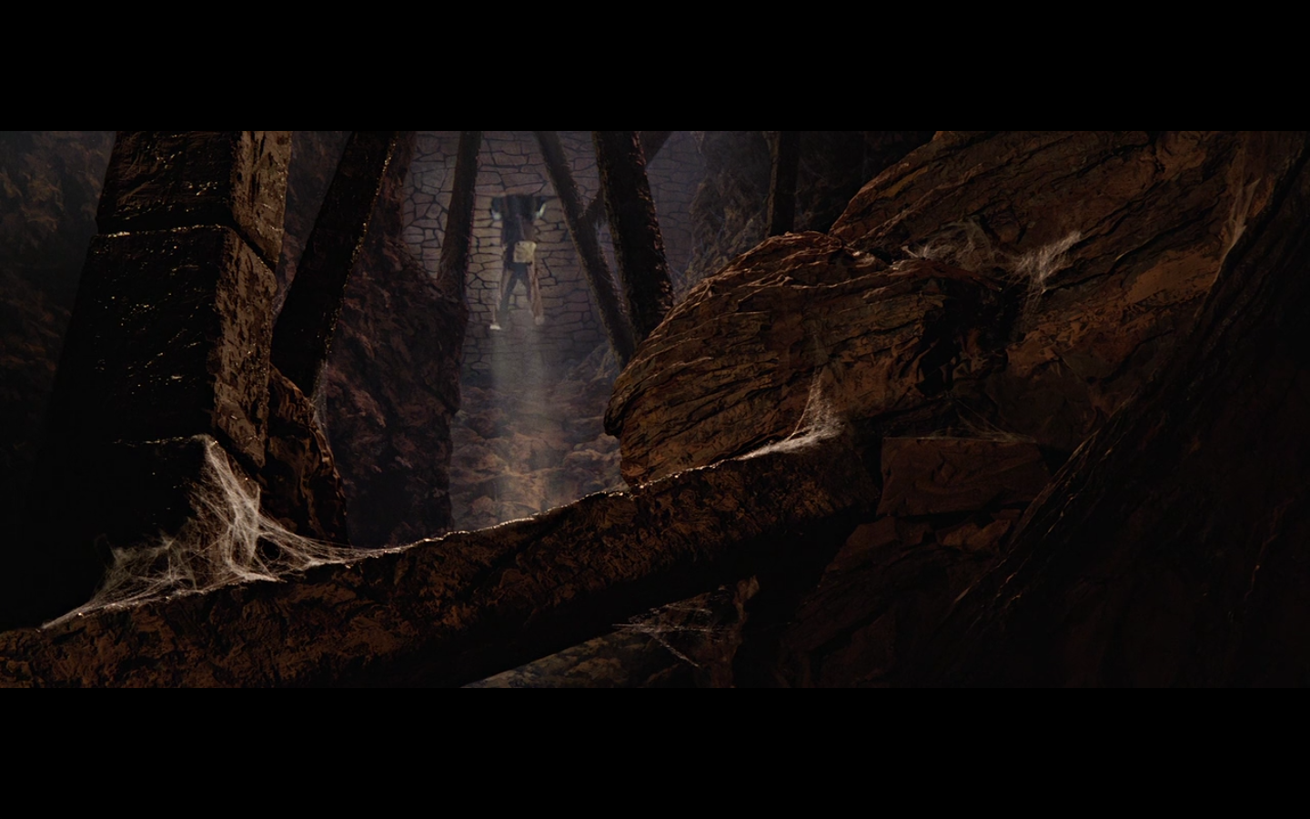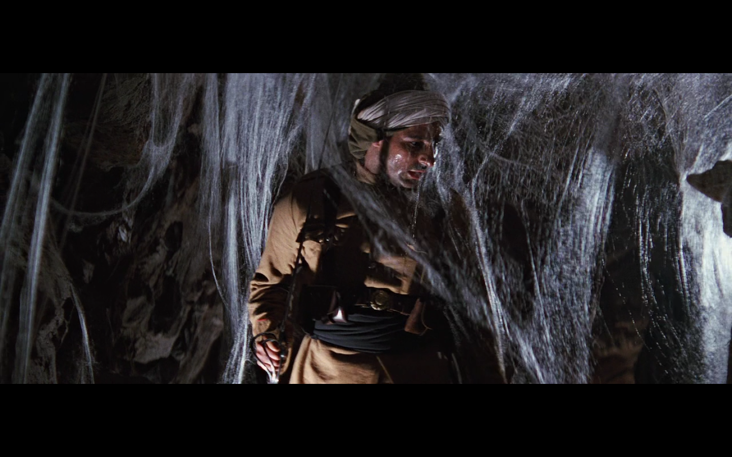 I’m always creeped out by all the spider webs clinging to his sweaty face. That’s gross. How about we take a flamethrower to all these spider webs?
