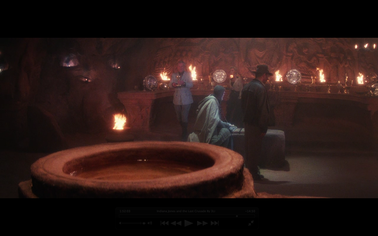 So how does this work now? He’s immortal? I mean, the next movie shows that his dad has died, so we know they’re not officially immortal, but what’s with that? I know the knight says the grail can’t cross the seal, but it must mean you have to keep drinking from it like every day to stay alive. “The price of immortality” doesn’t seem so bad if you just have to show up and drink from it and then be immortal. But I guess he has to keep drinking. Bummer.