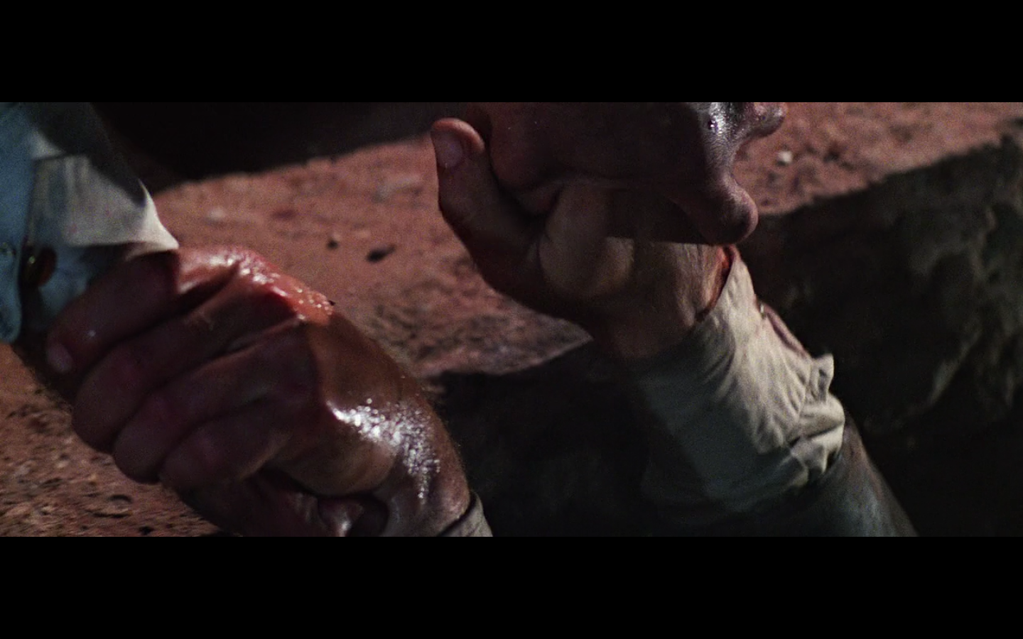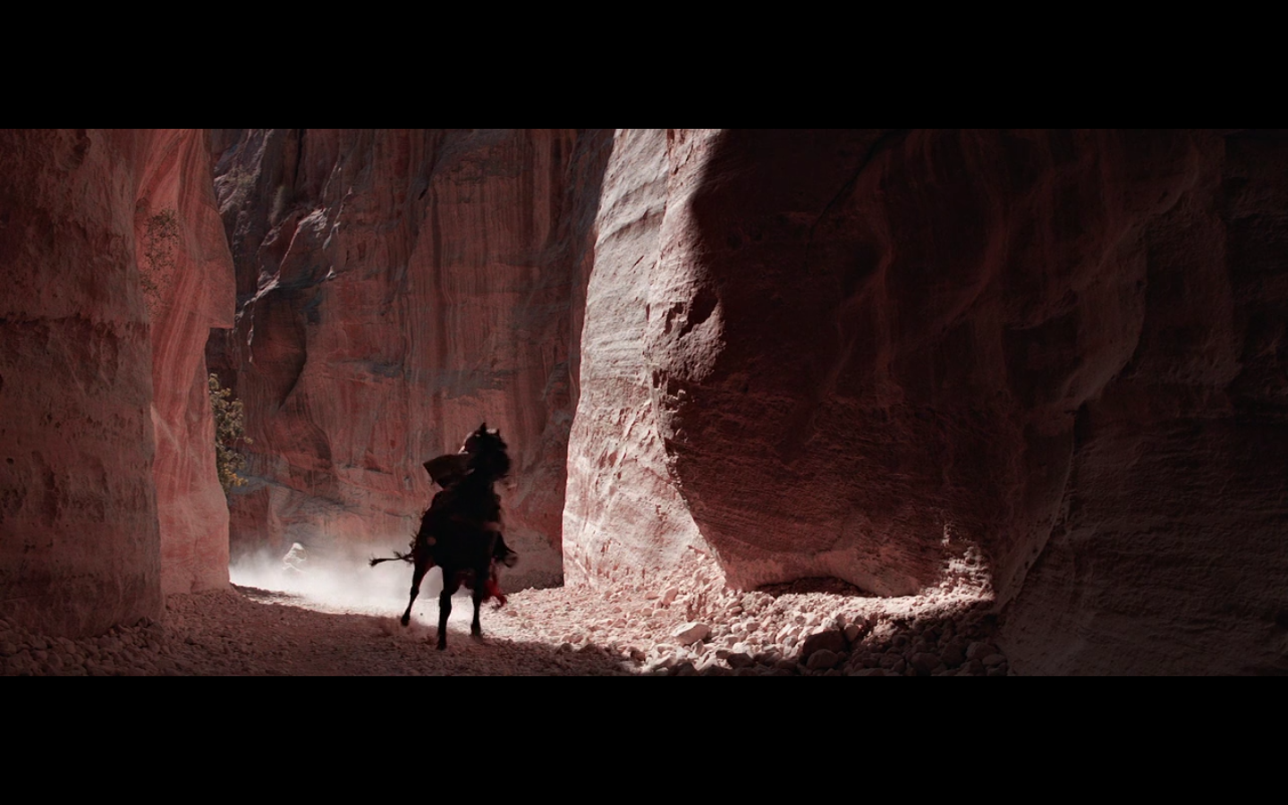 This seems strange from Marcus, but what the hell. I mean, I get that it’s supposed to be a joke, but what person in this situation would say something like that and take off? This is not a time for levity or impulsive action. You just watched dozens of people die and you have no provisions, heading out into a desert on horseback. Also, you know the way through the canyon? Congratulations, asshole.