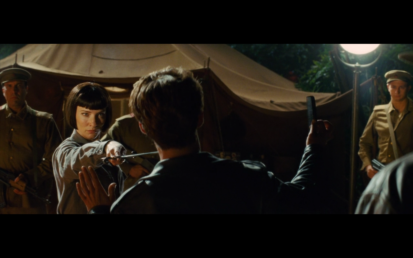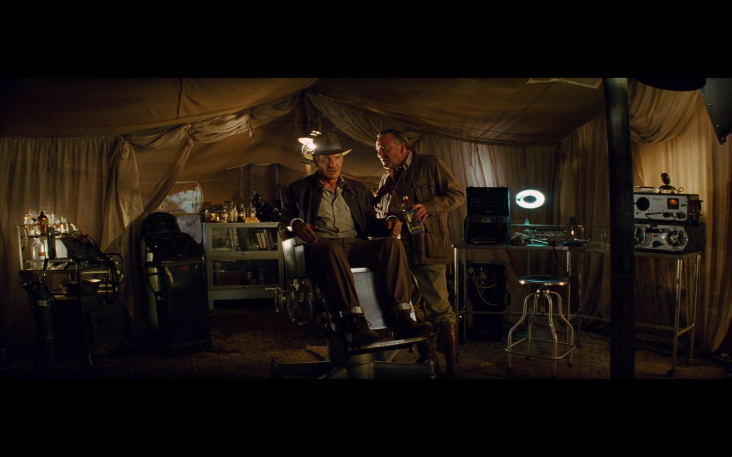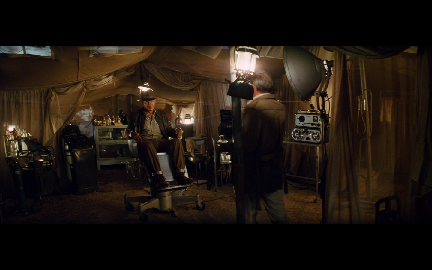 That was a scene that took several minutes to carefully construct a visual representation of the gulf between the US and the USSR during the postwar period. Lucas and Spielberg just threw in some soldiers doing hopak (it’s called ‘hopak’ or ‘gopak’ – you learned something) and called it a nice segue into a scene involving a British guy interrogating an American in the middle of the Amazon. I don’t care how rich they are, they’re yokels with cameras at this point.