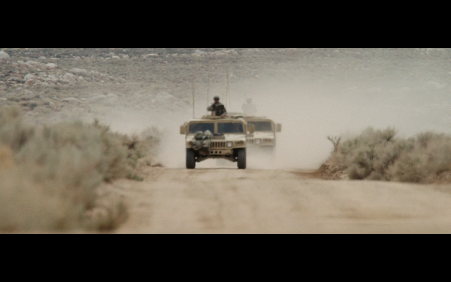A hah. Humvees. Modern superhero movies basically have to exist in some relation to the Middle East or the War on Terror, just as Westerns were all sort of situated around the Civil War in some way for a while there. Either the War on Terror is an aspect of the action, or it’s conspicuously absent from the plot because our (America’s) technological superiority and combat superiority has made it irrelevant. This is clearly the former.