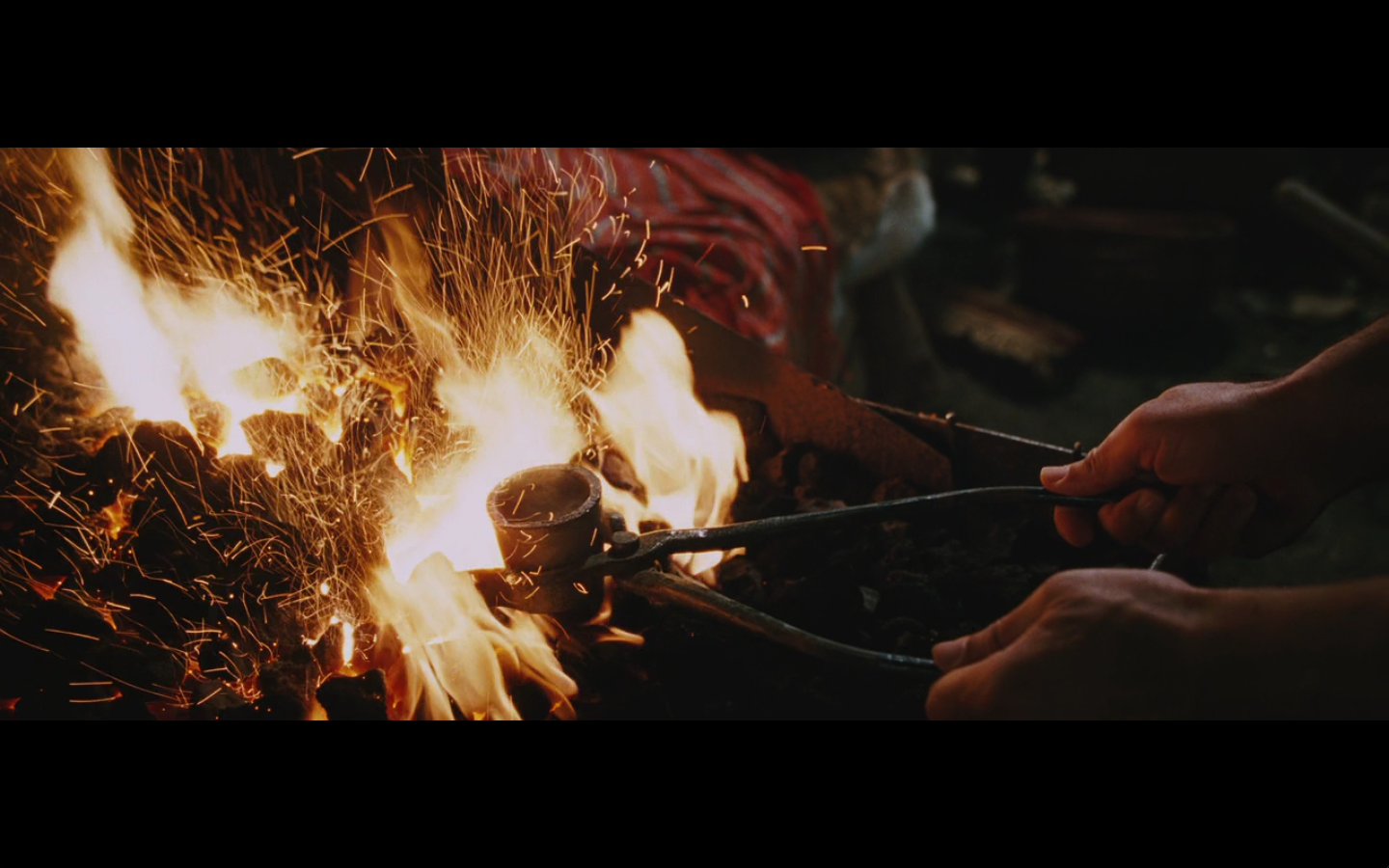 It is pretty cool that he sets up the metallurgy and stuff in the cave. Looking like a smithy at Medieval Times.