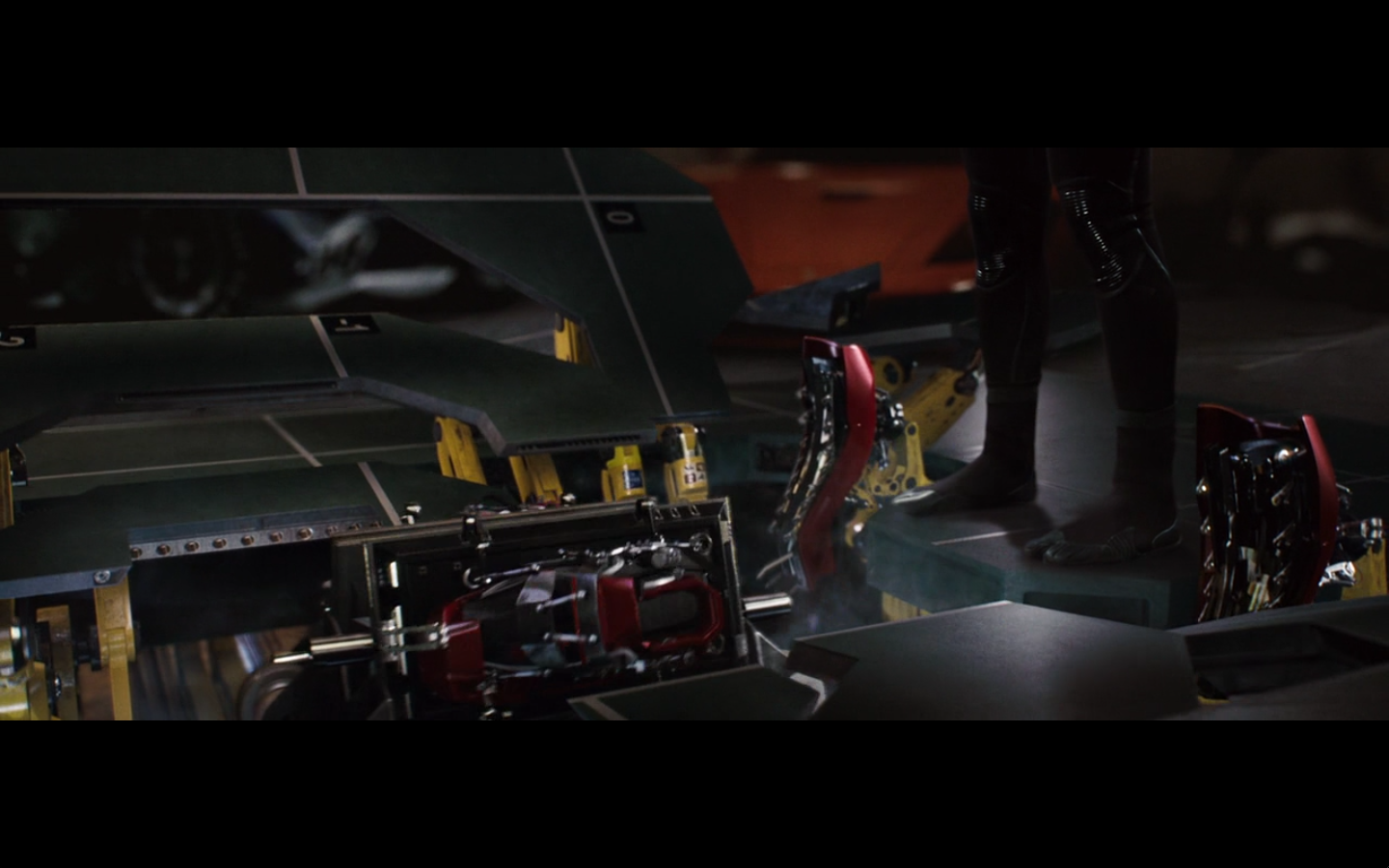 Why does it look scuffed up? This is the first time he’s worn this suit. Or at least, the first time he’s worn it with the new metal and the paint job and everything.