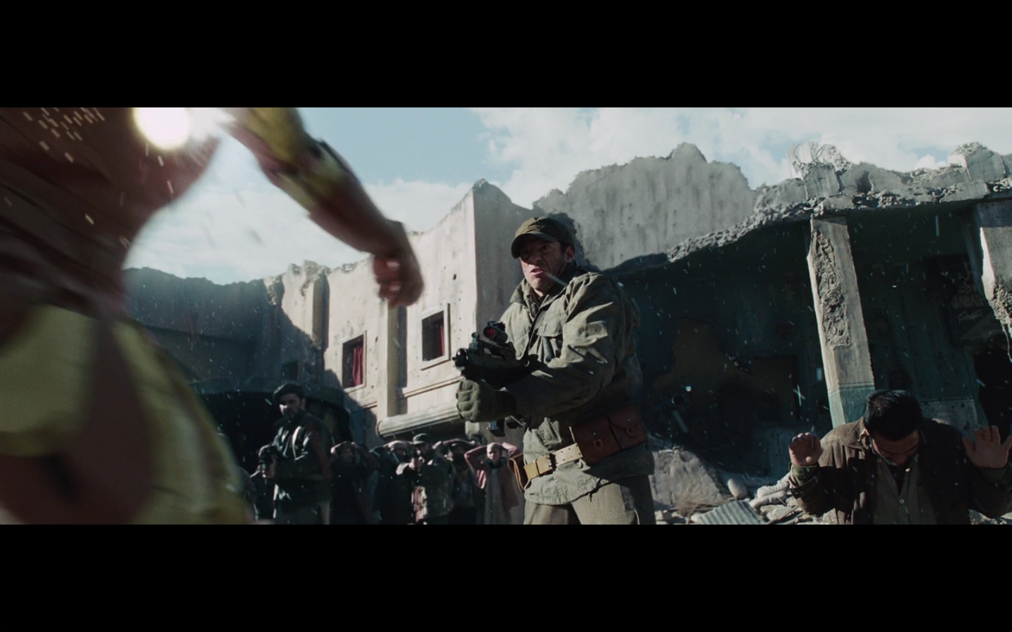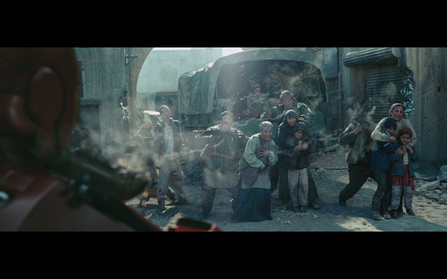 General mayhem. There’s no pretense, and the town is already blown to shreds. No real reason for them to be shooting people randomly now, but you know. That’s how this plot continues.
