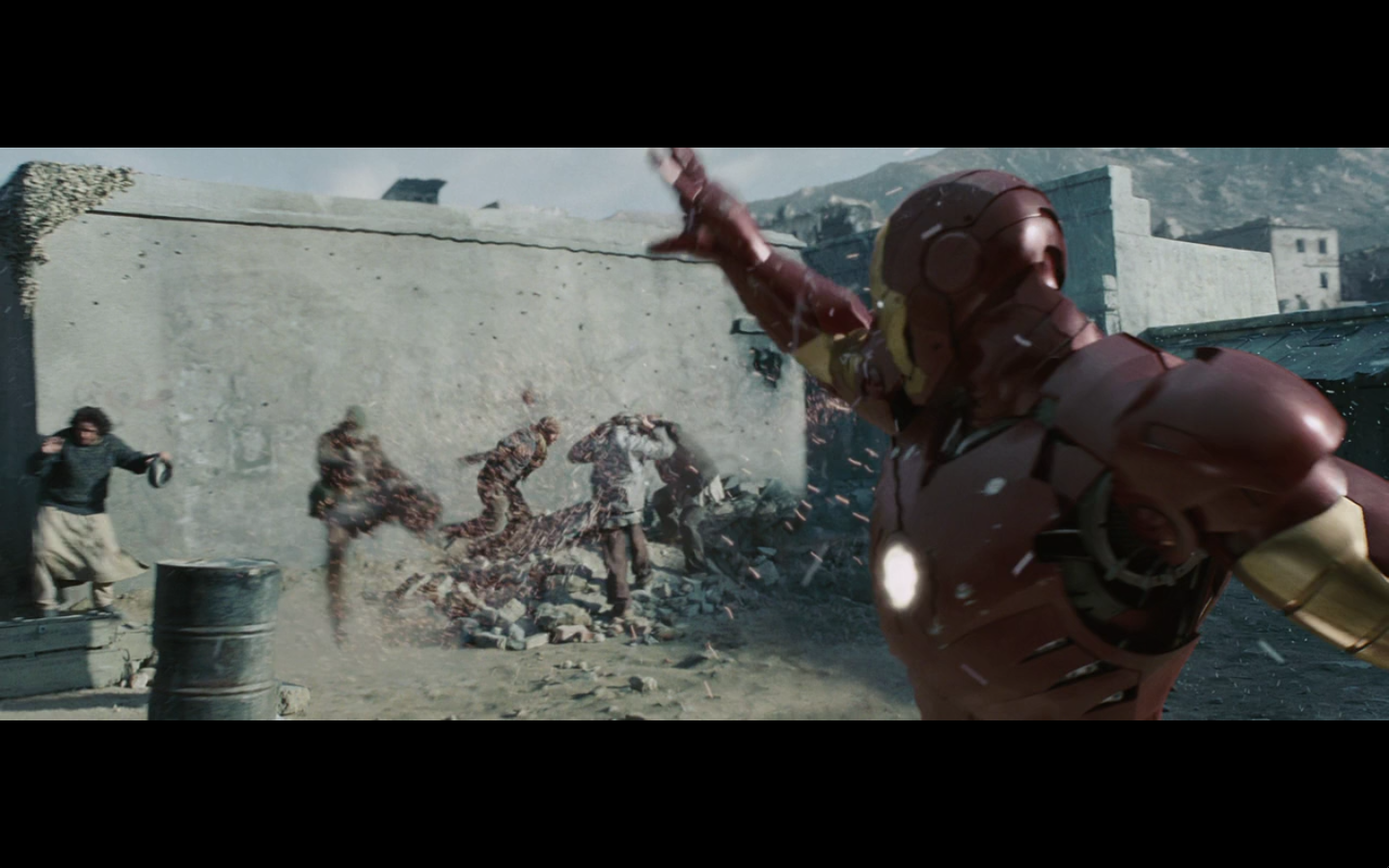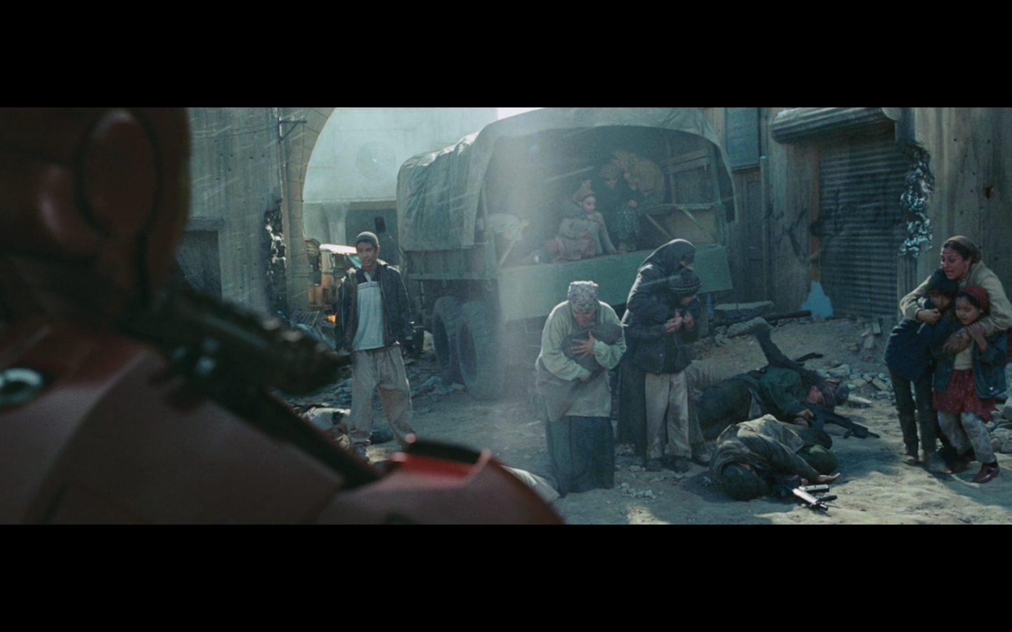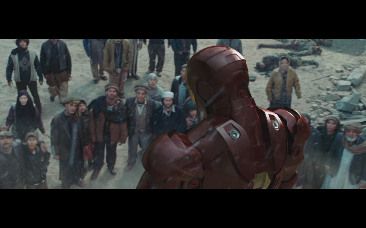 I hate it when children look up in movies. It’s always that moment of wonder. These are the moments Favreau worked in to subliminally appeal to kids. If Stark was a real badass, there’d be one really hot hostage chick who would look up like, “D-AMN! I wanna get fucked!”